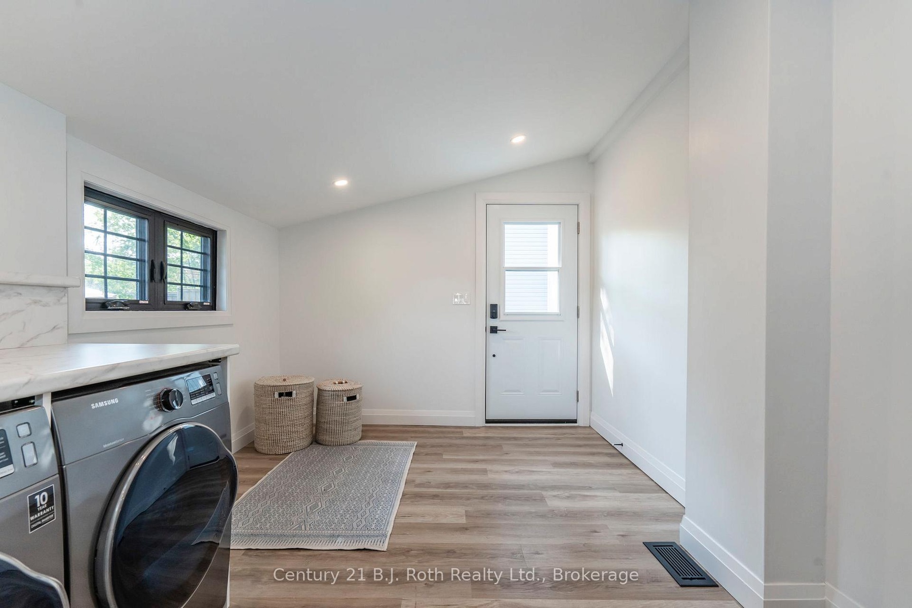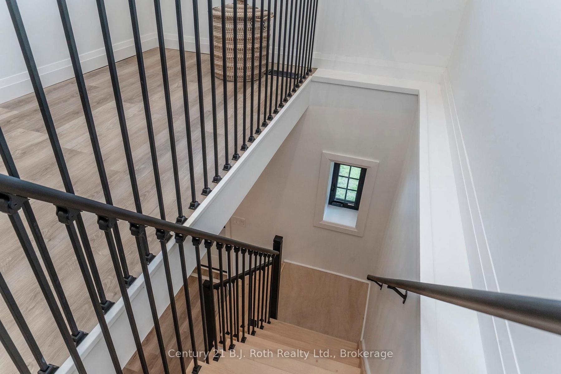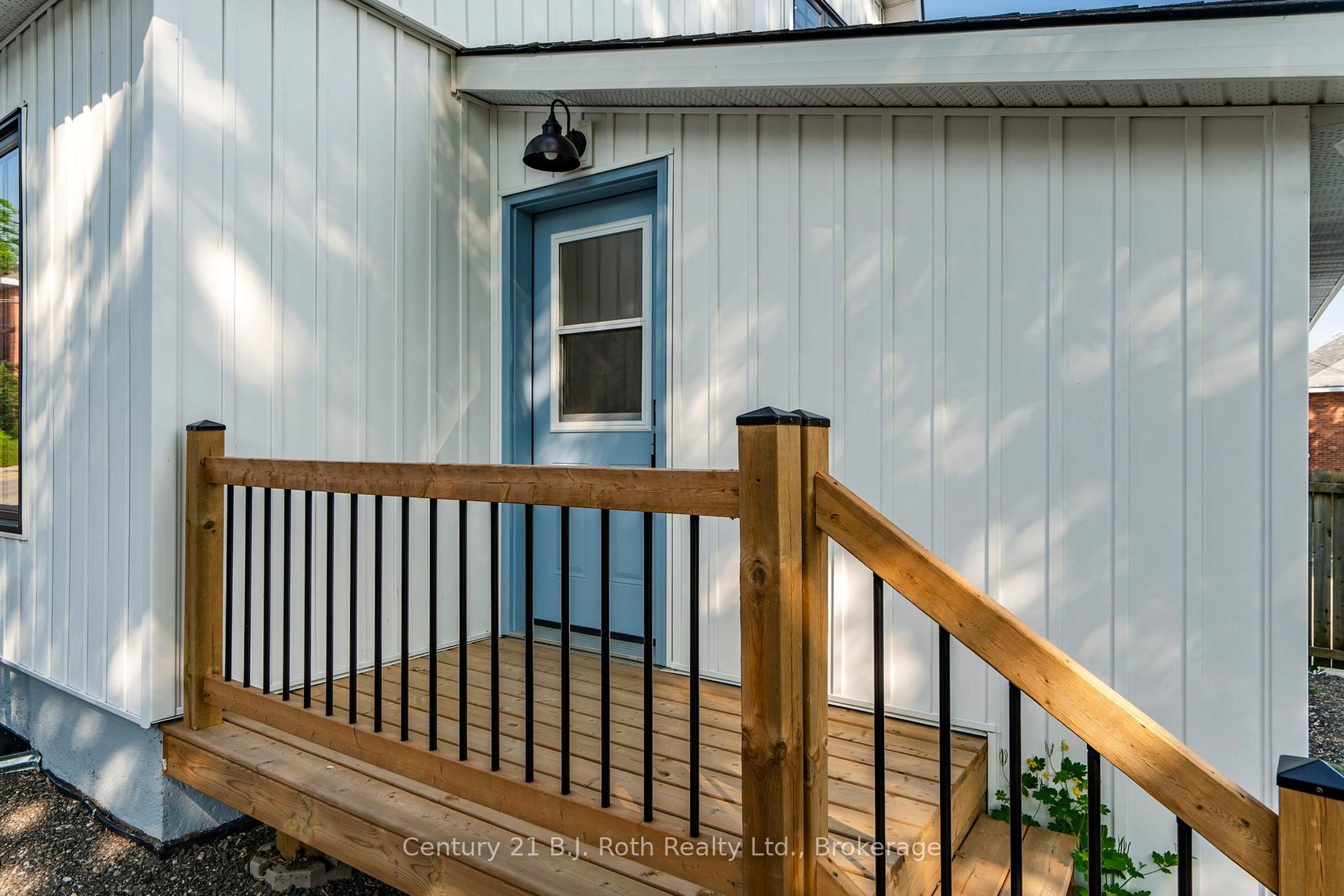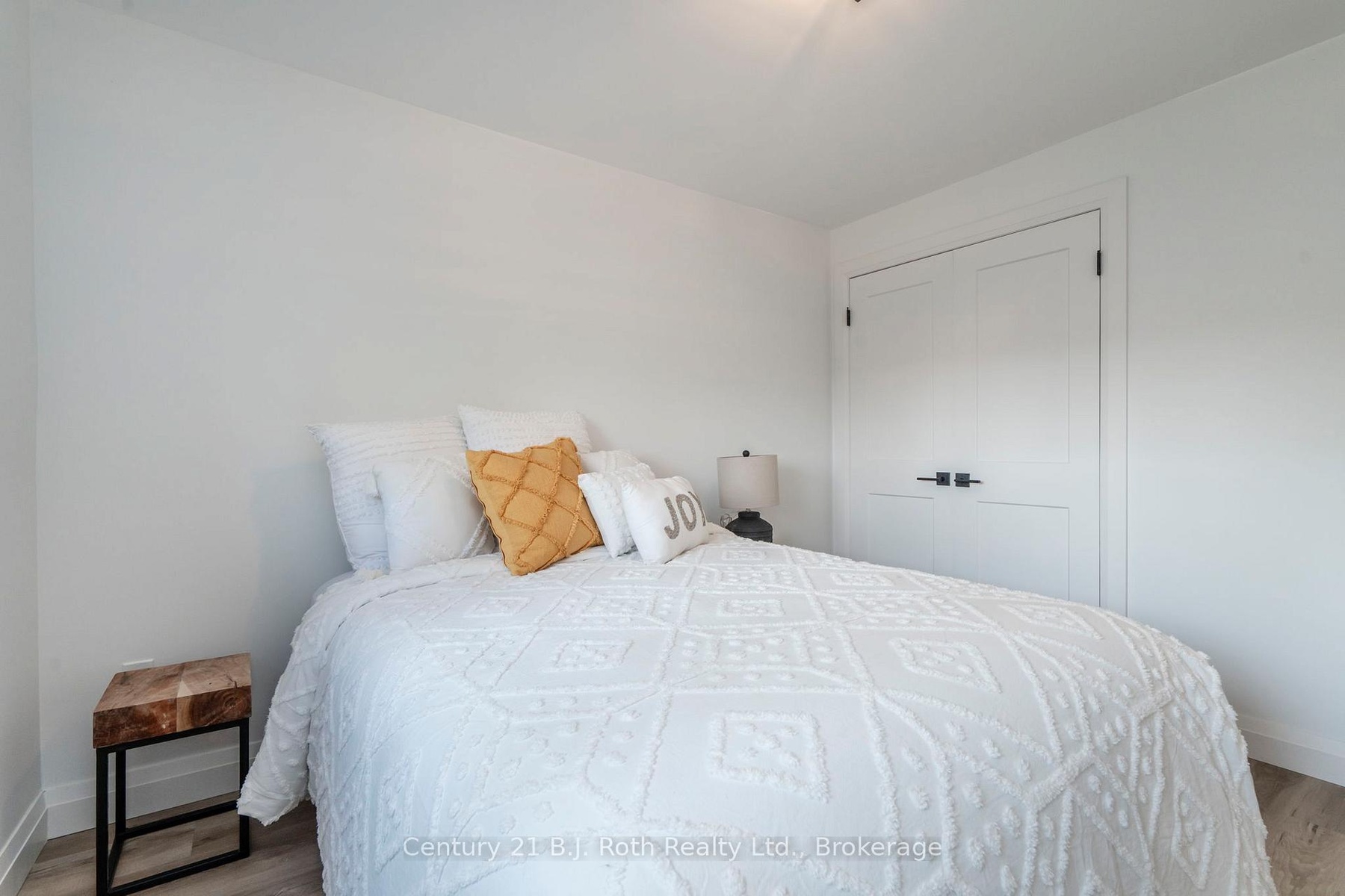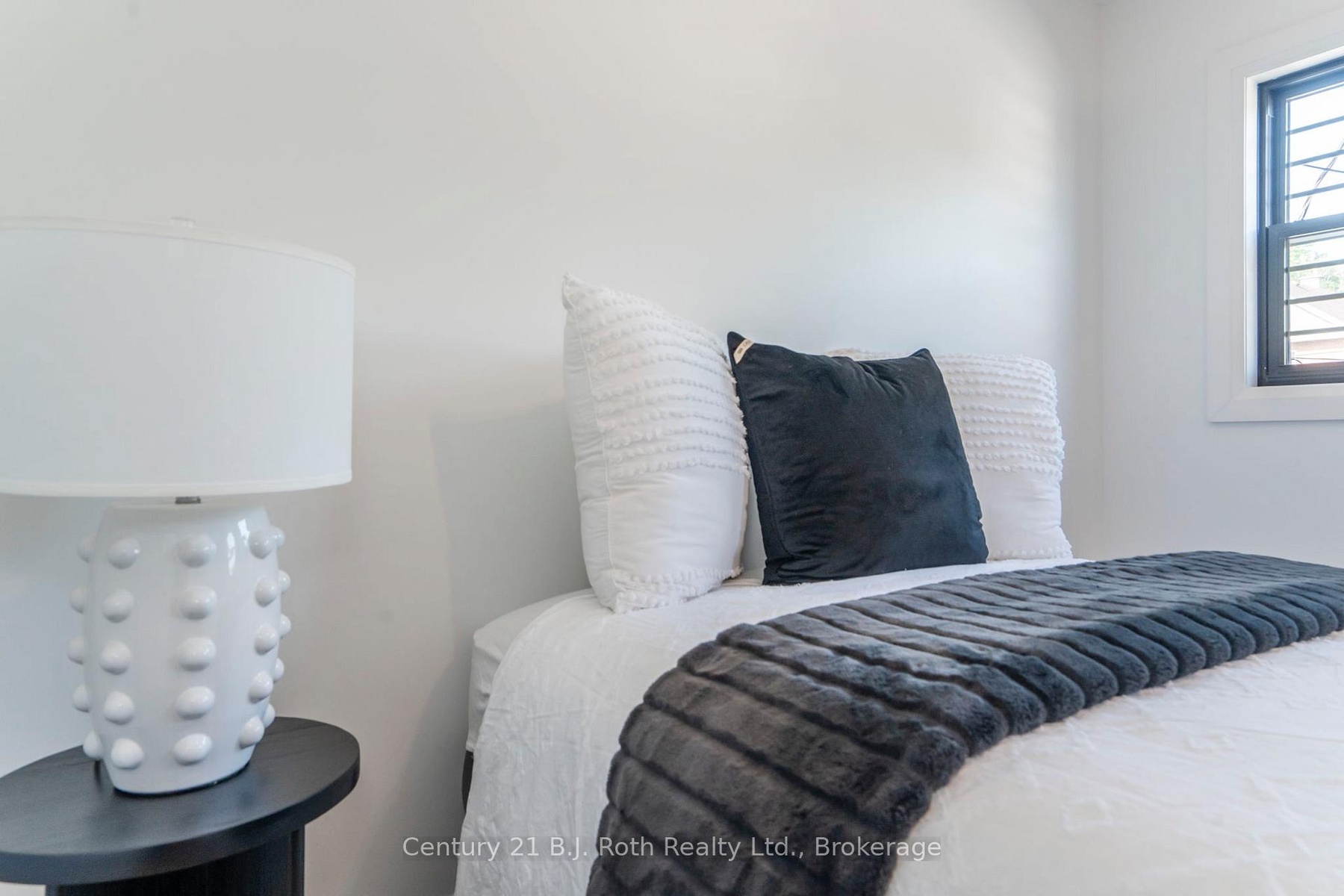 Chic Downtown Midland Retreat, located in Beautiful Georgian Bay. Fully Renovated, Zoned Commercial/Residential. Welcome to a home that truly checks all the boxes for modern living and prime location. Take a stroll to Midlands vibrant downtown core, cafés, boutiques, restaurants, waterfront and Marina. You'll be living in the heart of it all while enjoying the peace and charm of this home. Fully renovated 2-bedroom, 2-bathroom with a finished basement gem offers the perfect blend of barn-house charm and urban sophistication. 1,000 + sq.ft. of beautifully designed space. Stylish & Smart Living. Step inside to discover 9-foot ceilings, sleek black-framed windows, and a stunning exposed brick feature wall that anchors the home with warmth and character. Black barn doors and modern black hardware throughout the kitchen and baths complete the Barnhouse aesthetic. Bright, Airy, & Inviting. Natural light fills the open-concept living and dining area, creating a vibrant atmosphere that feels as good as it looks. Whether you're enjoying a quiet morning or hosting friends this summer, the layout is both functional and stylish. The main-floor laundry and all-new appliances add even more everyday convenience. Finished Basement for a home office, media room or great play-room. Turn your 115 ft deep backyard to a summer retreat. This home offers exceptional flexibility for professionals, young family or entrepreneurs looking to live and work in one dynamic space.