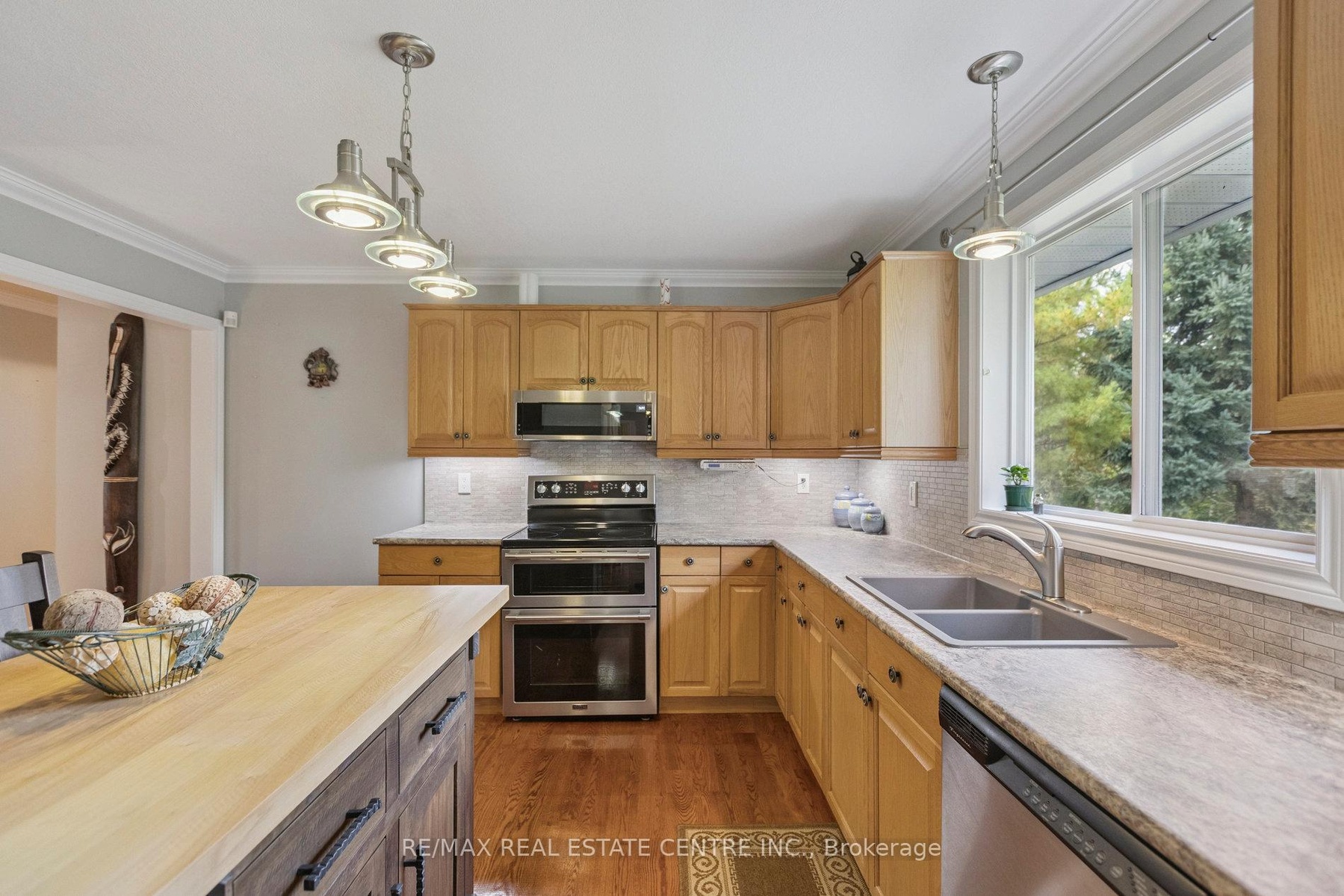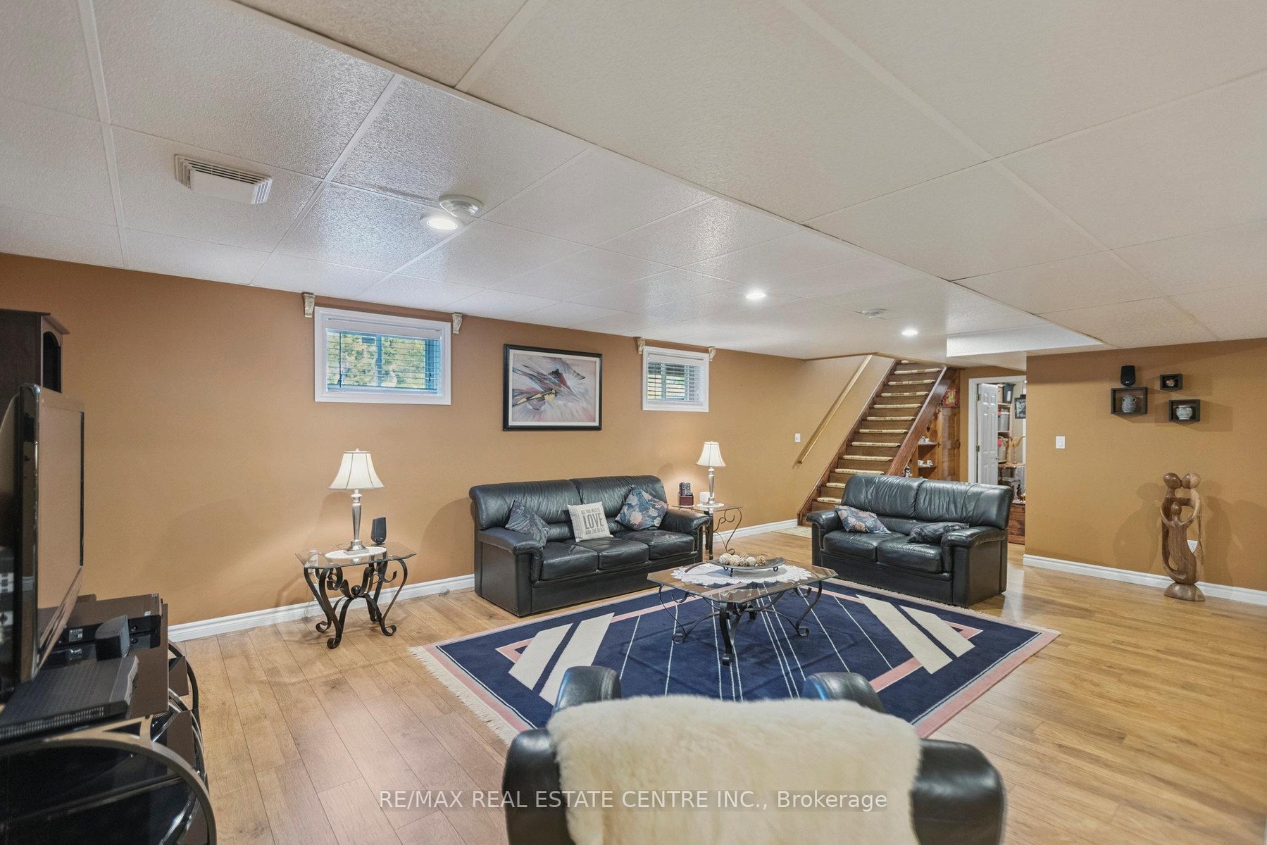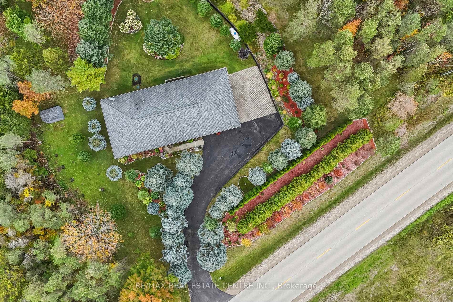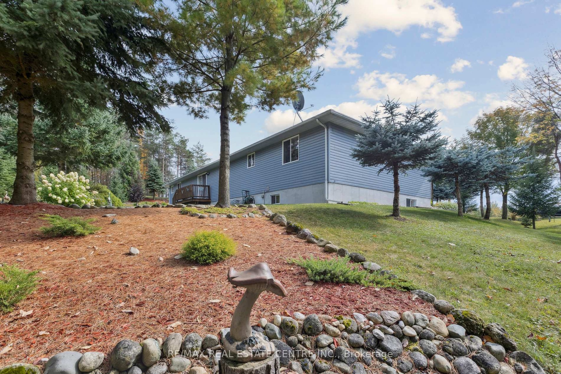 A Nature Lover's Dream Retreat! Set on just over 2 acres of lush, landscaped beauty, this stunning raised bungalow offers the perfect blend of comfort, charm, and functionality-inside and out. From the moment you arrive, the winding paved driveway, mature trees, and blooming perennial gardens set the tone for this private country oasis. Step inside to find a bright, open-concept layout featuring an oversized great room, entertainer's kitchen, and spacious dining area-all surrounded by large sun-filled windows that showcase the property's serene views. The generous primary suite is your personal escape, complete with a modern ensuite and tranquil backyard outlook. Two additional bedrooms, a stylishly updated main bath with double vanity, main floor laundry, and interior access to the oversized 2-car garage with extra storage make everyday living effortless. The lower level offers even more space for family and guests, featuring a sprawling open-concept family room, two versatile rooms/bedrms/flex spaces, upgraded 3-piece bath, pot lights, above-grade windows, and abundant storage throughout. Step outside to your private outdoor haven-complete with a charming summer kitchen outbuilding, gazebo, multiple entertaining zones, fire-pit area, manicured lawns, and mature gardens perfect for gatherings of any size. Whether you're hosting summer BBQs, stargazing by the fire, or simply unwinding in nature, this property delivers the peace and privacy you've been dreaming of. With its combination of space, quality, and setting, this is a truly special home that rarely comes to market. Experience the best of country living-without compromise.