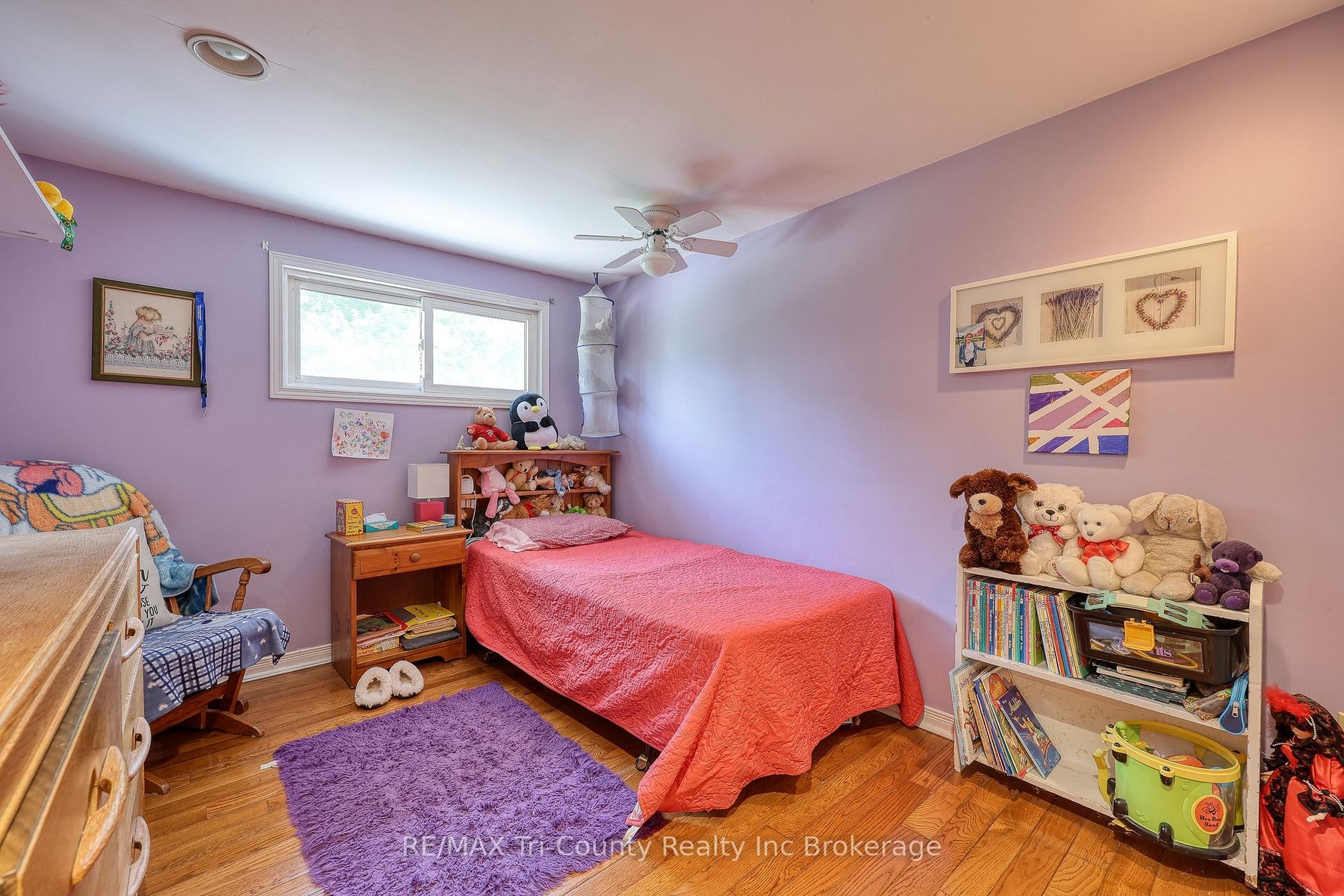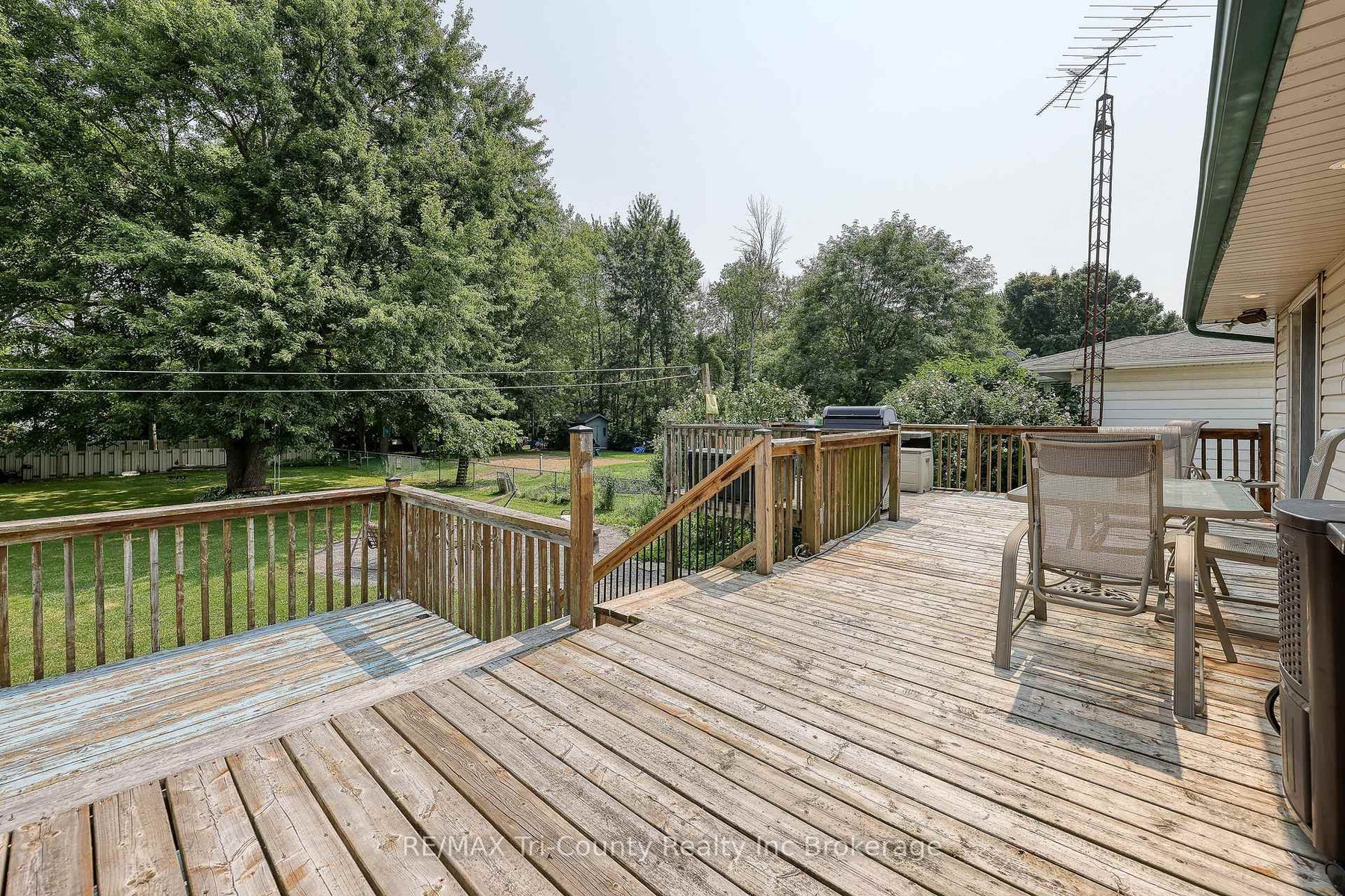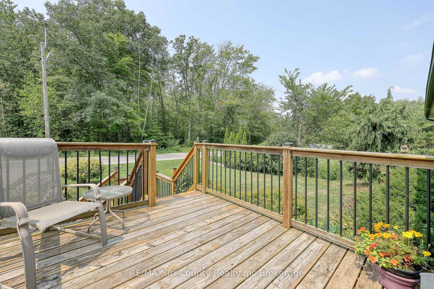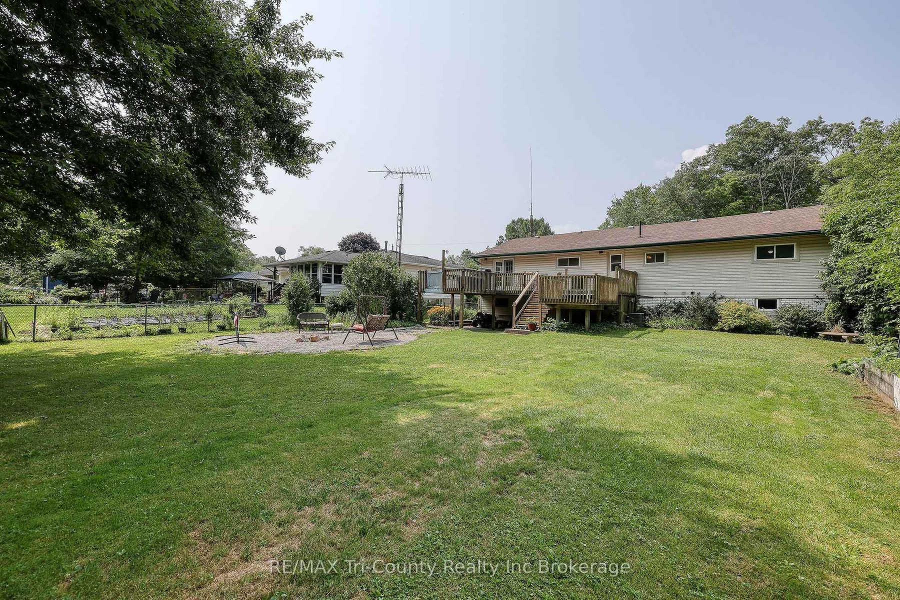 Just on the outskirts of Simcoe within the hamlet of Bill's Corners this delightful home features 3 + 1bedrooms, 2 4piece baths on a beautiful lot. 2374 finished sq ft of well-planned, living space plus a single car garage. The open concept kitchen features large island with breakfast bar complimented with a large dining room and expansive living room. Patio door access from the kitchen leads to the back deck overlooking a large backyard with mature trees. Various areas and levels of the deck available for barbecuing and a possible hot tub placement. Three bedrooms on the main level and a 4 piece bath. Primary bedroom has double wide closet space and bright expansive window facing landscaped front yard. Fourth bedroom located in the basement as well as another 4 piece bath, laundry room, and rec room with a gas fireplace. Basement access to the single car garage and a pedestrian door to the backyard. Enjoy the privacy of a fenced yard, an inviting fire pit for evening gatherings, and a shed suitable for storage and landscaping needs. Play park is within walking distance. Ride Norfolk bus stop also located within walking distance. Furnace and Central air replaced July 2021.