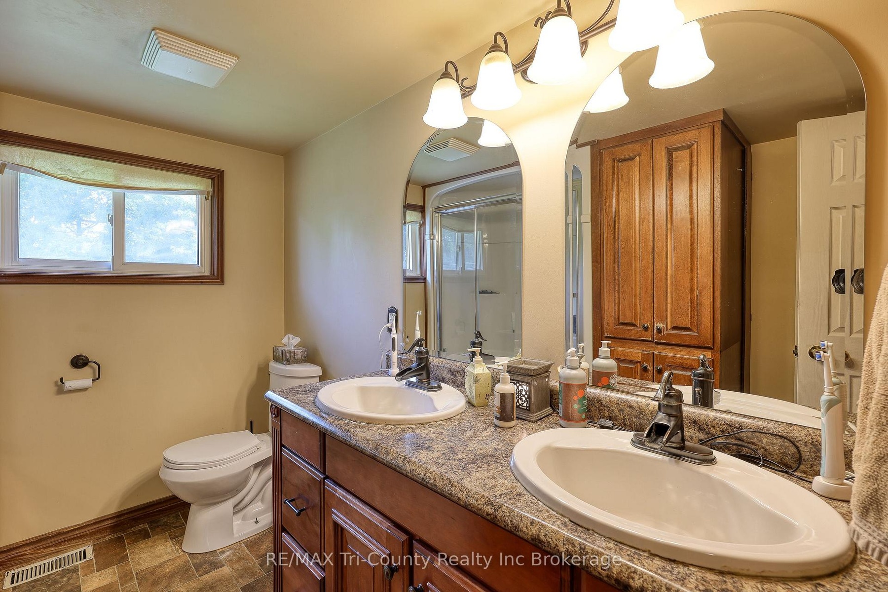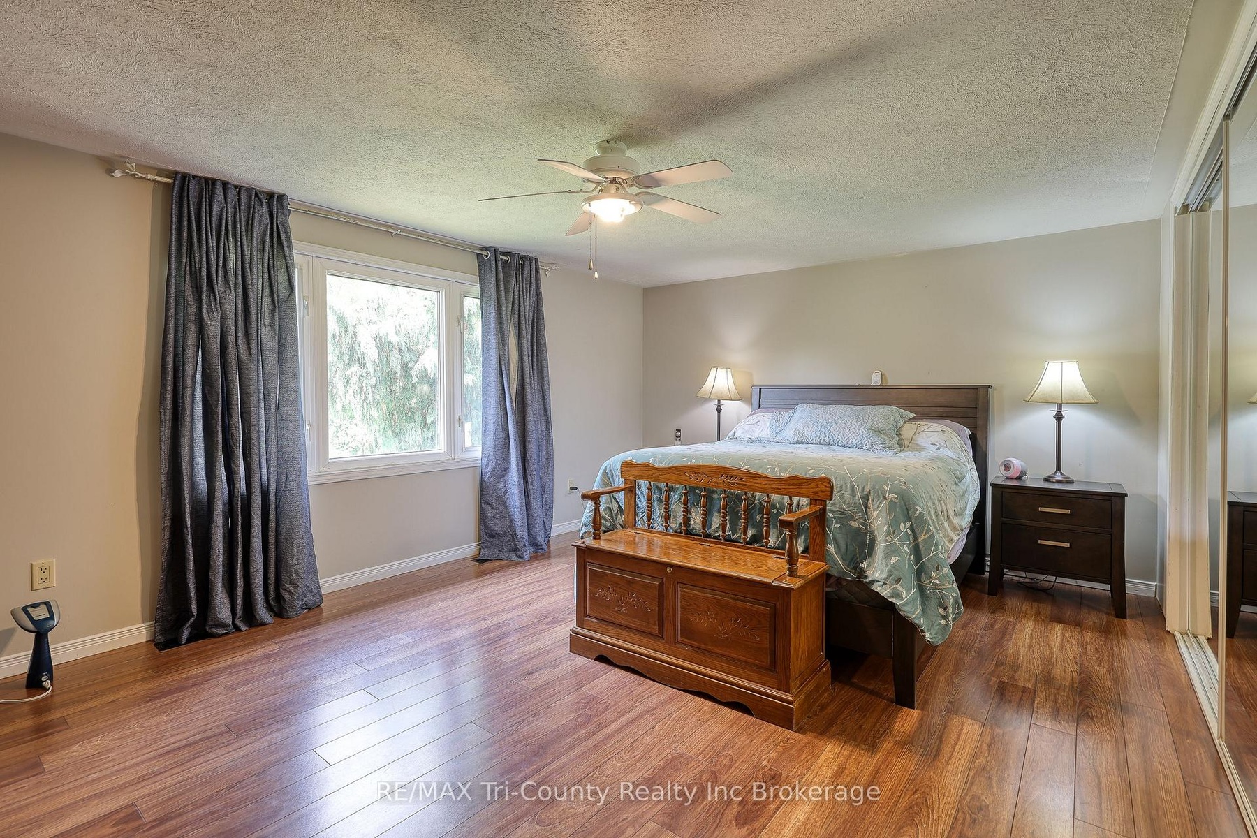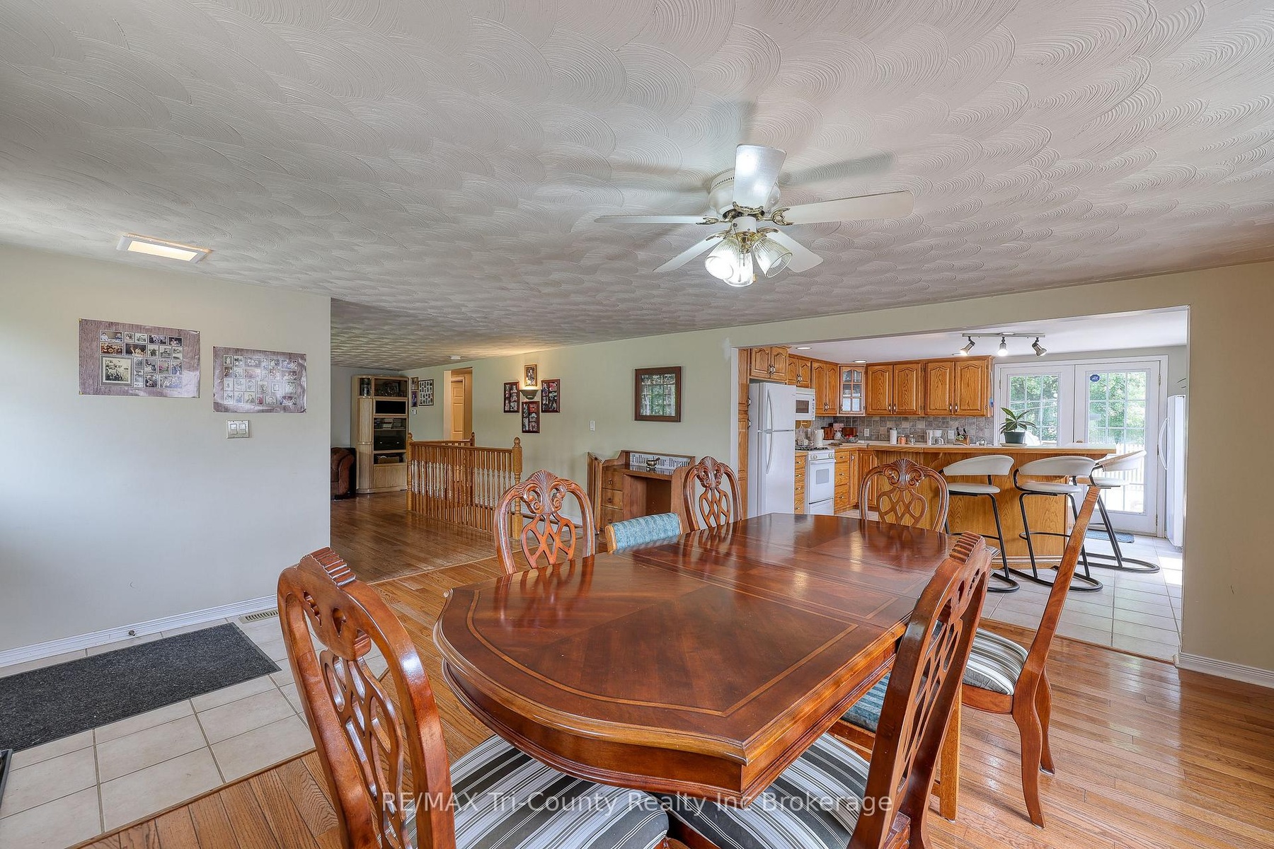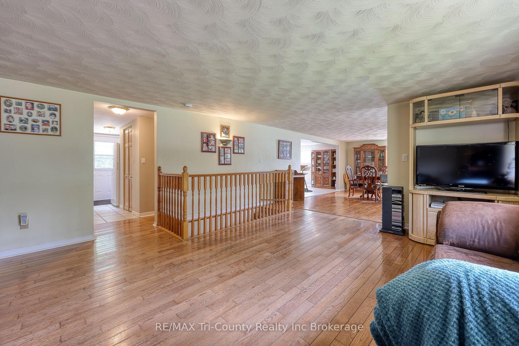 Just on the outskirts of Simcoe within the hamlet of Bill's Corners this delightful home features 3 + 1bedrooms, 2 4piece baths on a beautiful lot. 2374 finished sq ft of well-planned, living space plus a single car garage. The open concept kitchen features large island with breakfast bar complimented with a large dining room and expansive living room. Patio door access from the kitchen leads to the back deck overlooking a large backyard with mature trees. Various areas and levels of the deck available for barbecuing and a possible hot tub placement. Three bedrooms on the main level and a 4 piece bath. Primary bedroom has double wide closet space and bright expansive window facing landscaped front yard. Fourth bedroom located in the basement as well as another 4 piece bath, laundry room, and rec room with a gas fireplace. Basement access to the single car garage and a pedestrian door to the backyard. Enjoy the privacy of a fenced yard, an inviting fire pit for evening gatherings, and a shed suitable for storage and landscaping needs. Play park is within walking distance. Ride Norfolk bus stop also located within walking distance. Furnace and Central air replaced July 2021.