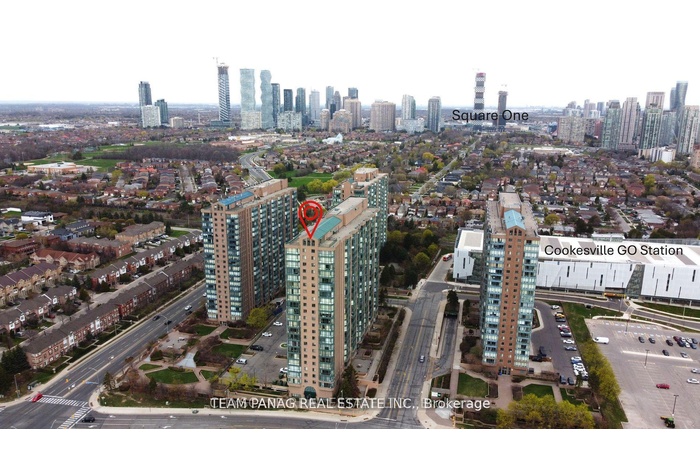 Location! Location! Bright & Spacious Corner Unit Featuring 2 Bedrooms, Large Living Room With Expansive Windows, Solarium & Separate Dining Area Perfect For Entertaining Or Relaxing. Modern Kitchen With Granite Counters, S/S Appliances, Ceramic Flooring & Plenty Of Natural Light. Primary Bedroom Offers A Walk-In Closet & 2-Pc Ensuite, While The Second Bedroom Features A Large Closet & Windows. Enjoy The Convenience Of Ensuite Laundry Plus A Versatile Solarium Ideal As A Home Office, Study, Or Guest Space. Well-Maintained Building With Party Room & 24Hr Concierge. Steps To Go Station & Minutes To Square One, City Hall, Library, Community Centre & More. Easy Access To QEW, 403 & 401. Urban Living At Its Finest! Property Being Sold As Is.