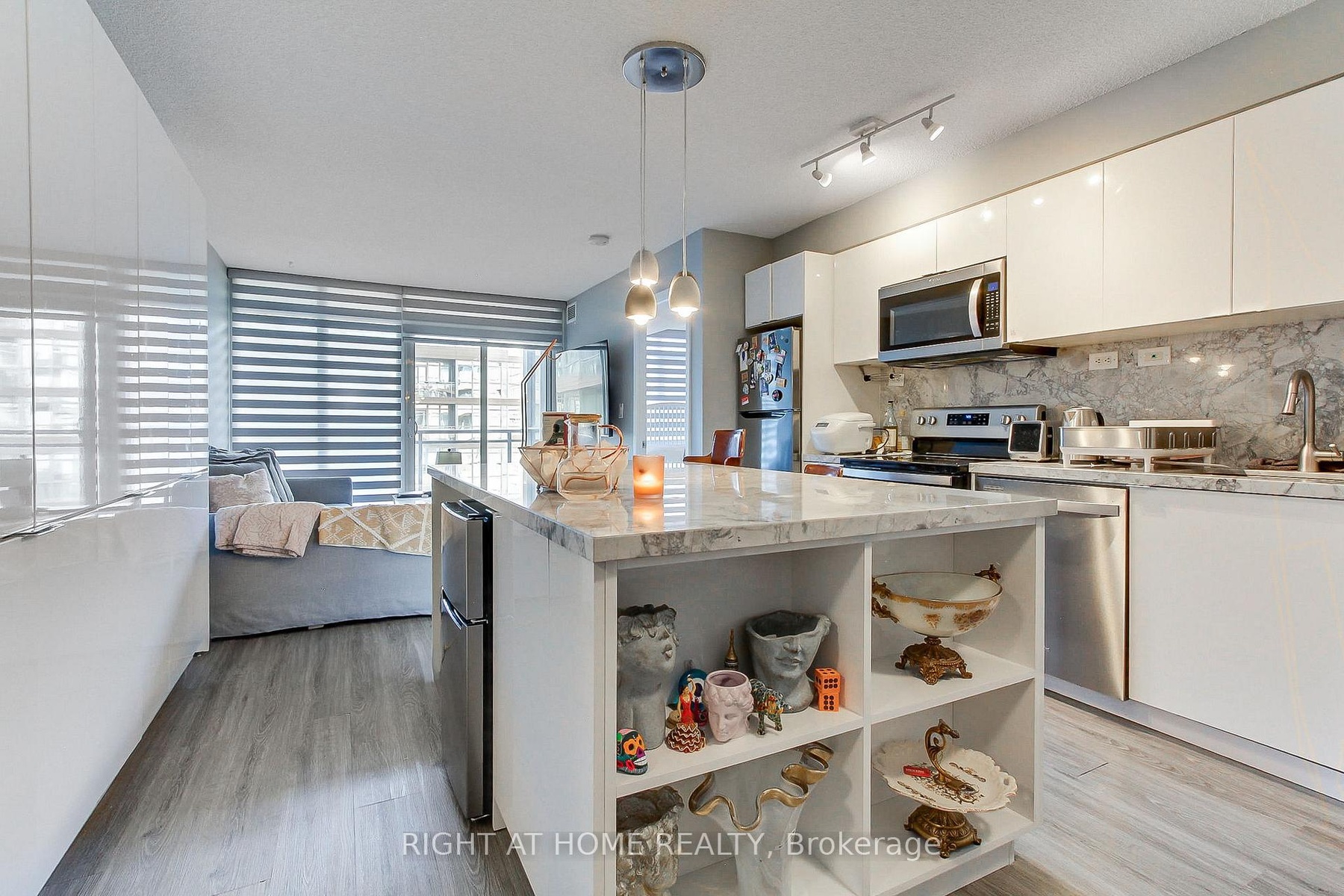 This 1+1, SUPER Rare 2 bath suite in City Palace PARADE located in most prime location of Downtown Core.The unit comes with new stainless steel appliances, vinyl floors , Quartz countertops and backsplash and a fully custom 7' kitchen island with extra pantry space and so much more!ample built-in storage space in the combined dining and kitchen areas making your space clutter-free. Step out onto the lovely balcony with south views overlooking the courtyard. The primary suite is highlighted with a large closet and a modern 3 piece ensuite. The versatile den is perfect for a home office or an additional sleep space. Extensive 3 Levels Of club Parade Amenities - Pool, Sauna, Gym, Party Room, Movie Theatre, Billiards, Squash Crt, Dance Studio, Spa And More! Steps To The Lake, Supermarket, Restaurants, Lively Marinas, Waterfront Parks An Ttc, Rogers Centre, Scenic Parks, Banks, Jean Lumb Public School, Toronto Public Library & Canoe Landing Community Recreation Centre!