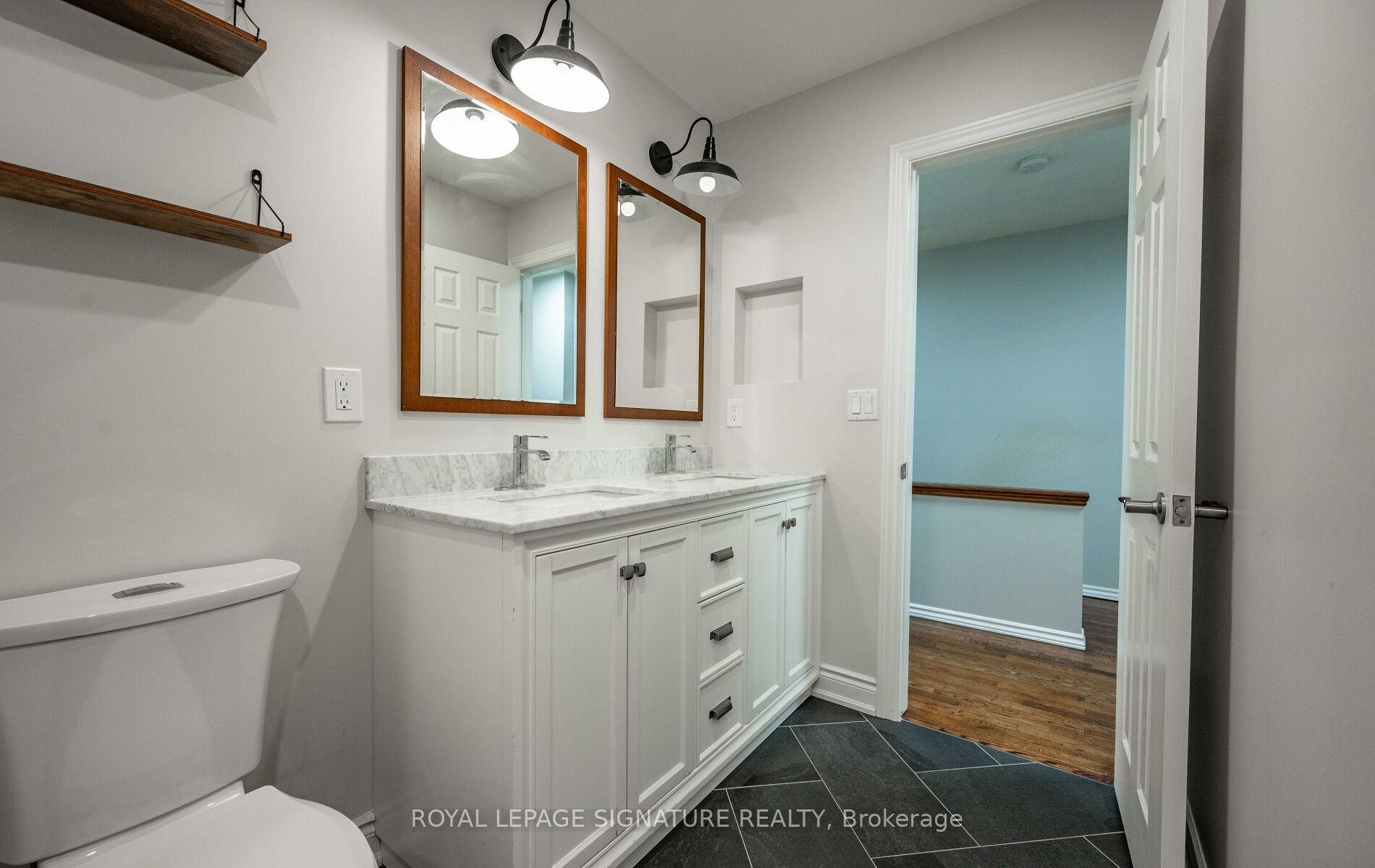 Nestled within the family-oriented enclave of Dorset Park, this charming two-story residence boasts four bedrooms and one-and-a-half bathrooms, offering both comfort and convenience. The main floor showcases a spacious layout, accentuated by a two-piece powder room, an open-concept arrangement that seamlessly connects various living spaces, pristine white kitchen cabinetry, three stainless steel appliances (including a gas stove), and elegant hardwood flooring in the hallway, dining, and living areas. Access to the deck and a fully fenced backyard enhance outdoor enjoyment. Upstairs, 4 generously sized bedrooms cater to diverse needs, whether accommodating a growing family or creating a home office. The primary bedroom features semi-ensuite access to a modernly renovated bathroom equipped with double sinks and contemporary fixtures.