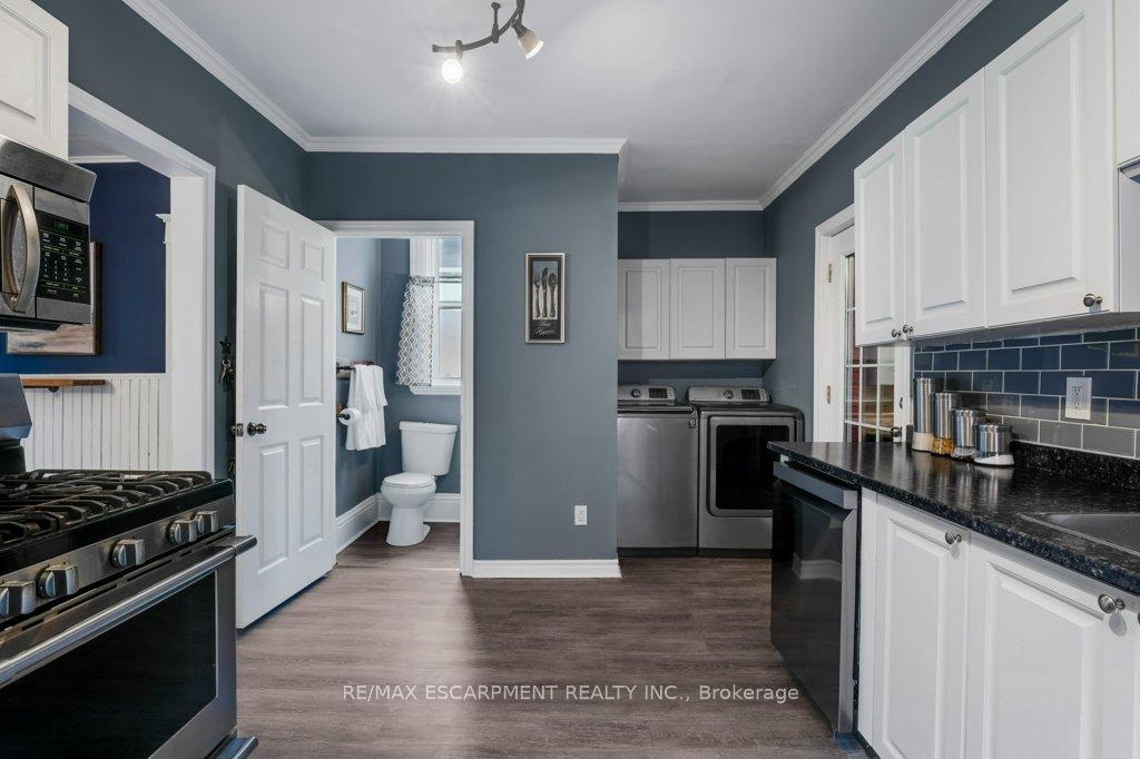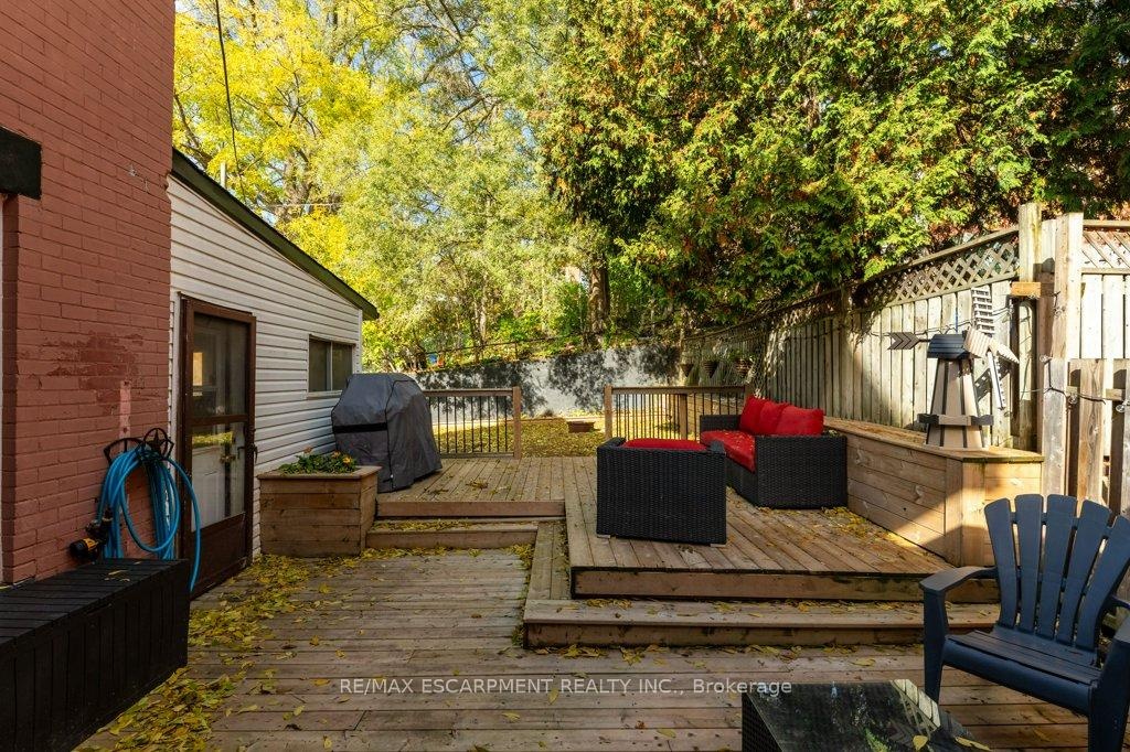 Old world charm, modern updates and privacy abound in this move-in ready home. Located on a quiet street across from city-owned greenspace, this home provides spacious family living. Laminate floors throughout the main level provide continuity in the living room and dining room and continue through to the spacious kitchen. The kitchen is complete with a full complement of stainless steel appliances, lots of cabinet space and a laundry area with newer washer and dryer. A mud room provides additional storage space and access to the private rear yard, where you can enjoy the spacious deck and hot tub. The upper level of the home features three bedrooms, including a primary bedroom fit for a king-size bed that also features a wall of windows that floods the space with natural light. A 4-piece bathroom completes the upper floor. The lower level of the home has newer laminate flooring throughout and offers flex space for your family, with two rooms that could be used as a playroom and rec room. Updates include: dishwasher (2025), Bromine hot tub (2022), 10x12 wooden shed (2023), eavestroughs, soffits, and fascia (2023), deck (2023), electrical panel (2023), electrical wiring (2025) and added basement insulation (2023). There are many newer windows throughout the home and it has been freshly painted throughout.