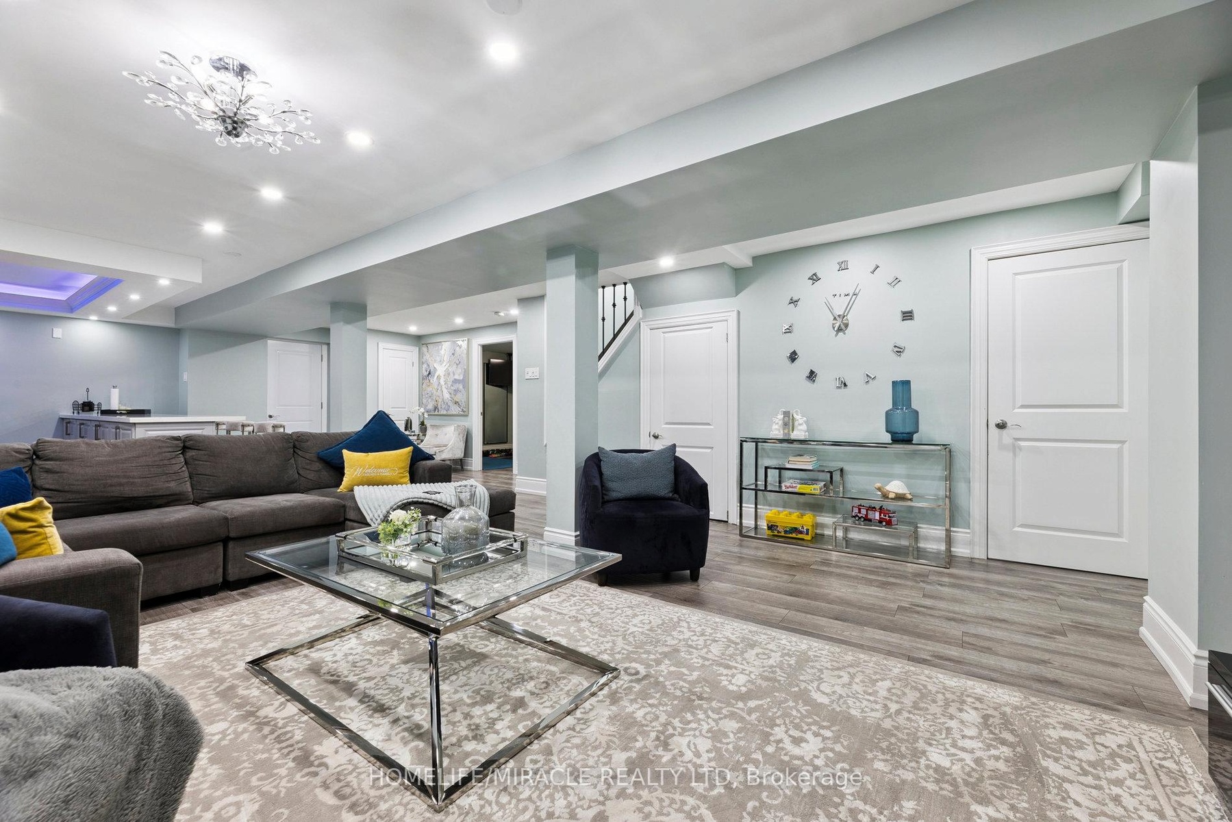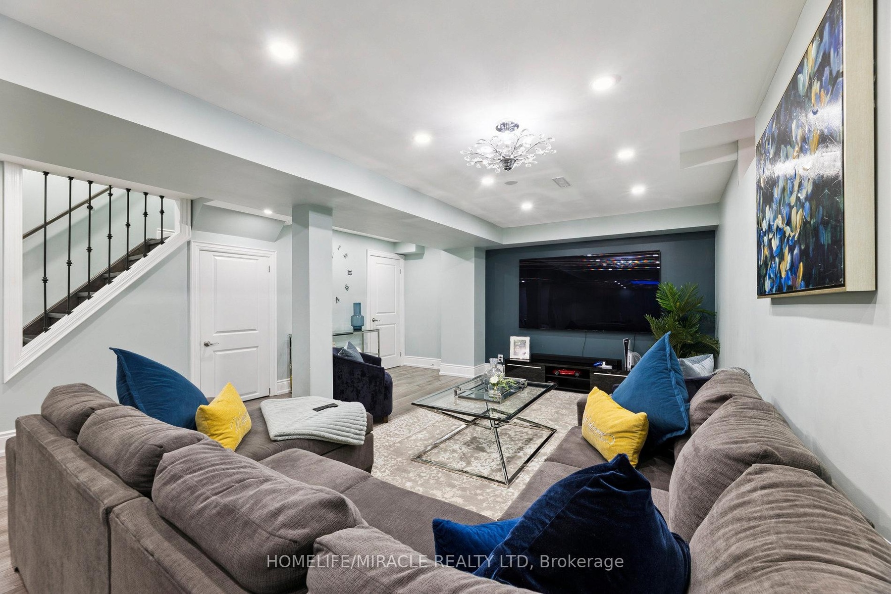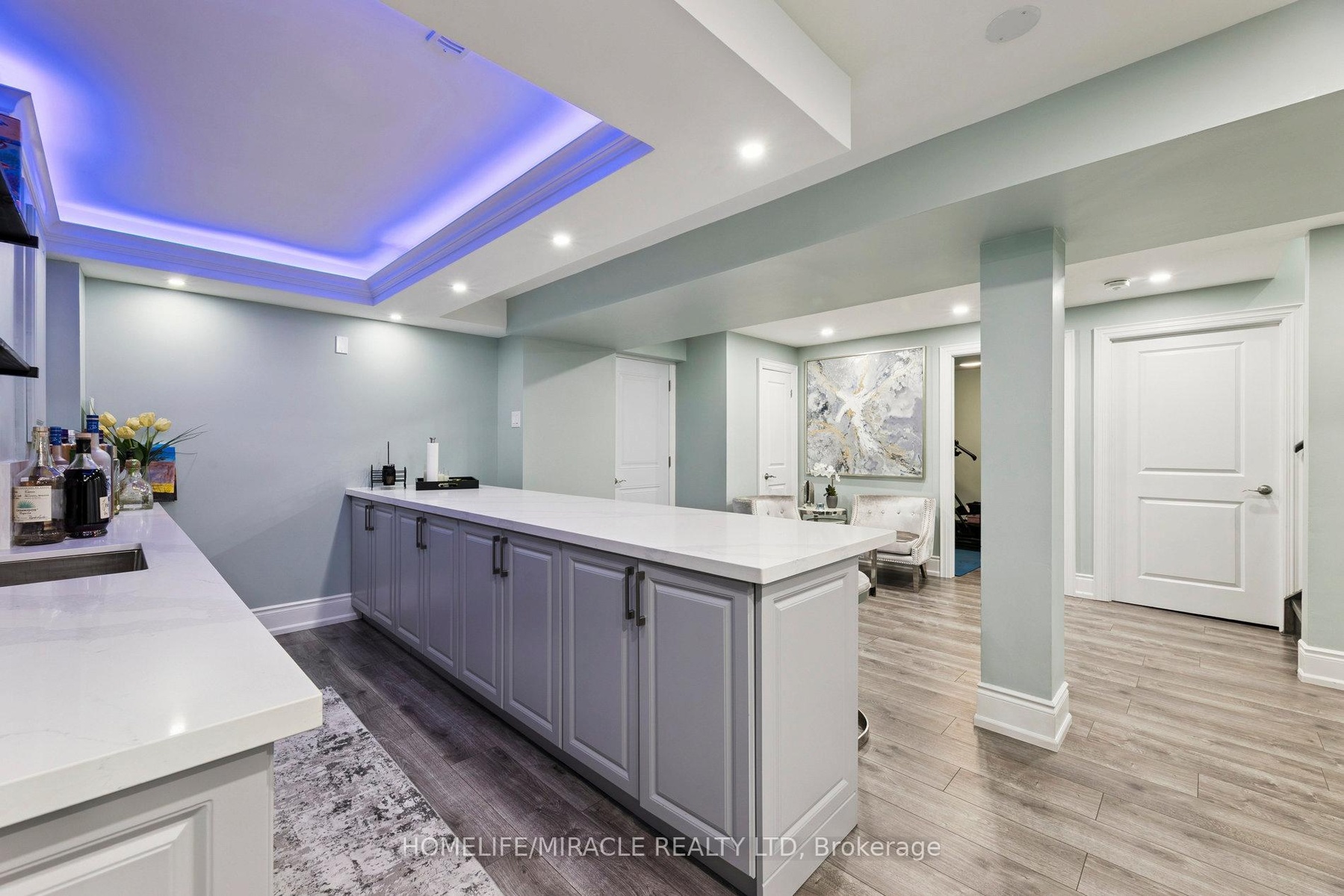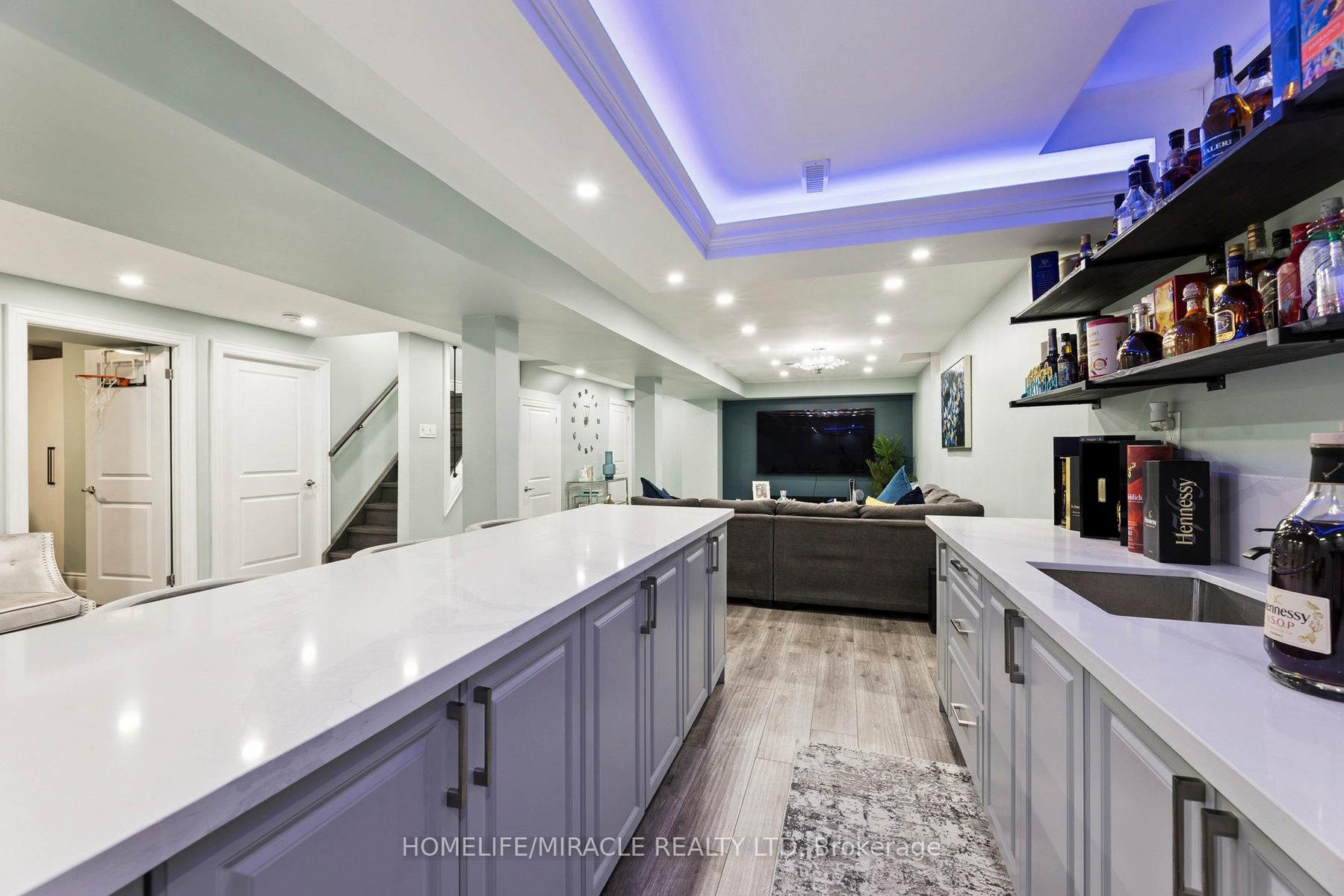 Welcome to 33 Ritchie Ave, a beautifully upgraded detached home where no expense has been spared on renovations. Featuring 4+1 bedrooms, 4 bathrooms, and a fully finished basement, this home has been extensively renovated with over $200,000 in upgrades and truly shows like new. Boasting one of the best layouts, it offers separate living, dining, and family rooms with hardwood floors throughout the main and upper levels. The spacious living room features a large bay window, while the open-concept family room is warm and inviting with a gas fireplace. The modern kitchen showcases stainless steel appliances, quartz countertops and backsplash, extended cabinetry with crown moulding, valance lighting, and a breakfast area with a walk-out to the backyard deck. A convenient main floor laundry room includes custom cabinetry, a quartz countertop, and backsplash. An elegant oak staircase with metal pickets leads upstairs to the spacious primary suite, complete with a walk-in closet, linen closet, and a luxurious 5-piece ensuite featuring a floating vanity, upgraded tiles, frameless glass shower, and a make-up counter. Bedrooms two, three, and four are all generously sized. The finished basement features a spacious open-concept recreation room combined with a kitchen and wet bar, complete with laminate flooring, pot lights, quartz countertops, an additional bedroom, and a 4-piece bath ideal for extended family or guests.. Outside, enjoy a large backyard and an extended driveway providing ample parking. Pot lights are installed throughout the home, both inside and out. This meticulously maintained property combines luxury, style, and functionality in one of Ajax's most desirable neighbourhoods.
