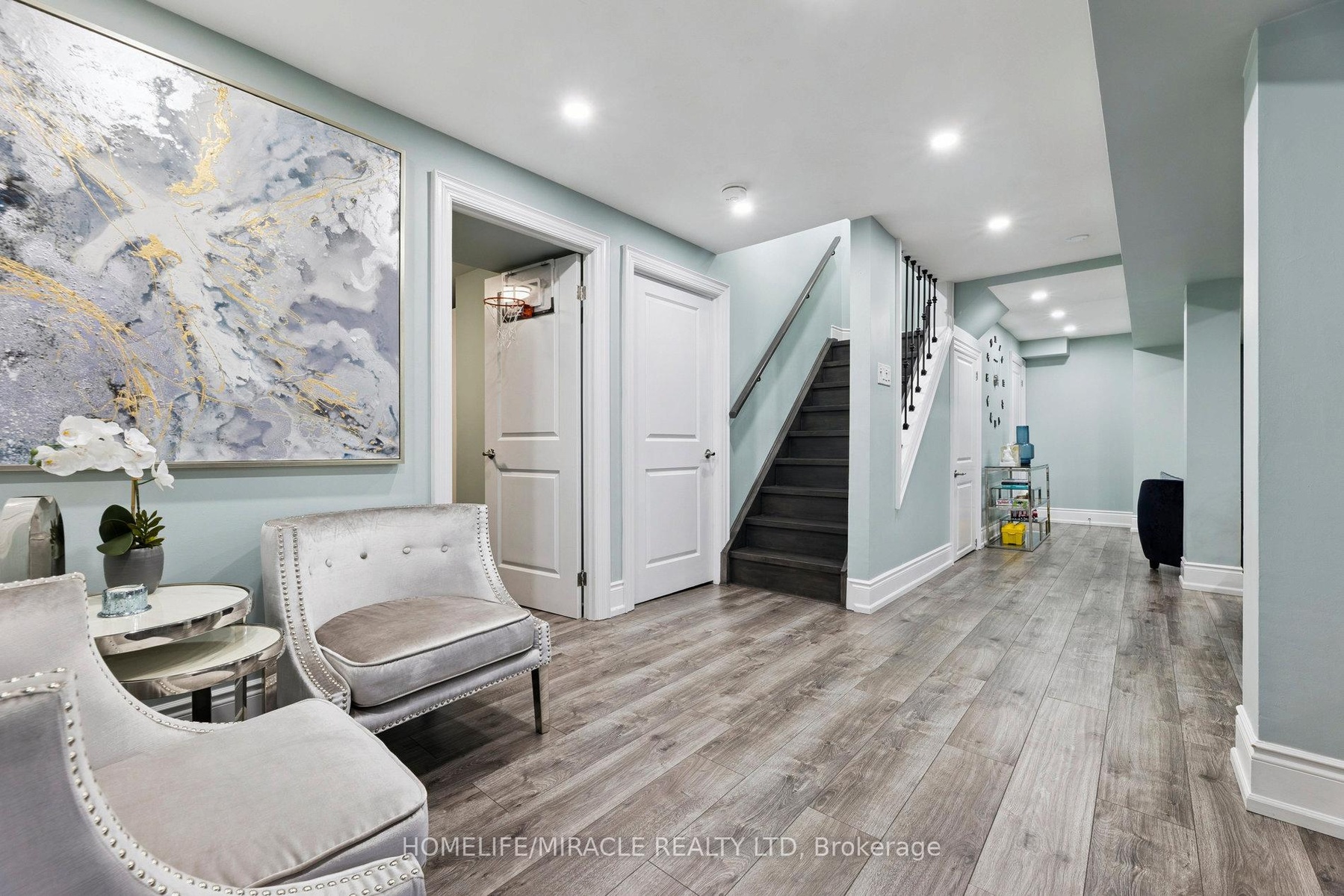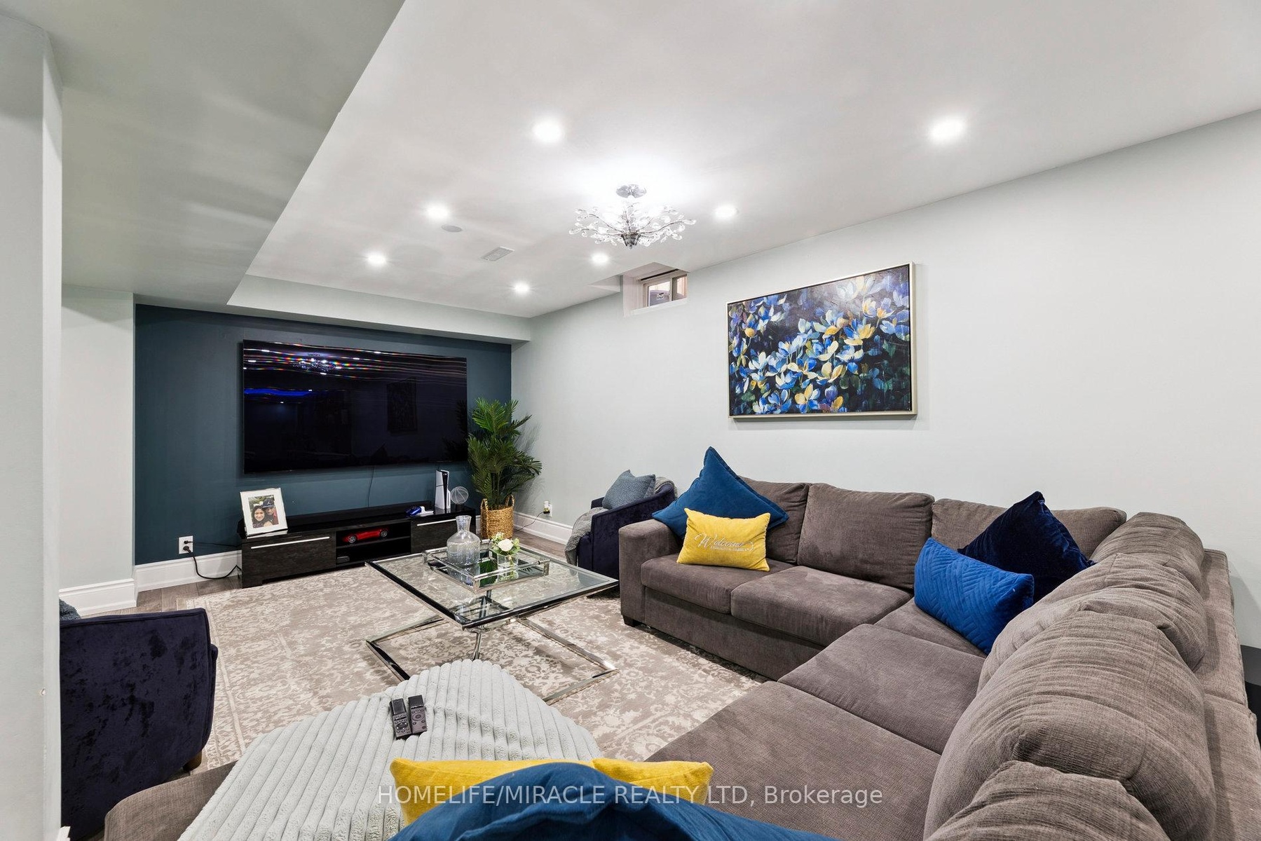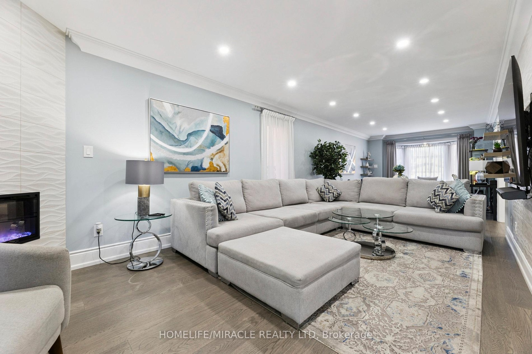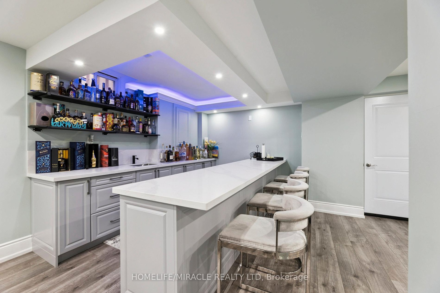 Welcome to 33 Ritchie Ave, a beautifully upgraded detached home where no expense has been spared on renovations. Featuring 4+1 bedrooms, 4 bathrooms, and a fully finished basement, this home has been extensively renovated with over $200,000 in upgrades and truly shows like new. Boasting one of the best layouts, it offers separate living, dining, and family rooms with hardwood floors throughout the main and upper levels. The spacious living room features a large bay window, while the open-concept family room is warm and inviting with a gas fireplace. The modern kitchen showcases stainless steel appliances, quartz countertops and backsplash, extended cabinetry with crown moulding, valance lighting, and a breakfast area with a walk-out to the backyard deck. A convenient main floor laundry room includes custom cabinetry, a quartz countertop, and backsplash. An elegant oak staircase with metal pickets leads upstairs to the spacious primary suite, complete with a walk-in closet, linen closet, and a luxurious 5-piece ensuite featuring a floating vanity, upgraded tiles, frameless glass shower, and a make-up counter. Bedrooms two, three, and four are all generously sized. The finished basement features a spacious open-concept recreation room combined with a kitchen and wet bar, complete with laminate flooring, pot lights, quartz countertops, an additional bedroom, and a 4-piece bath ideal for extended family or guests.. Outside, enjoy a large backyard and an extended driveway providing ample parking. Pot lights are installed throughout the home, both inside and out. This meticulously maintained property combines luxury, style, and functionality in one of Ajax's most desirable neighbourhoods.