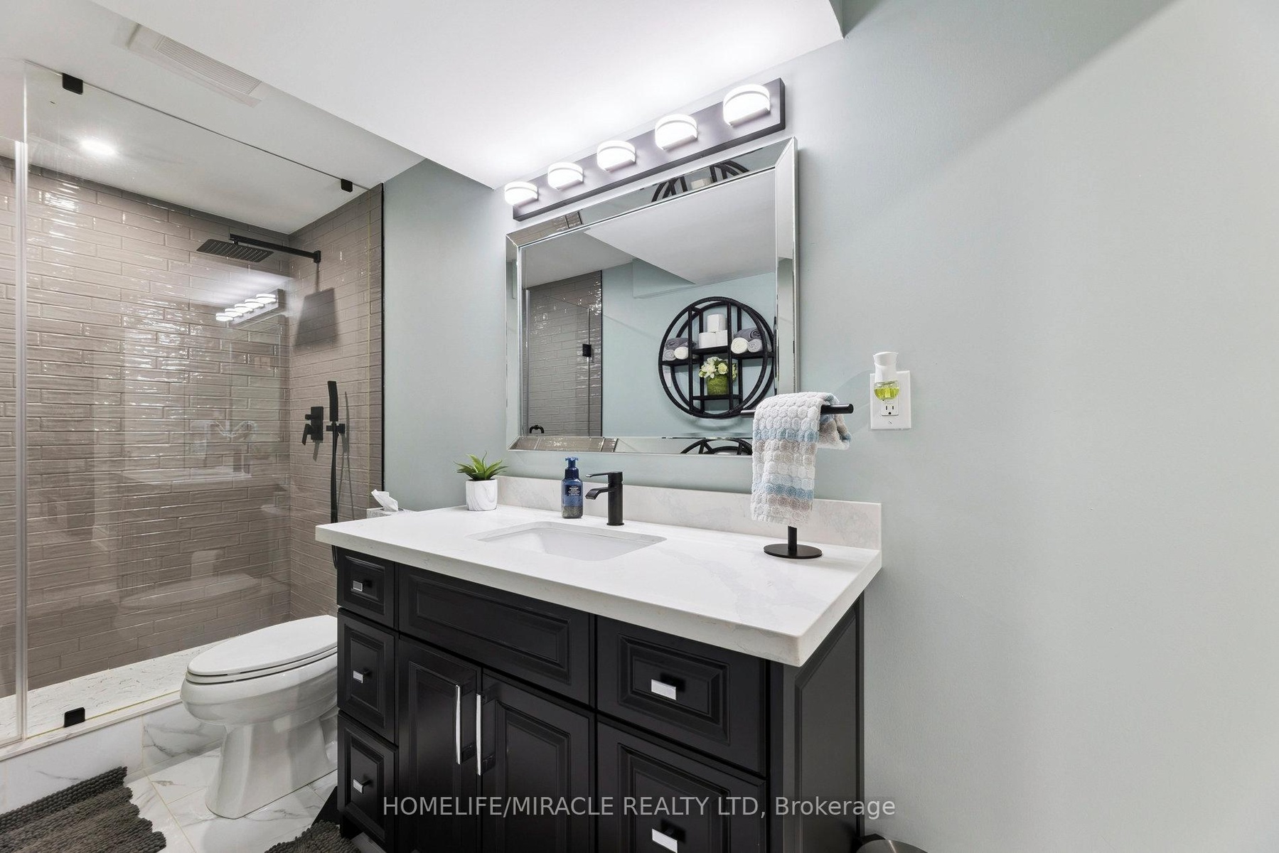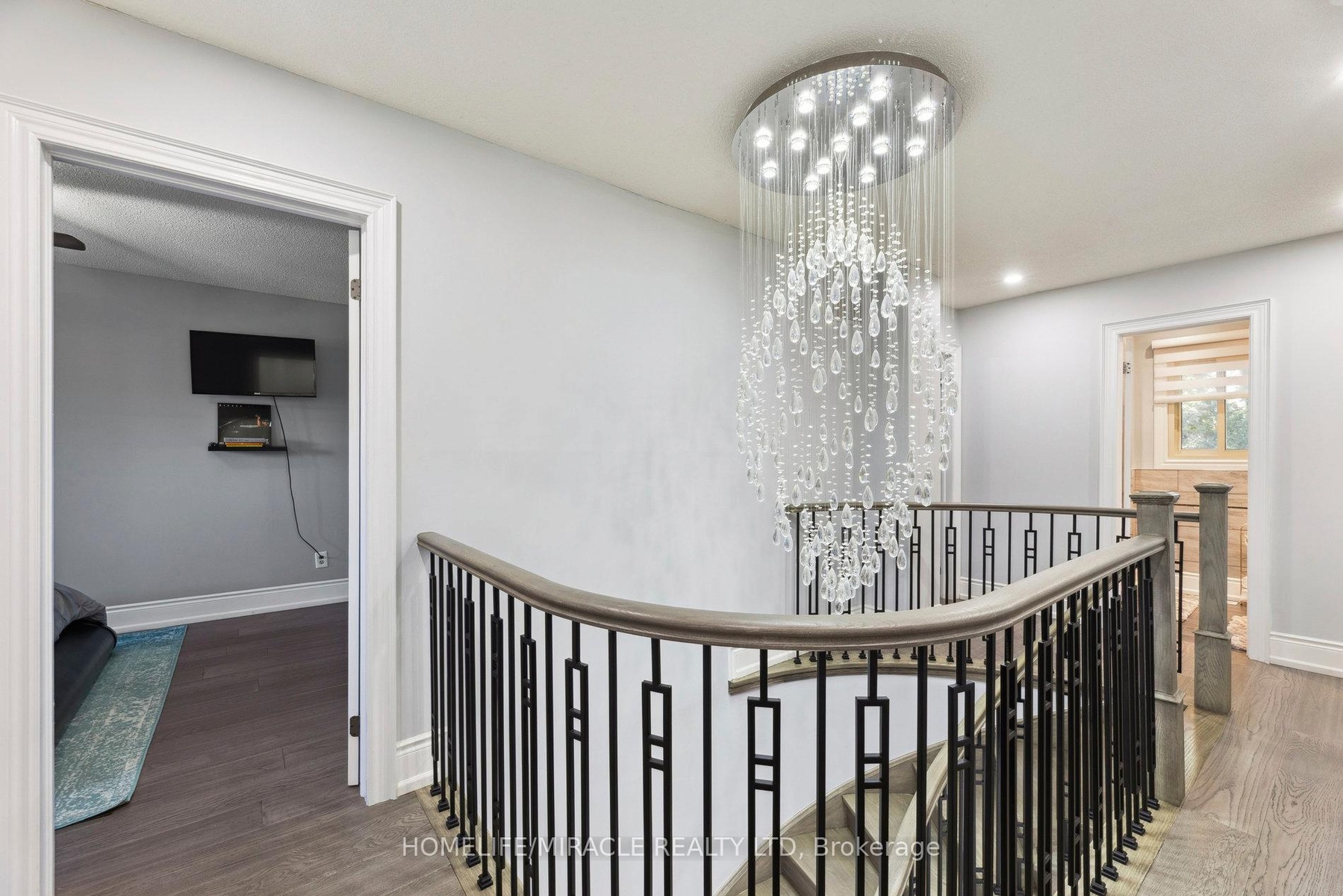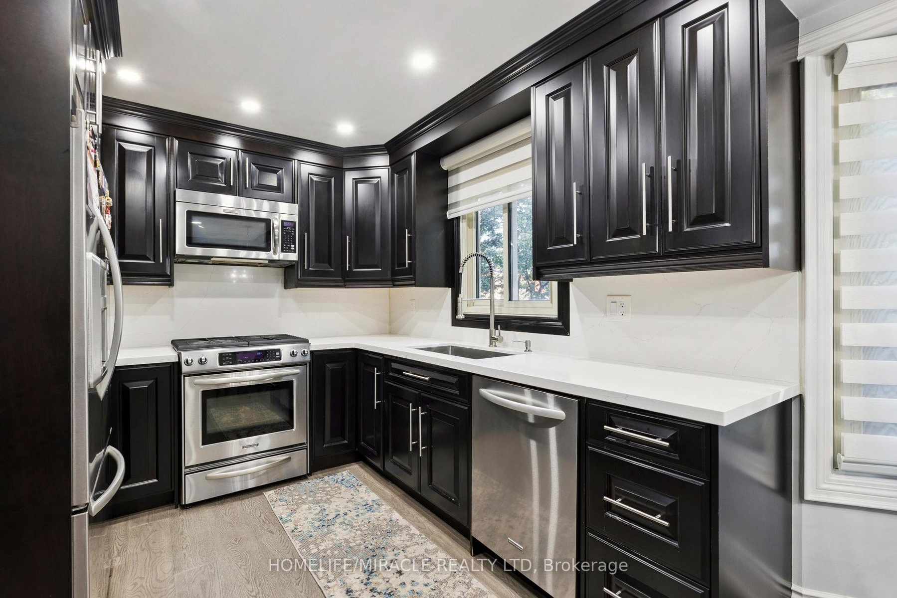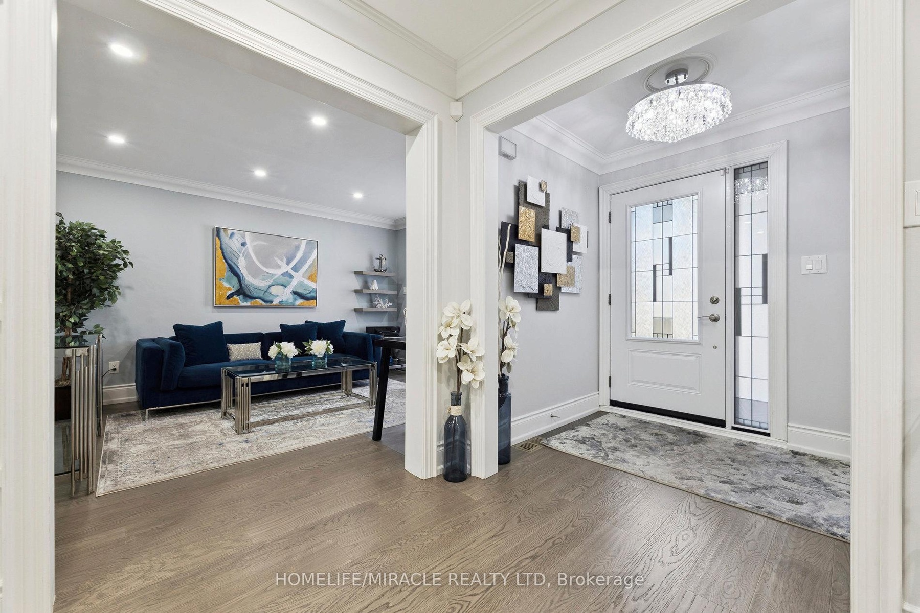 Welcome to 33 Ritchie Ave, a beautifully upgraded detached home where no expense has been spared on renovations. Featuring 4+1 bedrooms, 4 bathrooms, and a fully finished basement, this home has been extensively renovated with over $200,000 in upgrades and truly shows like new. Boasting one of the best layouts, it offers separate living, dining, and family rooms with hardwood floors throughout the main and upper levels. The spacious living room features a large bay window, while the open-concept family room is warm and inviting with a gas fireplace. The modern kitchen showcases stainless steel appliances, quartz countertops and backsplash, extended cabinetry with crown moulding, valance lighting, and a breakfast area with a walk-out to the backyard deck. A convenient main floor laundry room includes custom cabinetry, a quartz countertop, and backsplash. An elegant oak staircase with metal pickets leads upstairs to the spacious primary suite, complete with a walk-in closet, linen closet, and a luxurious 5-piece ensuite featuring a floating vanity, upgraded tiles, frameless glass shower, and a make-up counter. Bedrooms two, three, and four are all generously sized. The finished basement features a spacious open-concept recreation room combined with a kitchen and wet bar, complete with laminate flooring, pot lights, quartz countertops, an additional bedroom, and a 4-piece bath ideal for extended family or guests.. Outside, enjoy a large backyard and an extended driveway providing ample parking. Pot lights are installed throughout the home, both inside and out. This meticulously maintained property combines luxury, style, and functionality in one of Ajax's most desirable neighbourhoods.