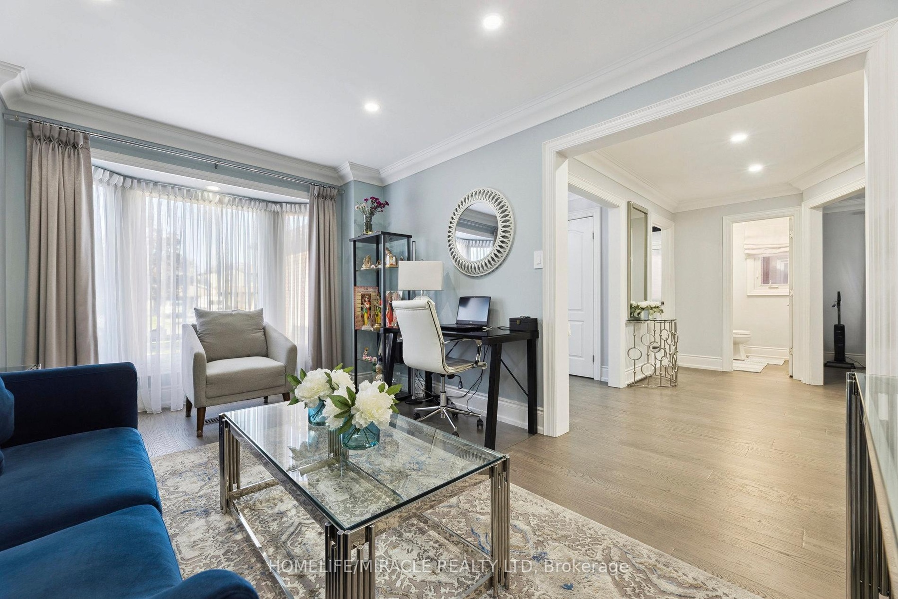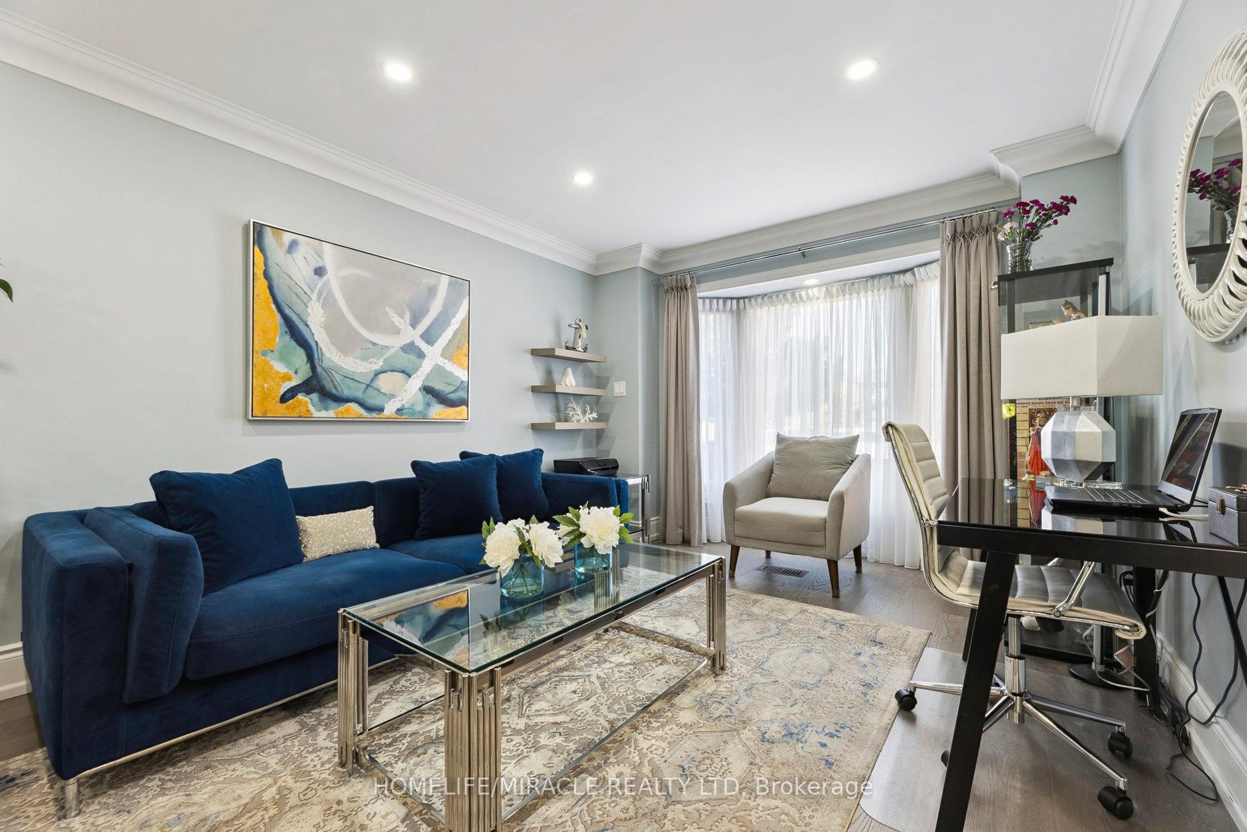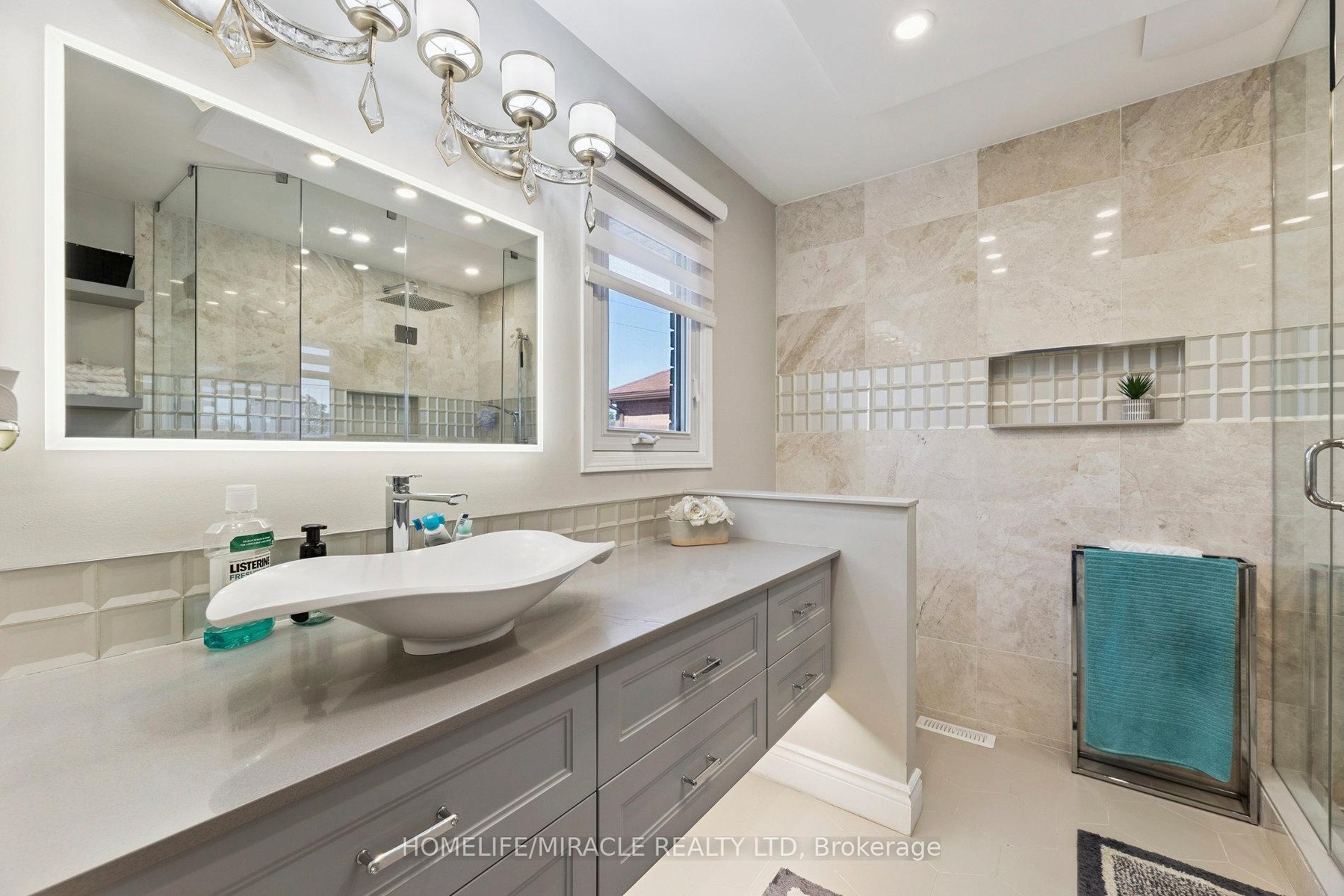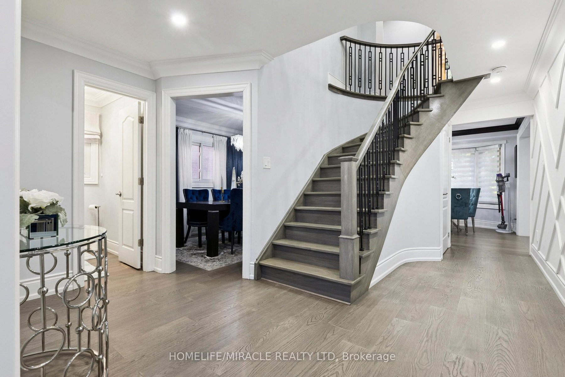 Welcome to 33 Ritchie Ave, a beautifully upgraded detached home where no expense has been spared on renovations. Featuring 4+1 bedrooms, 4 bathrooms, and a fully finished basement, this home has been extensively renovated with over $200,000 in upgrades and truly shows like new. Boasting one of the best layouts, it offers separate living, dining, and family rooms with hardwood floors throughout the main and upper levels. The spacious living room features a large bay window, while the open-concept family room is warm and inviting with a gas fireplace. The modern kitchen showcases stainless steel appliances, quartz countertops and backsplash, extended cabinetry with crown moulding, valance lighting, and a breakfast area with a walk-out to the backyard deck. A convenient main floor laundry room includes custom cabinetry, a quartz countertop, and backsplash. An elegant oak staircase with metal pickets leads upstairs to the spacious primary suite, complete with a walk-in closet, linen closet, and a luxurious 5-piece ensuite featuring a floating vanity, upgraded tiles, frameless glass shower, and a make-up counter. Bedrooms two, three, and four are all generously sized. The finished basement features a spacious open-concept recreation room combined with a kitchen and wet bar, complete with laminate flooring, pot lights, quartz countertops, an additional bedroom, and a 4-piece bath ideal for extended family or guests.. Outside, enjoy a large backyard and an extended driveway providing ample parking. Pot lights are installed throughout the home, both inside and out. This meticulously maintained property combines luxury, style, and functionality in one of Ajax's most desirable neighbourhoods.