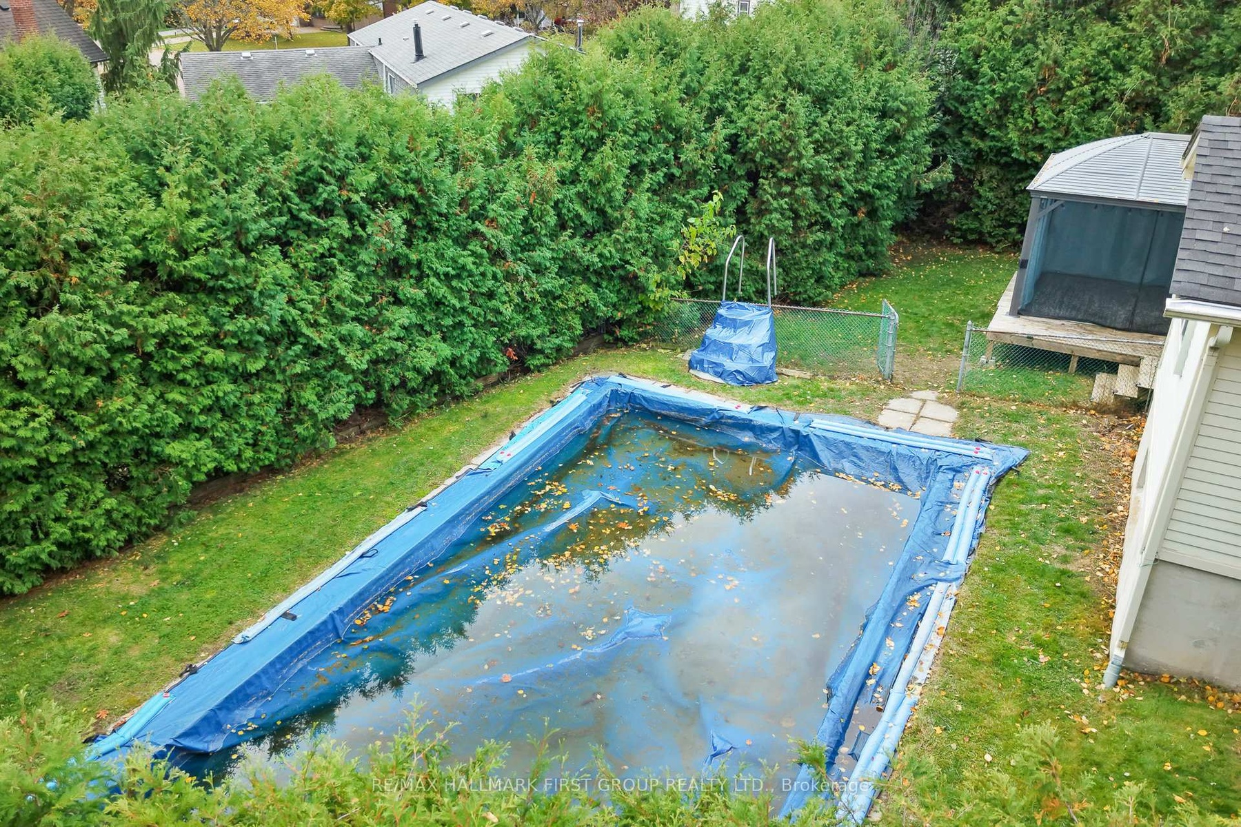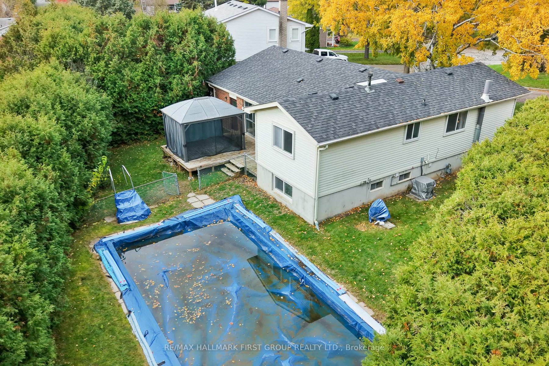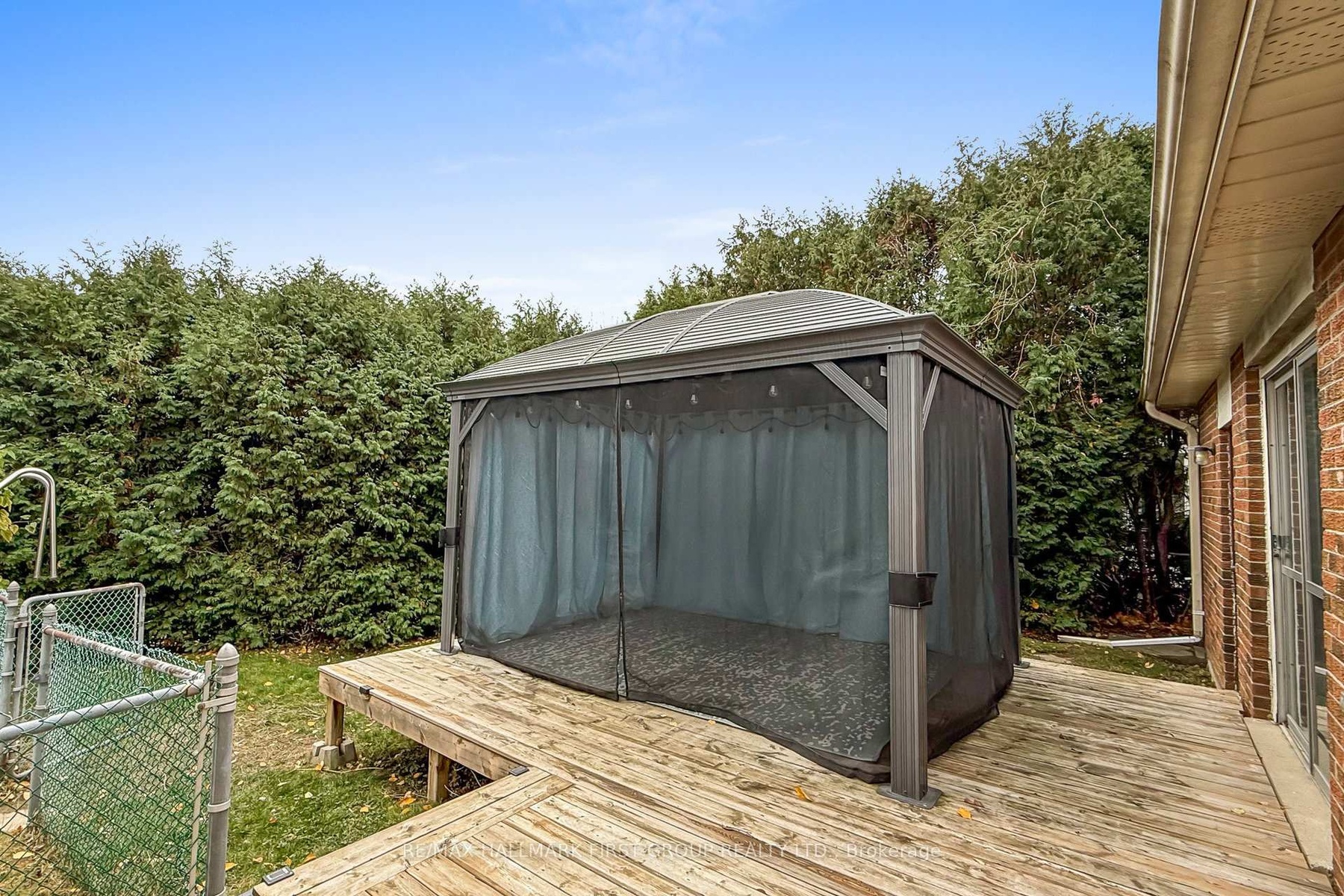 Welcome to this inviting side-split home nestled on a quiet court with no neighbours behind, offering the perfect blend of privacy, comfort, and community in a family-friendly neighbourhood. This charming 3+1 bedroom, 2-bath home is thoughtfully designed for relaxed family living and effortless entertaining. The main floor features newer hardwood flooring, ceramic tile, updated lighting, and a bright, open layout that feels warm and welcoming. The kitchen maintains its timeless and functional appeal-ideal for everyday meals or weekend gatherings. Upstairs, a refreshed full bath complements the spacious bedrooms, while the finished basement adds valuable living space with an additional bedroom and a modern bathroom featuring a stand-up shower.Outside, the property truly shines with a large lot and completely private backyard surrounded by mature trees and lush green space. Step out to a 20' x 16' deck with a gazebo, overlooking a massive in-ground pool-the perfect setting for summer BBQs, pool parties, or peaceful evenings under the stars. An extended single-car garage offers ample room for parking and storage. With major updates including windows, roof, furnace, AC, and pool liner all completed within the last few years, this home offers peace of mind, incredible outdoor living, and a truly serene setting-ready for its next family to call home.