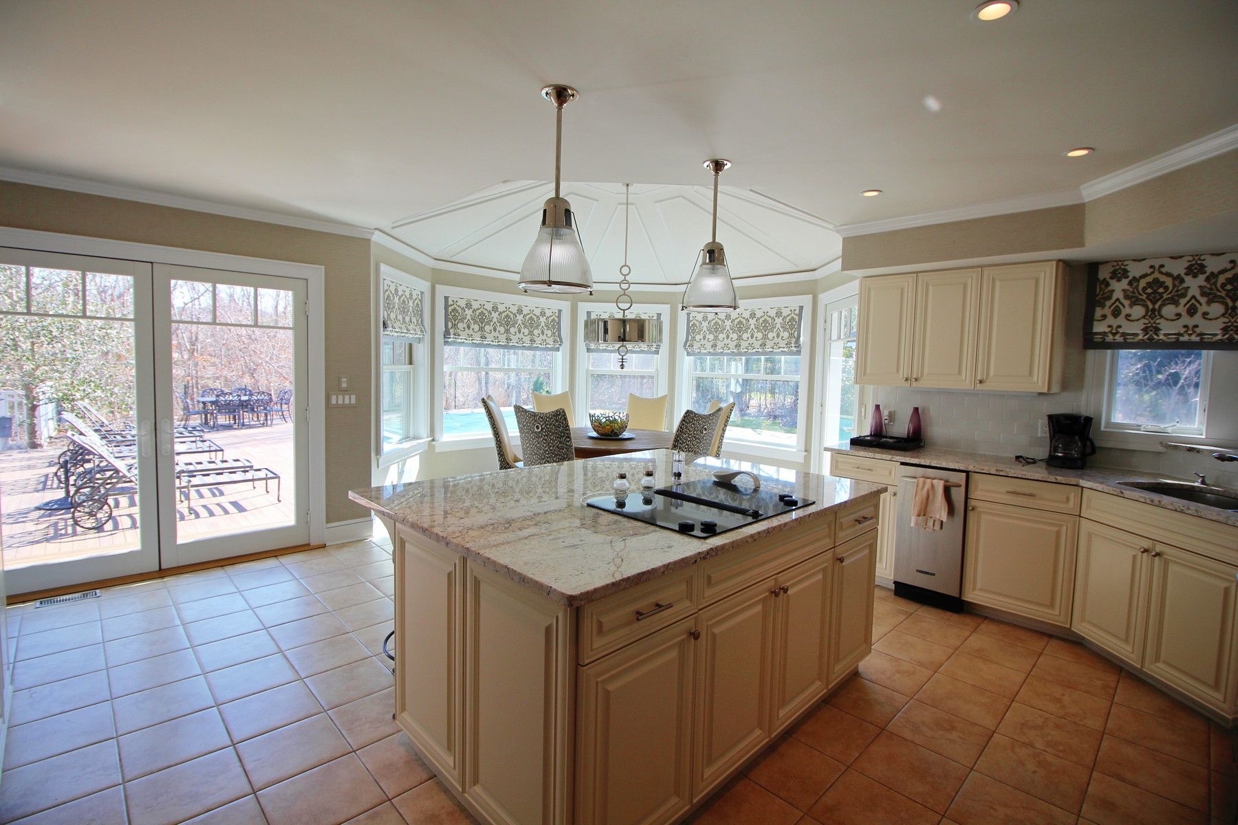 Enjoy everything this light-filled contemporary beauty has to offer on 2 beautifully landscaped acres! A long, winding driveway takes you to this spacious home with many amenities for summer enjoyment. There is a master suite on first floor for your convenience, plus 4 bedrooms upstairs. Other features include a professional kitchen with generous eating area, a formal dining room, media room, heated pool, tennis court and basketball court AND a finished basement with additional space and full bath for staff. Create fantastic summer memories here - a real must-see!