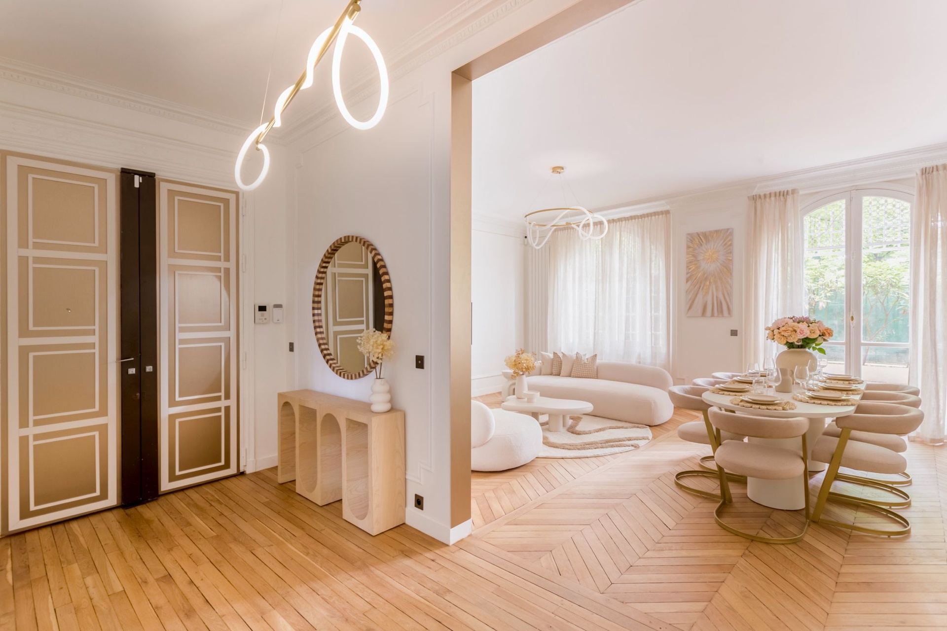 Découvrez cet appartement d’exception de 147 m2, situé au pied de la Tour Eiffel, avec un jardin privatif de 50m2 offrant une vue imprenable sur le monument emblématique, idéal pour admirer chaque soir le scintillement magique de la Dame de fer. Entièrement rénové, ce bien rare se compose d’un spacieux séjour avec salle à manger, agrémenté d’une cuisine ouverte donnant directement sur une terrasse. Il comprend 4 chambres, toutes équipées de leur propre salle de bains, WC et dressings sur mesure. Deux des chambres, en duplex, bénéficient d’une vue sur une cour intérieure et donnent accès à une seconde terrasse privative de style cour anglaise. Situé dans un environnement calme et l’un des emplacements les plus prisés de Paris, cet appartement unique réunit élégance, confort et prestige.