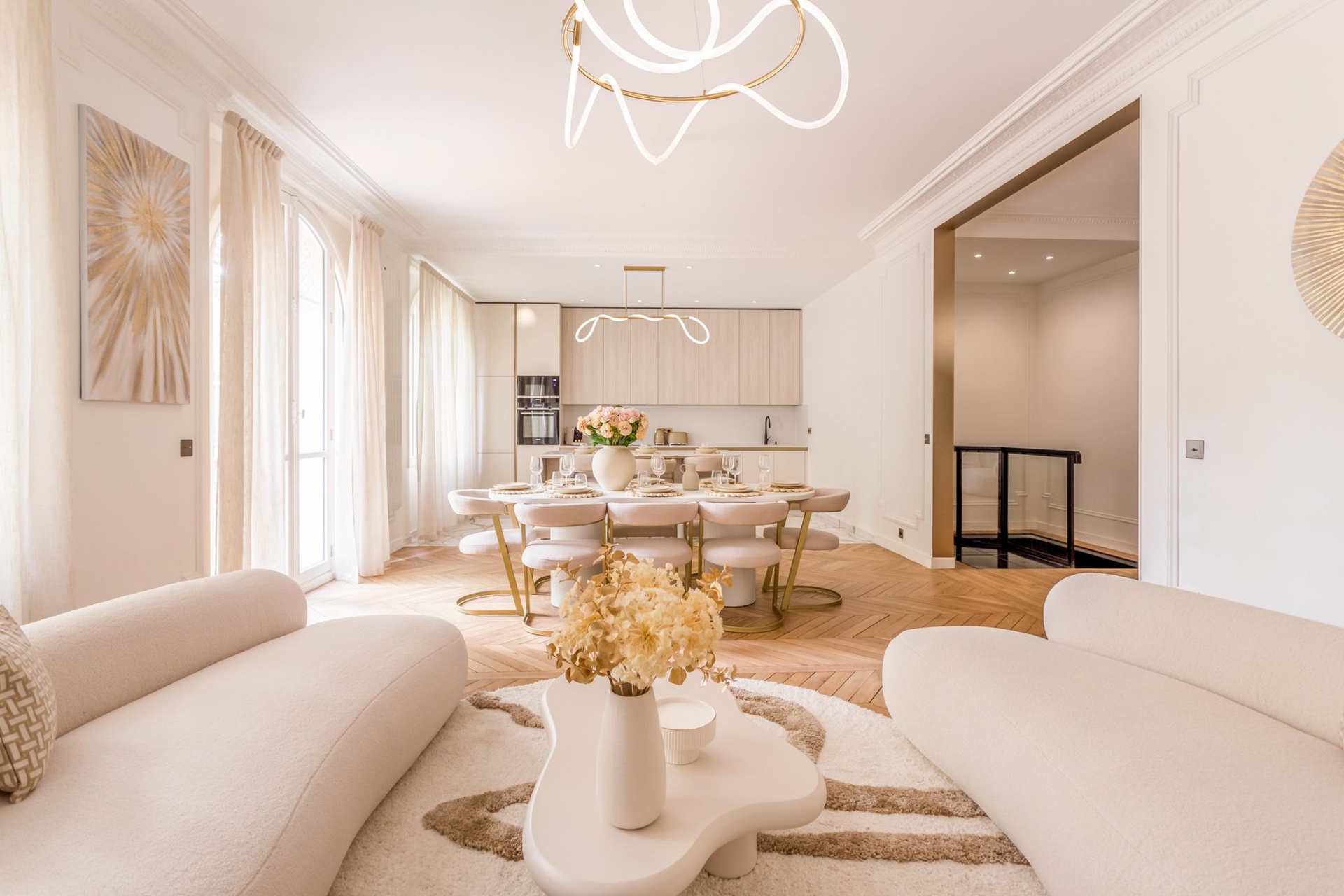 Discover this exceptional 147 m2 apartment, located at the foot of the Eiffel Tower, with a private 50 m2 garden offering an unobstructed view of the iconic monument—perfect for admiring the magical sparkle of the Iron Lady every evening. Fully renovated, this rare property features a spacious living room with dining area, complemented by an open kitchen that opens directly onto a terrace. It includes 4 bedrooms, each equipped with its own bathroom, toilet, and custom-built wardrobes. Two of the bedrooms, arranged in a duplex layout, overlook an interior courtyard and provide access to a second private terrace styled as an English courtyard. Nestled in a peaceful setting and one of Paris's most coveted locations, this unique apartment combines elegance, comfort, and prestige.