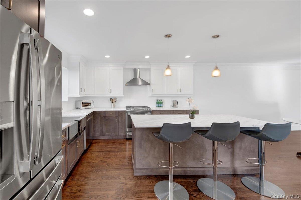 The second floor offers 3 comfortable family size bedrooms and full hall bathroom with double sink vanity. The primary suite offers a spacious walk in closet and a luxurious en-suite bath with soaking tub, shower and double sink vanity. Laundry is conveniently located on the second floor. This elegant home has approximately 2400 square feet of living space. Custom blinds in bedrooms, patio has electric awning. Plenty of space in the lower level basement level has endless possibilities to be finished space with the high ceilings and open space. Oversized 2 car garage. The Property in back yard goes over 60 feet beyond the fence. back beyond the fence endless opportunity to expand. Located in the heart of Valhalla and close proximity to Train, Schools and Public transportation. Close to kensico dam and enjoy all that it has to offer. The taxes do not reflect the STAR exception. Full attic ideal for storage. 2 Car garage, and so much more!! Come see this amazing elegant home and all that it has to offer.