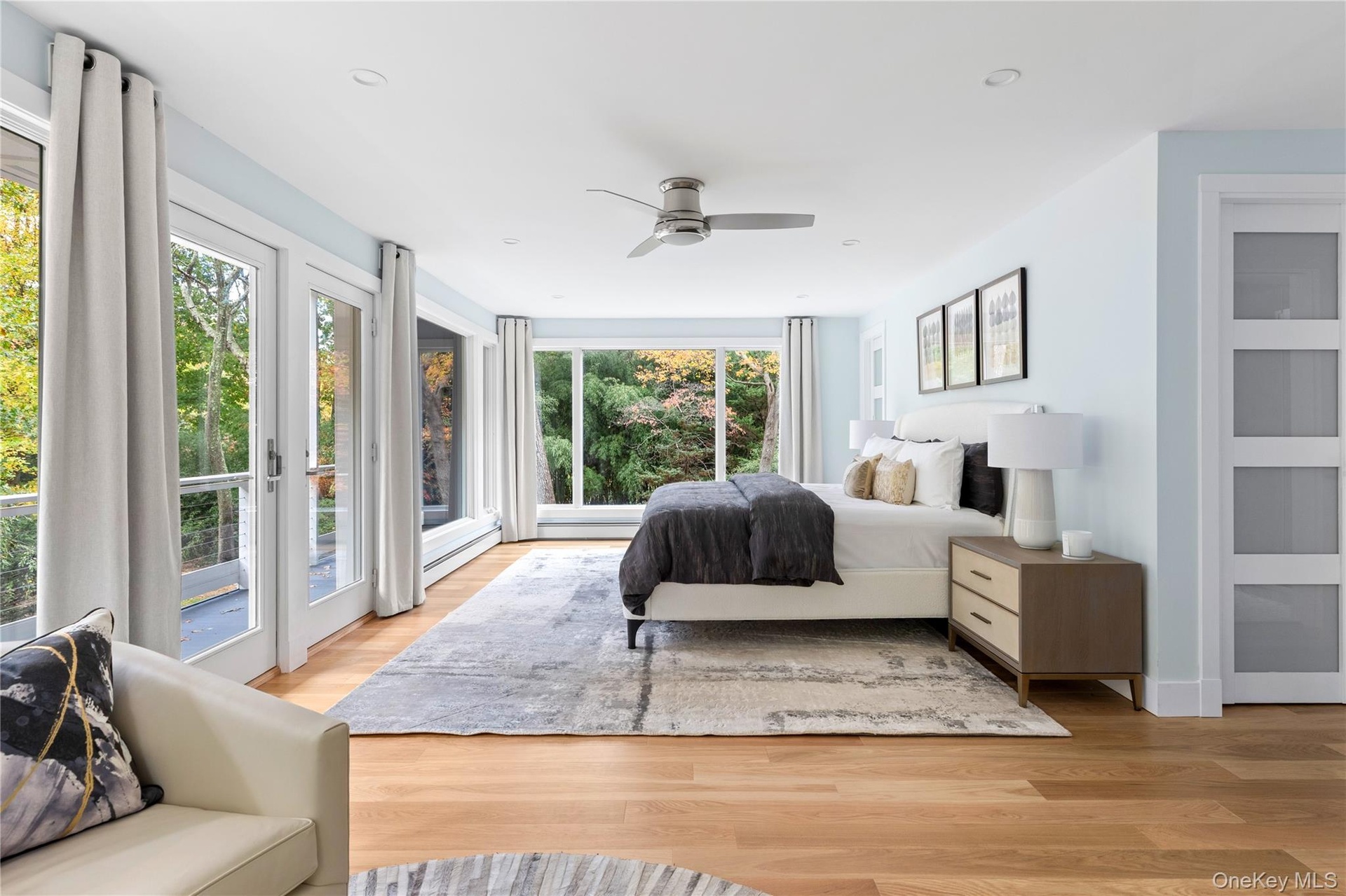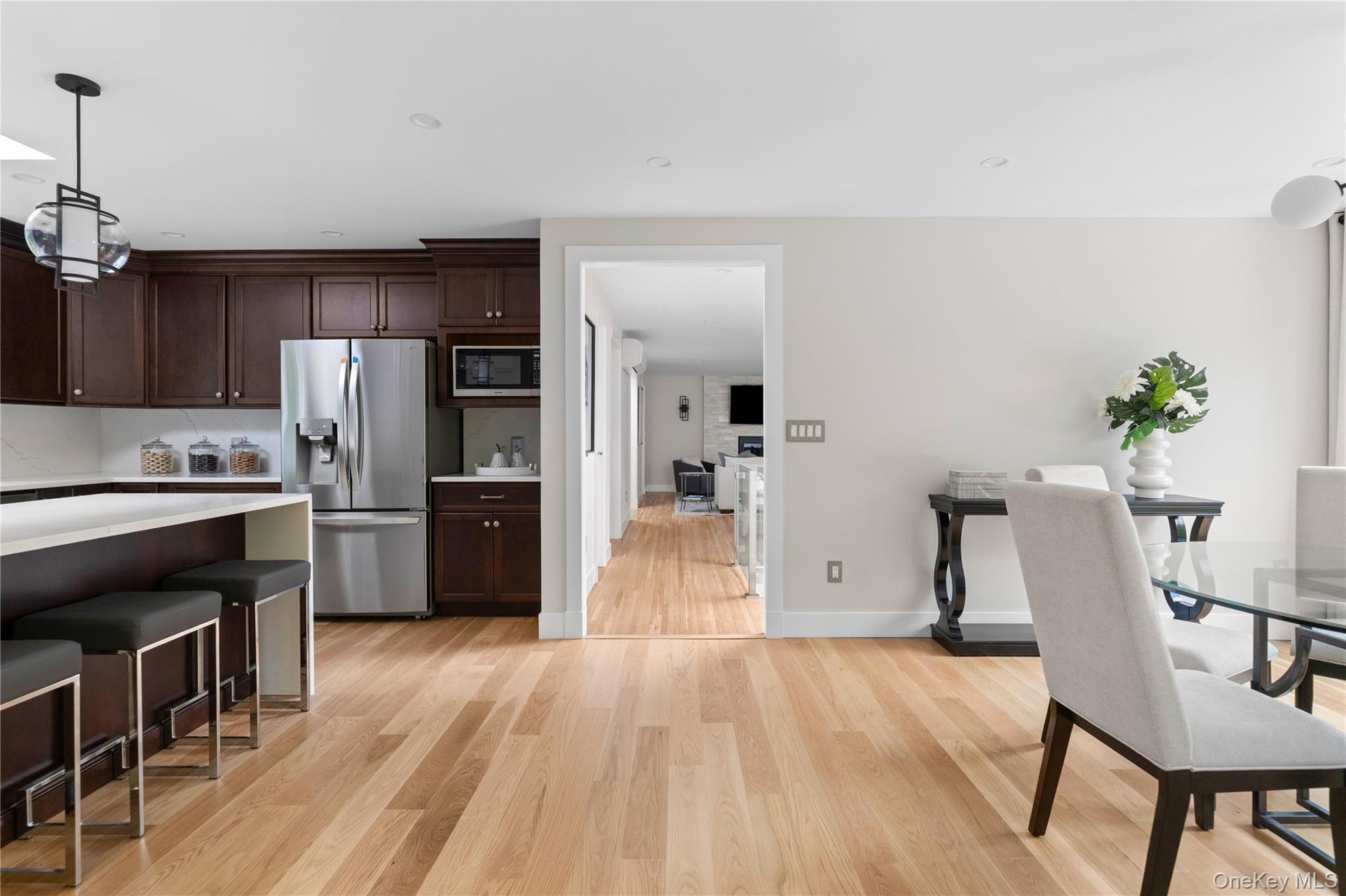 Inside, discover an environment of refined sophistication and effortless flow. Expansive floor-to-ceiling windows flood the interiors with natural light, highlighting the beautiful hardwood floors, soaring ceilings, and two sculptural marble fireplaces. The open-concept layout showcases a fully redesigned chef’s kitchen with dark wood cabinetry, featuring a large center island, premium appliances, and bespoke finishes throughout.