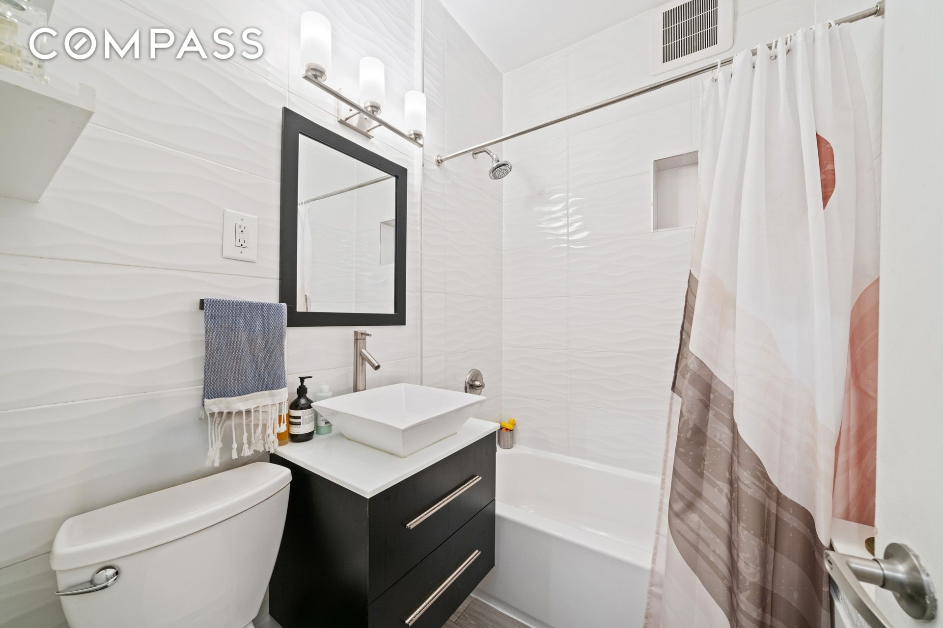 Step into the posh living area, a perfect canvas for both relaxation and entertaining. Across the room, a newly renovated kitchen beckons with its sleek dishwasher, stylish cabinetry, and chic tile backsplash. The bathroom has refined tilework and cleverly designed shelving for all your essentials. Both bedrooms are quietly situated at the back of the home, offering peaceful retreats. The larger bedroom boasts a full wall of custom-built closets, ensuring ample storage for your wardrobe and more. Gleaming hardwood floors flow throughout this beautiful abode, perched conveniently just one flight up, and pets are allowed.