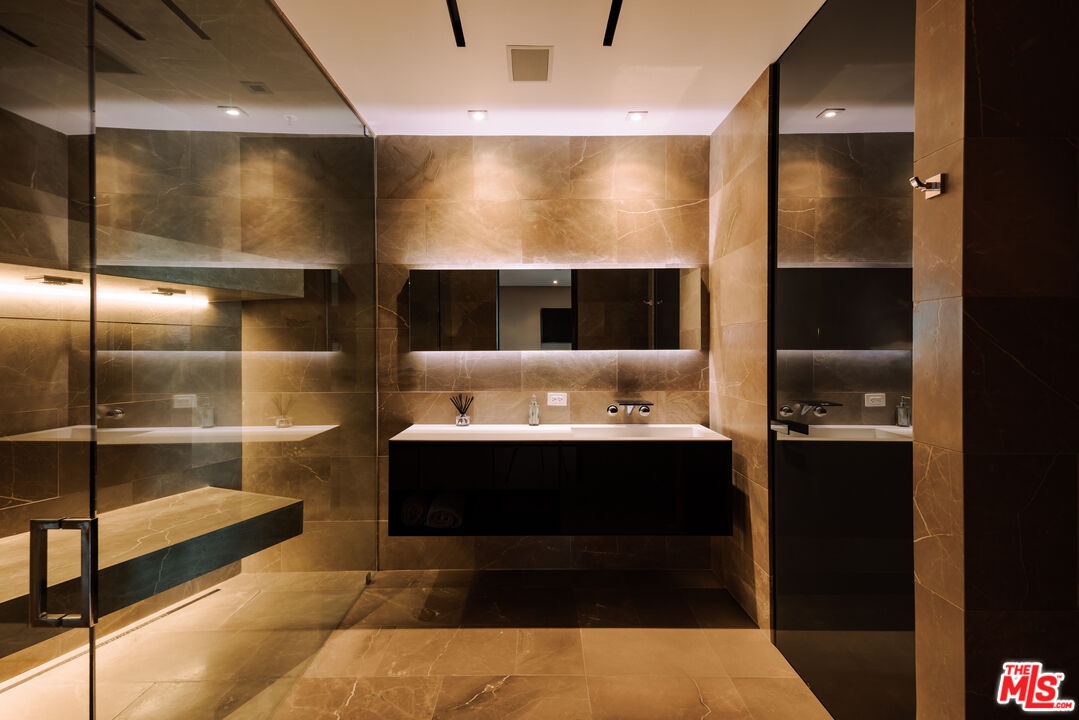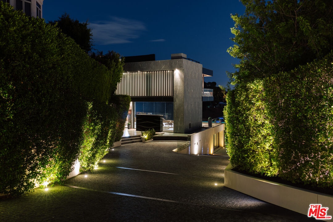 True Hollywood Hills living! Perched high above the Sunset Strip, 9199 Thrasher Avenue is a turn key architectural masterpiece by internationally acclaimed architect Paul McClean, commanding one of the most dramatic vantage points in all of Los Angeles. Walls of glass frame breathtaking 280 panoramic views that sweep from the shimmering Downtown skyline to the distant coastline of Catalina Island. By day, the residence floats effortlessly above the city; by night, it transforms into a luminous observatory of twinkling lights and endless sky. A grand double-height entry with a 34-foot Murano crystal chandelier adorned with 24K gold leaf and hand-blown glass sets a tone of artistry and sophistication. The open-concept great room flows onto an expansive terrace where a sleek infinity-edge pool and spa appear to dissolve into the horizon. The custom Italian kitchen by ErnestoModa, crowned with a Fendi chandelier and fitted with Miele appliances, is as sculptural as it is functional.Every space has been designed for indulgent living and effortless entertaining from the glass-enclosed wine cellar, fully equipped gym with horizontal massage shower, and cinematic theater, to the lounge with wraparound fire pit and walls of retractable glass that blur the line between indoors and out. The primary suite is a private retreat with a bar, boutique-style showroom closet, and a spa-inspired bath that captures the essence of luxury resort living. Air conditioned 4-6 car garage with turntable and direct access to lower level. Driveway turntable as well for luxury car accessibility. Fully integrated Creston Smart Home technology, elevator for easy access and the best views in all of L.A. Don't miss this extraordinary modern true Paul McClean trophy estate in the famous Bird Streets of the Hollywood Hills!