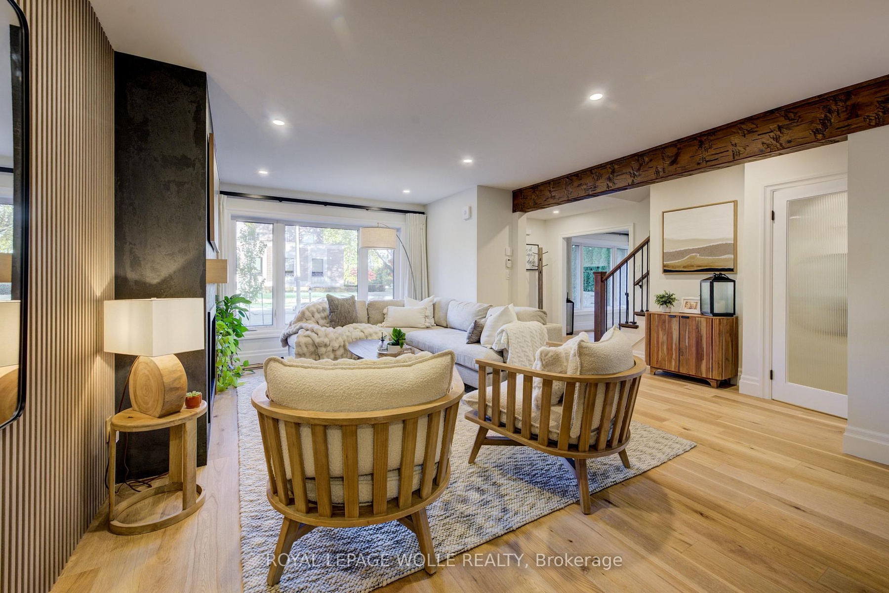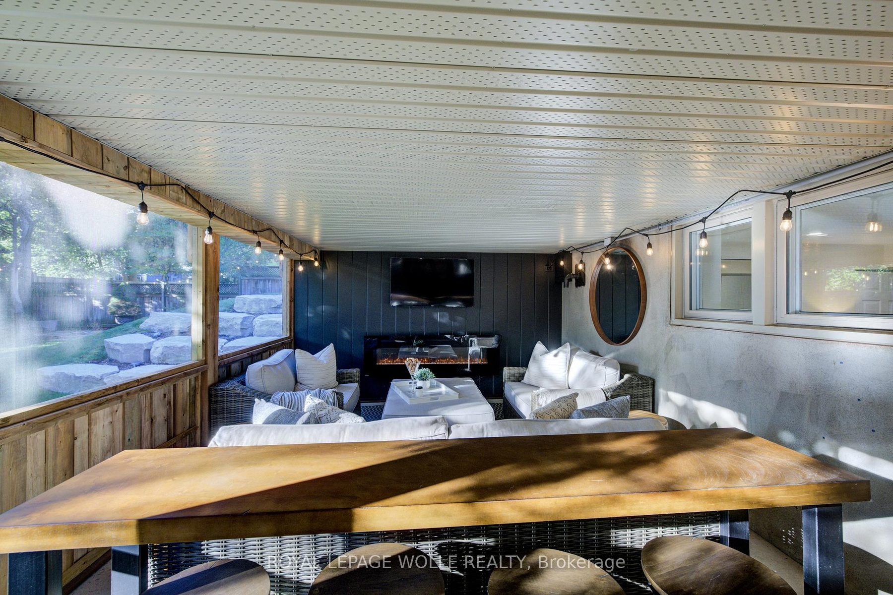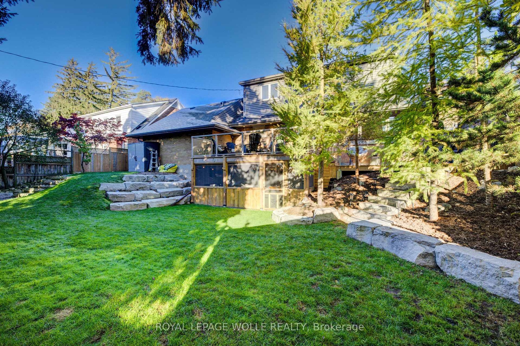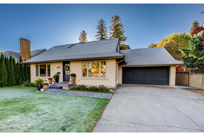 Welcome to 191 John St W, located in the highly sought-after Westmount neighborhood of Waterloo! This is the one you don't want to miss! Walk to Westmount Golf Course and uptown Waterloo. This beautifully updated and meticulously maintained 3-bedroom, 3-bathroom home combines modern elegance with exceptional comfort. Step inside to discover hardwood floors and a warm, inviting main-floor living area featuring a gas fireplace-perfect for cozy nights in. The custom kitchen by Casey's Kitchens is a true showpiece, complete with a large island with generous storage, gas stove, and built-in oven with air fryer function. The open-concept layout flows effortlessly into the large dining area and main-floor bar- perfect for entertaining. A convenient 2-piece bathroom completes the main level. Upstairs, you'll find three bedrooms and a 4-piece bathroom, offering both style and comfort. The walkin attic space has awesome storage. The finished walkout basement adds even more living and hang out space in the recroom, also featuring a beautiful and modern 3 piece bathroom (2025) with heated floors and a laundry area. There is great storage space in the basement. Step outside to your private retreat - an enclosed outdoor Muskoka room with a fireplace, quartz counters on the bar and fully screened in perfect for relaxing or entertaining with no bugs. Enjoy a large deck, fully fenced backyard, and two storage sheds. The great sized landscaped yard could easily fit a swimming pool if desired. With a double-car garage (with loft storage) and dbl wide driveway you have parking for up to eight vehicles. Major exterior updates completed in 2025 include new siding, soffit, gutters, stone façade, eavestroughs, and roof, this home ensures peace of mind for years to come. Need more space... renderings are available for possible primary suite/bonus room over the garage. Nothing to do but move in and enjoy!