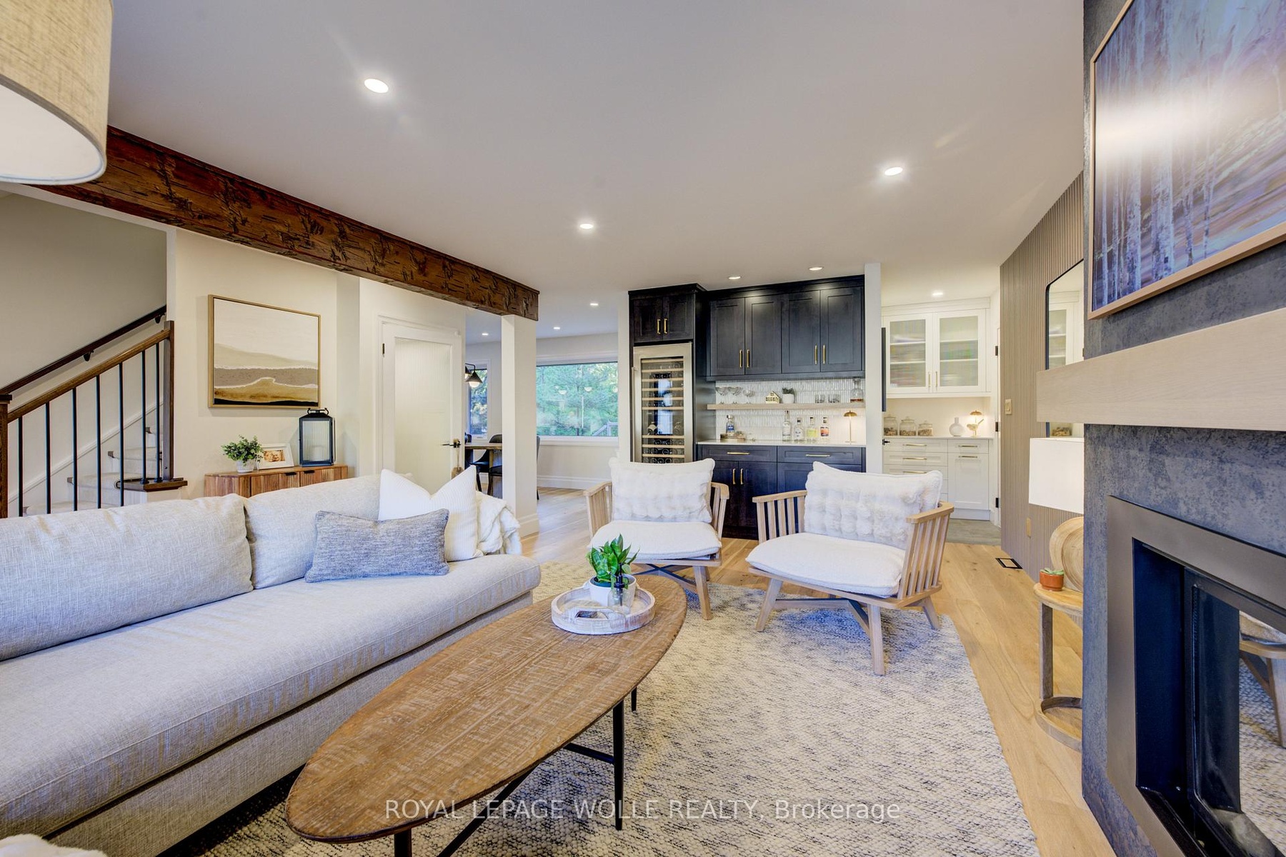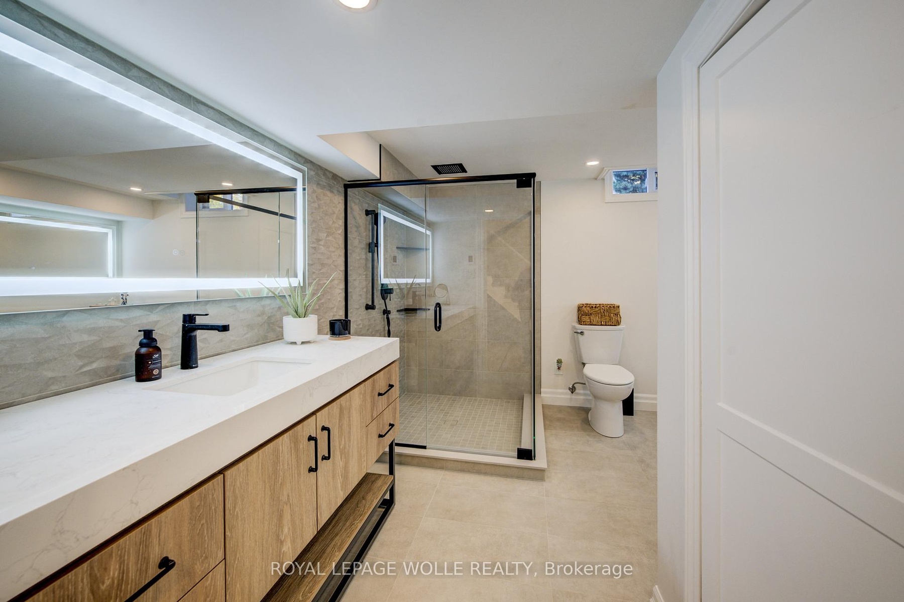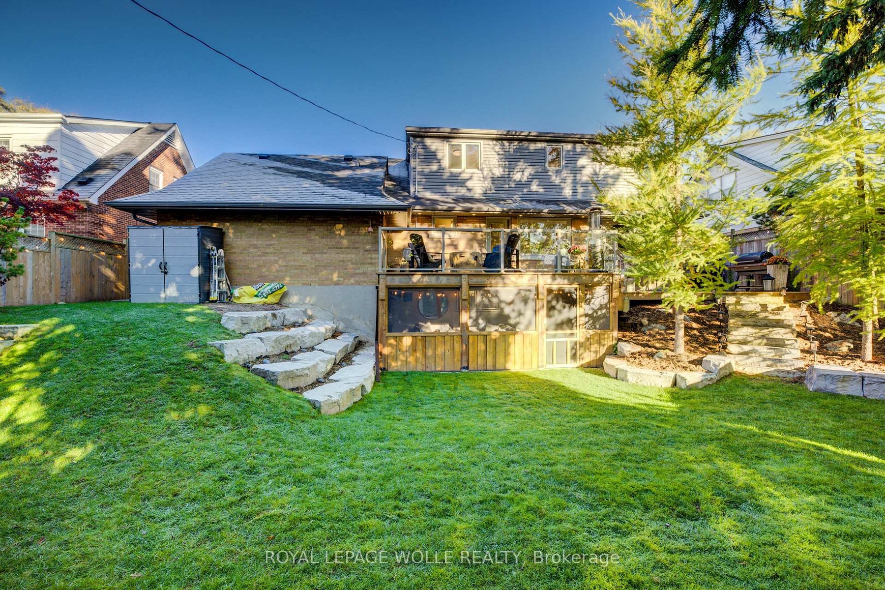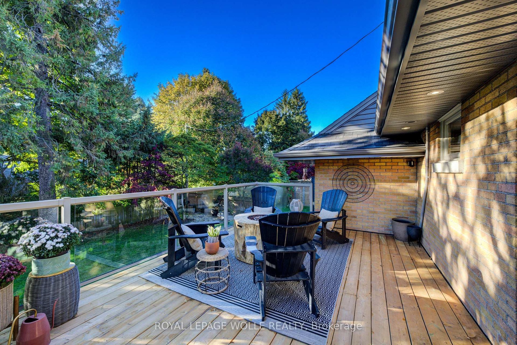 Welcome to 191 John St W, located in the highly sought-after Westmount neighborhood of Waterloo! This is the one you don't want to miss! Walk to Westmount Golf Course and uptown Waterloo. This beautifully updated and meticulously maintained 3-bedroom, 3-bathroom home combines modern elegance with exceptional comfort. Step inside to discover hardwood floors and a warm, inviting main-floor living area featuring a gas fireplace-perfect for cozy nights in. The custom kitchen by Casey's Kitchens is a true showpiece, complete with a large island with generous storage, gas stove, and built-in oven with air fryer function. The open-concept layout flows effortlessly into the large dining area and main-floor bar- perfect for entertaining. A convenient 2-piece bathroom completes the main level. Upstairs, you'll find three bedrooms and a 4-piece bathroom, offering both style and comfort. The walkin attic space has awesome storage. The finished walkout basement adds even more living and hang out space in the recroom, also featuring a beautiful and modern 3 piece bathroom (2025) with heated floors and a laundry area. There is great storage space in the basement. Step outside to your private retreat - an enclosed outdoor Muskoka room with a fireplace, quartz counters on the bar and fully screened in perfect for relaxing or entertaining with no bugs. Enjoy a large deck, fully fenced backyard, and two storage sheds. The great sized landscaped yard could easily fit a swimming pool if desired. With a double-car garage (with loft storage) and dbl wide driveway you have parking for up to eight vehicles. Major exterior updates completed in 2025 include new siding, soffit, gutters, stone façade, eavestroughs, and roof, this home ensures peace of mind for years to come. Need more space... renderings are available for possible primary suite/bonus room over the garage. Nothing to do but move in and enjoy!