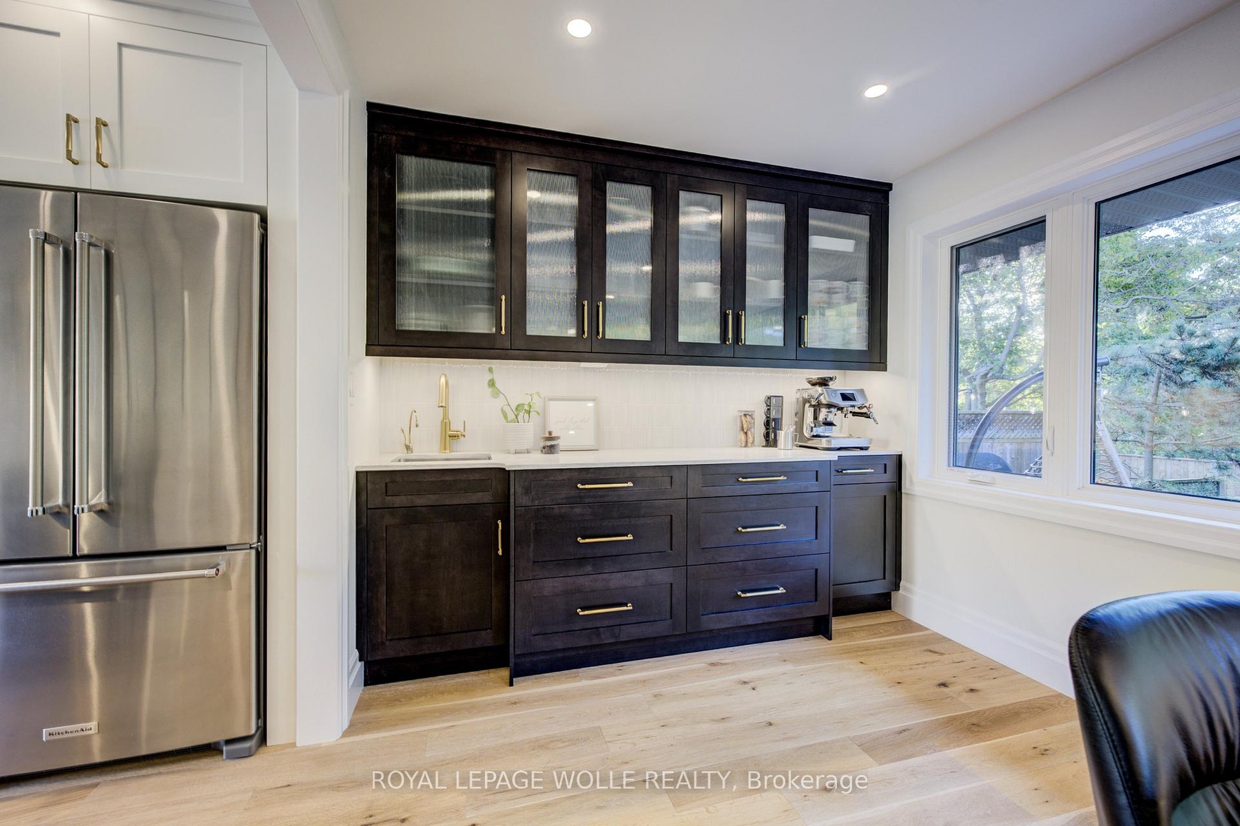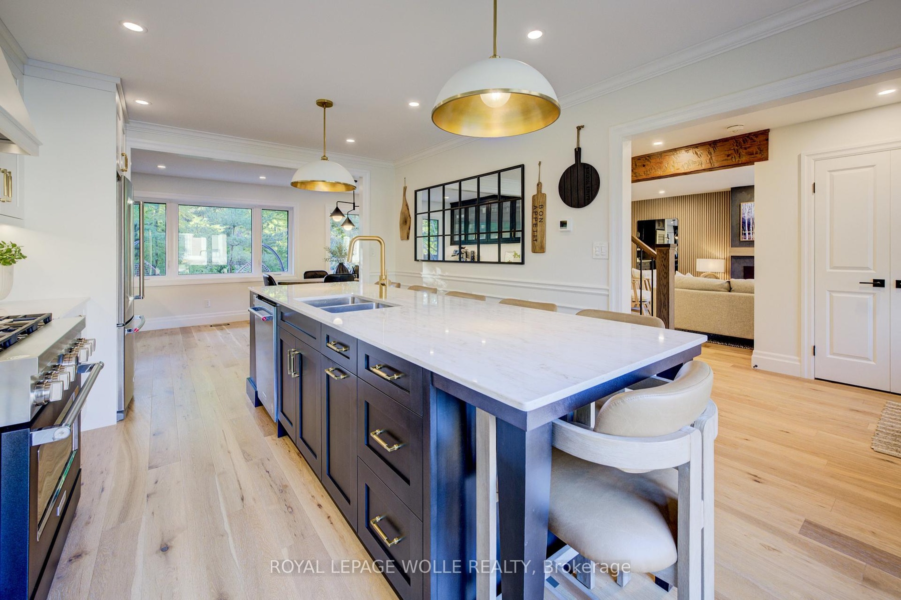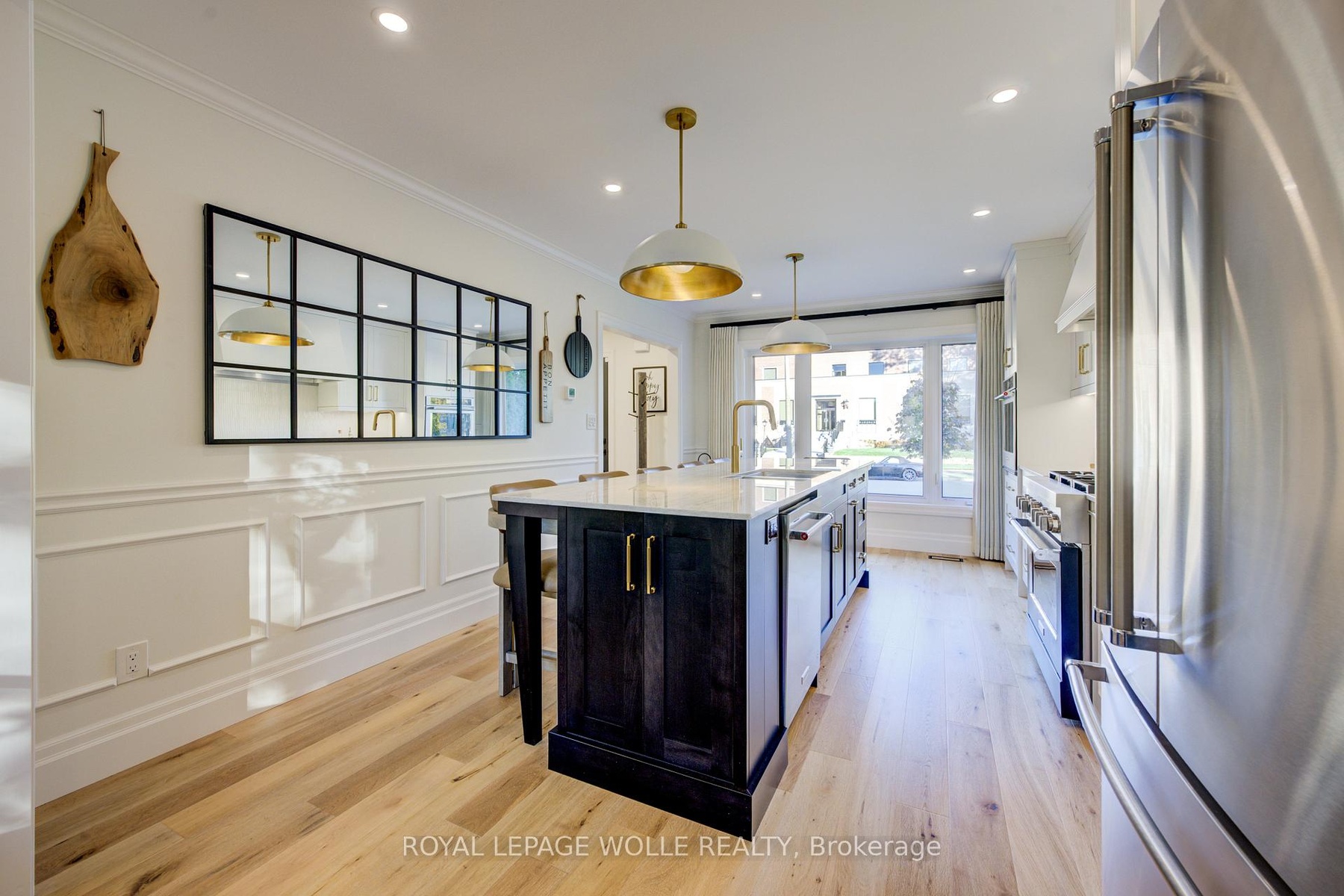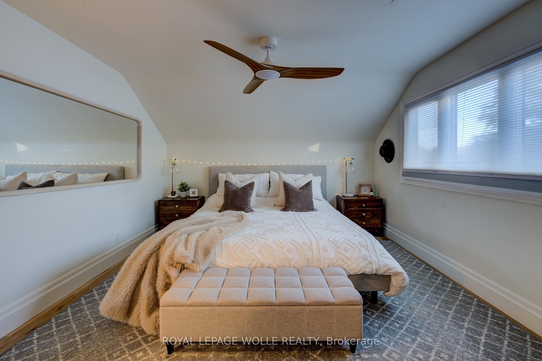 Welcome to 191 John St W, located in the highly sought-after Westmount neighborhood of Waterloo! This is the one you don't want to miss! Walk to Westmount Golf Course and uptown Waterloo. This beautifully updated and meticulously maintained 3-bedroom, 3-bathroom home combines modern elegance with exceptional comfort. Step inside to discover hardwood floors and a warm, inviting main-floor living area featuring a gas fireplace-perfect for cozy nights in. The custom kitchen by Casey's Kitchens is a true showpiece, complete with a large island with generous storage, gas stove, and built-in oven with air fryer function. The open-concept layout flows effortlessly into the large dining area and main-floor bar- perfect for entertaining. A convenient 2-piece bathroom completes the main level. Upstairs, you'll find three bedrooms and a 4-piece bathroom, offering both style and comfort. The walkin attic space has awesome storage. The finished walkout basement adds even more living and hang out space in the recroom, also featuring a beautiful and modern 3 piece bathroom (2025) with heated floors and a laundry area. There is great storage space in the basement. Step outside to your private retreat - an enclosed outdoor Muskoka room with a fireplace, quartz counters on the bar and fully screened in perfect for relaxing or entertaining with no bugs. Enjoy a large deck, fully fenced backyard, and two storage sheds. The great sized landscaped yard could easily fit a swimming pool if desired. With a double-car garage (with loft storage) and dbl wide driveway you have parking for up to eight vehicles. Major exterior updates completed in 2025 include new siding, soffit, gutters, stone façade, eavestroughs, and roof, this home ensures peace of mind for years to come. Need more space... renderings are available for possible primary suite/bonus room over the garage. Nothing to do but move in and enjoy!