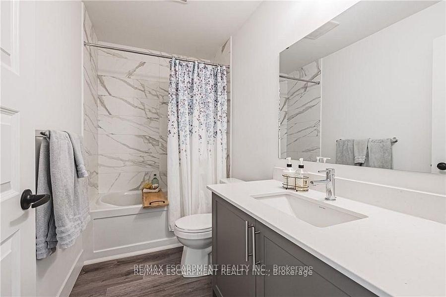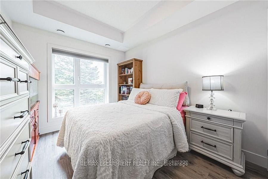 Premium 2 bedroom 2 bath condo in desirable Lackner Woods with private balcony overlooking evergreens. This unit will impress you with its many tasteful upgrades and spacious open concept layout providing the feel of a detached home. The kitchen is complete with extended cabinetry, large island with quartz counter top, stainless steel appliances and tiled backsplash. Convenient in-suite laundry. Primary bedroom with walk-in closet, ensuite bath with sliding glass doors to walk-in shower, quartz vanity. Second bedroom with closet, located next to 4 piece bathroom with quartz vanity. Move in ready unit, complete with window coverings. Building features outdoor playground and bicycle storage. Includes 1 parking spot, 1 locker. Fabulous neighbourhood with endless shopping amenities, highly rated schools, hospitals, walking trails, ski hills, easy high way access and more.