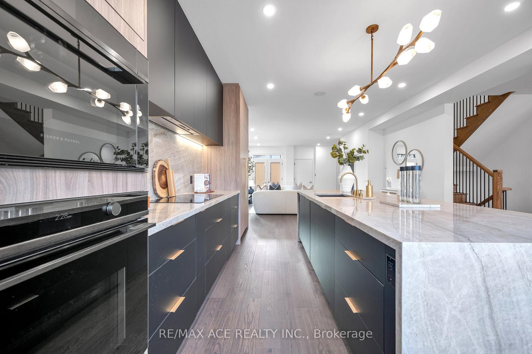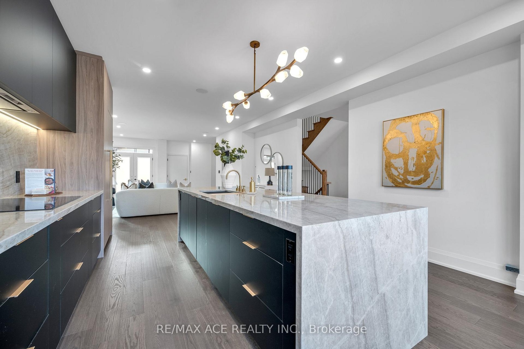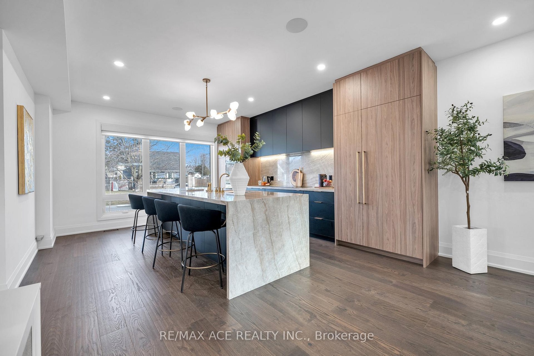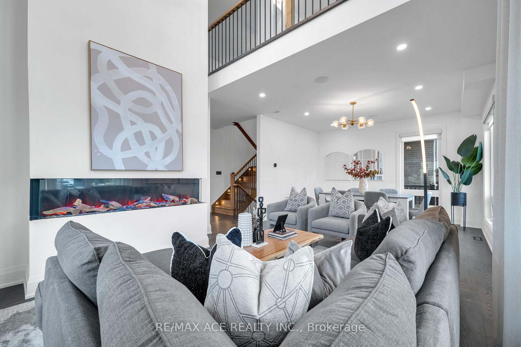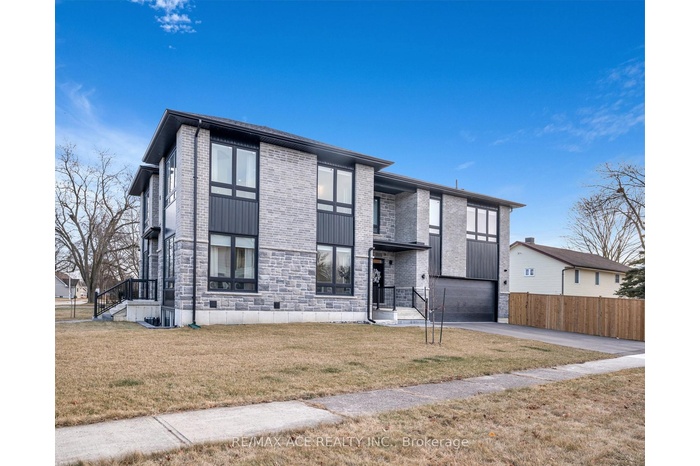 Stunning two-storey custom home in a family-friendly, walkable neighborhood with mature trees. Featuring 4 bedrooms, 3.5 bathrooms, and a Scandinavian-inspired kitchen with a large waterfall quartzite island, induction cooktop, and panel-ready appliances. The open-concept main floor boasts 9-ft ceilings, large windows, hardwood and porcelain flooring, two living areas, dining space, and plenty of custom storage. Upstairs, the primary suite offers a spa-like 6-piece ensuite, plus three additional bedrooms and two more bathrooms. Luxury touches include gold-accented fixtures, motorized curtains, electric fireplace, in-ceiling speakers, a mezzanine, and a garage with Tesla EV charging. Security is advanced with automated entry and multiple cameras. The unfinished basement has a separate entrance, and the large front and backyards are perfect for relaxing. Close to schools, shopping, highways, Ajax GO station, and the waterfront. Modern comfort, style, and convenience-all in one home!