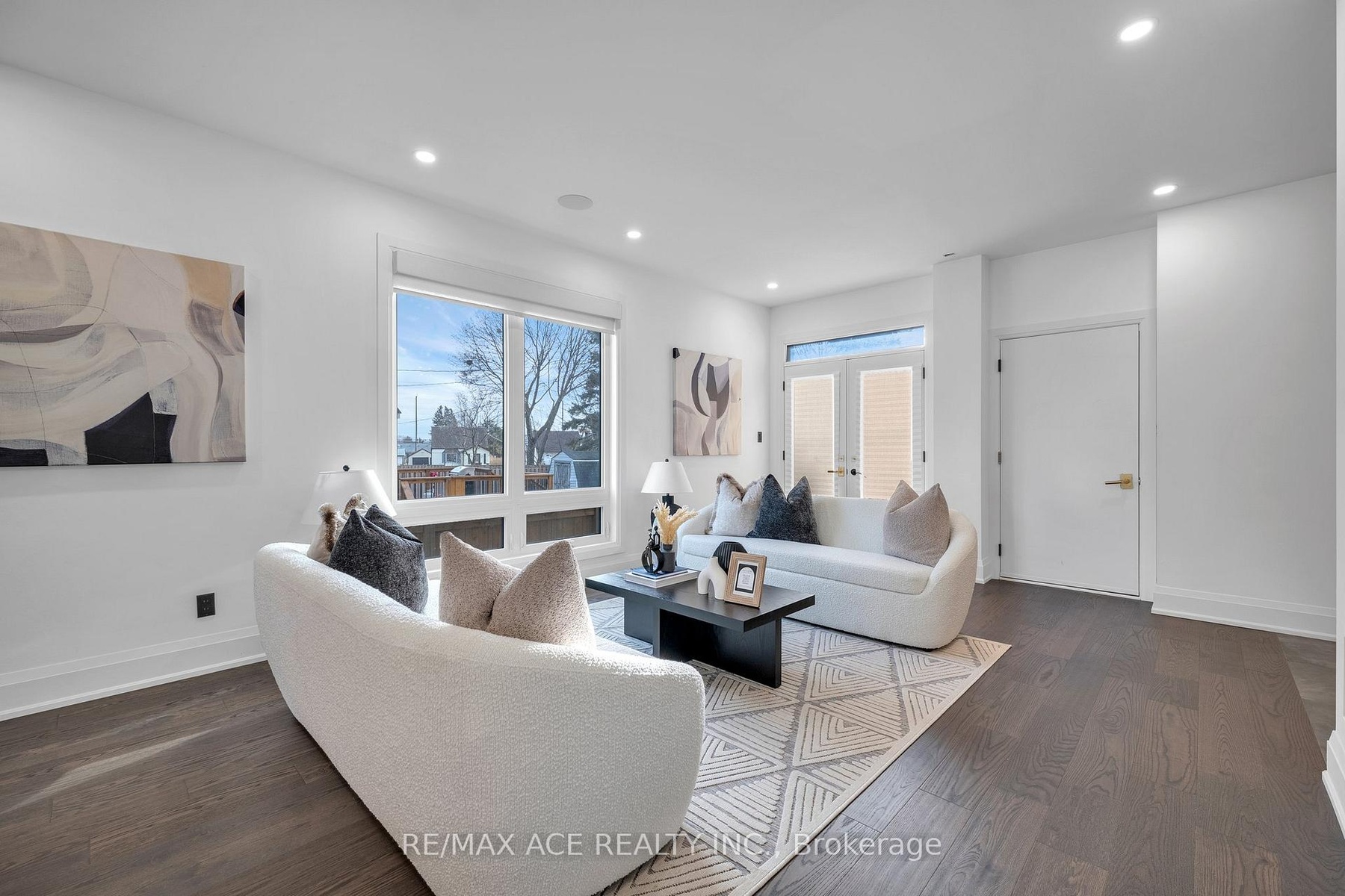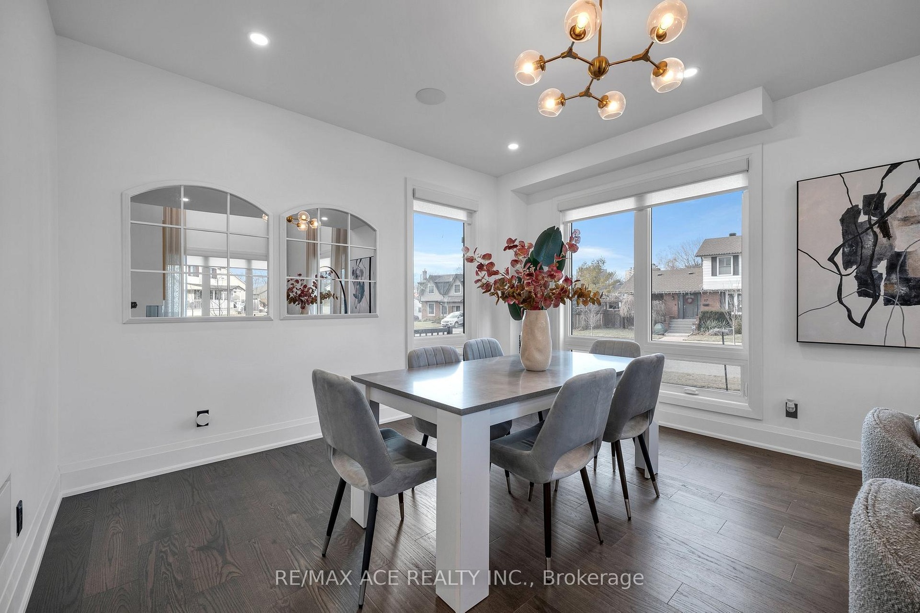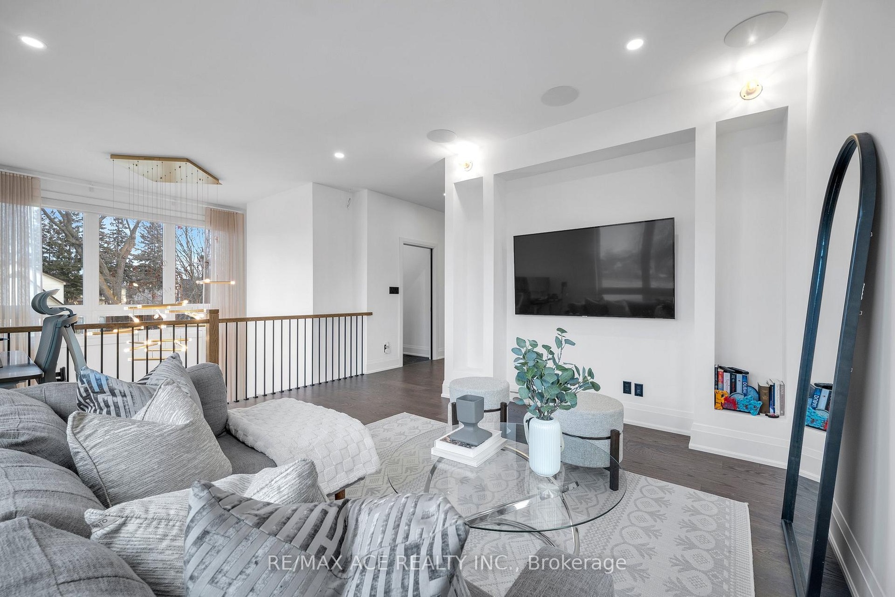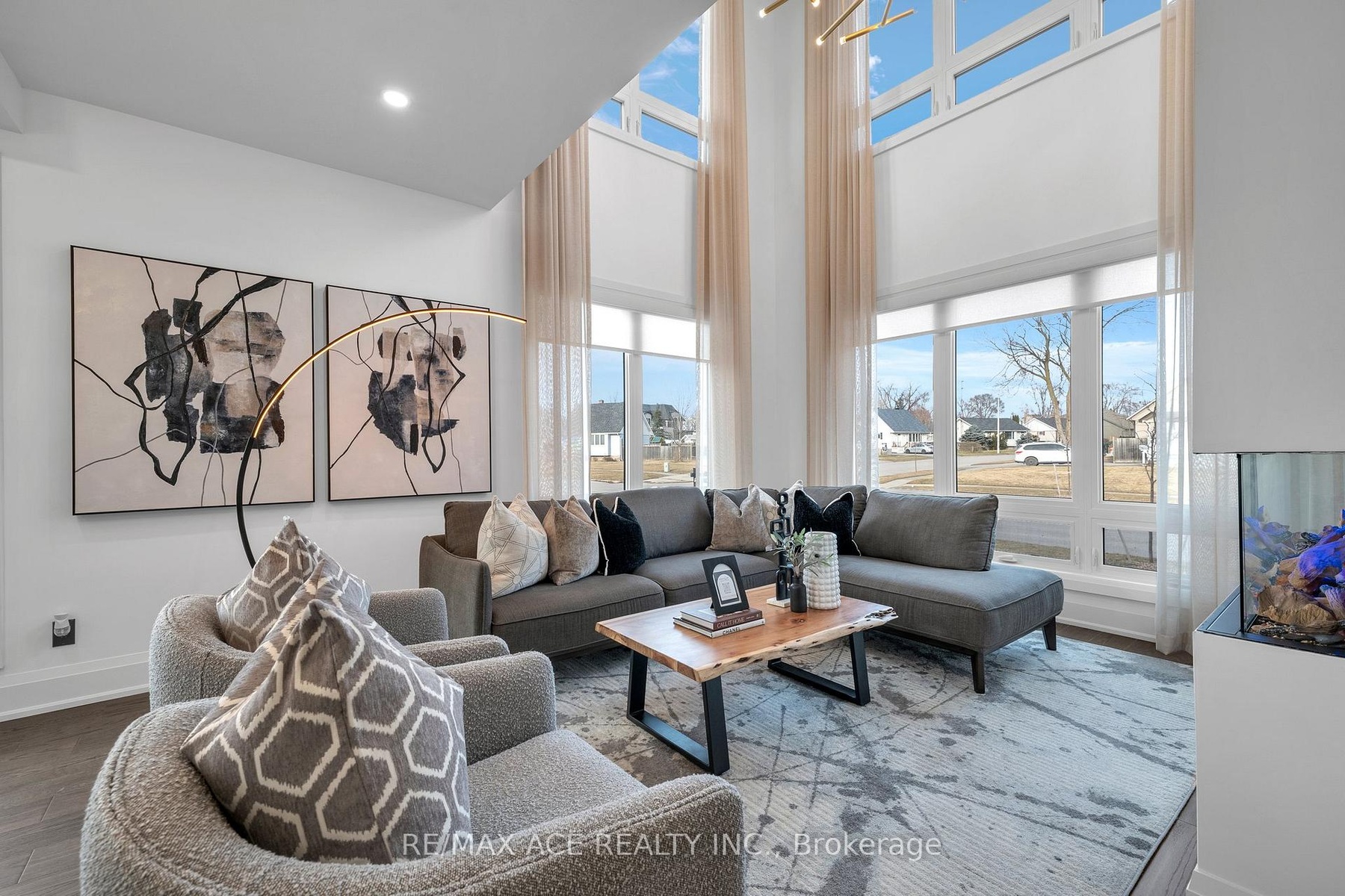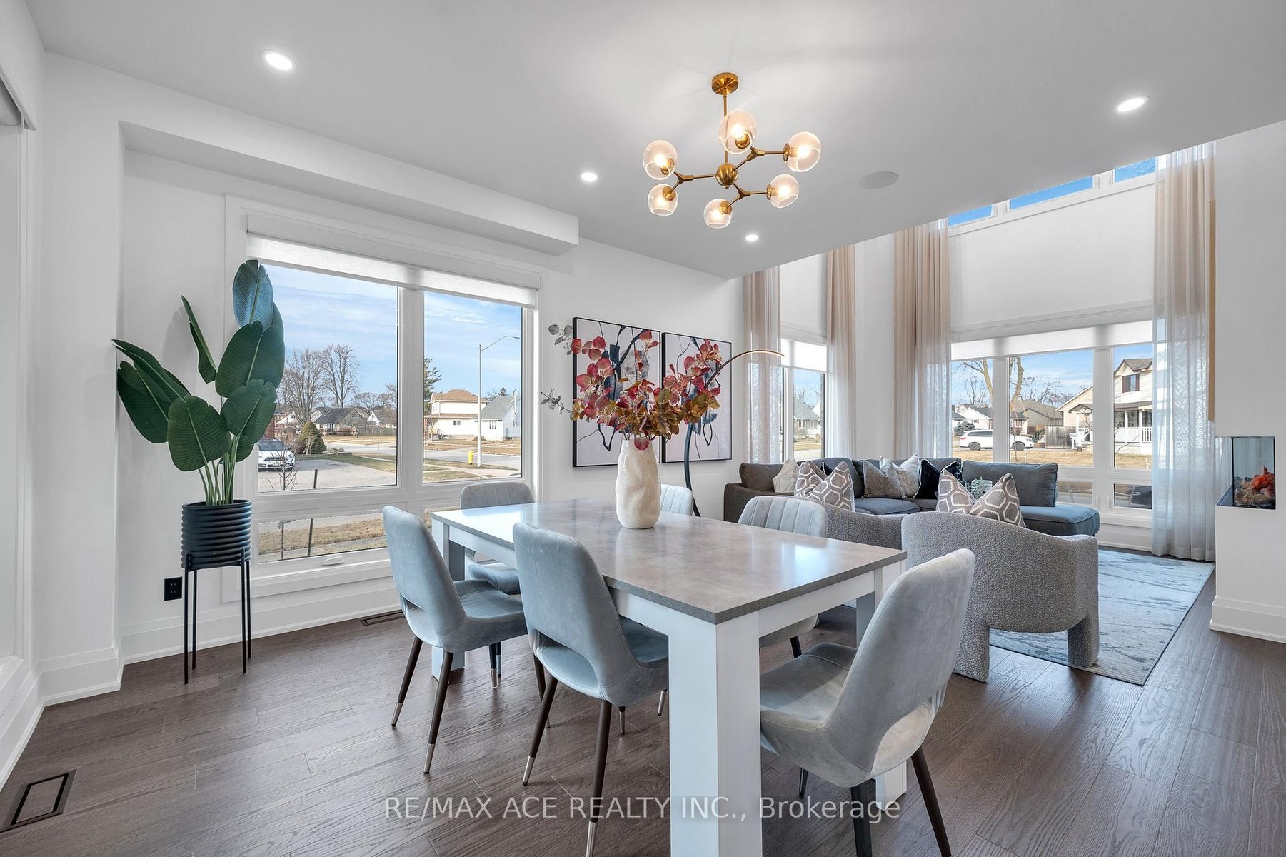 Stunning two-storey custom home in a family-friendly, walkable neighborhood with mature trees. Featuring 4 bedrooms, 3.5 bathrooms, and a Scandinavian-inspired kitchen with a large waterfall quartzite island, induction cooktop, and panel-ready appliances. The open-concept main floor boasts 9-ft ceilings, large windows, hardwood and porcelain flooring, two living areas, dining space, and plenty of custom storage. Upstairs, the primary suite offers a spa-like 6-piece ensuite, plus three additional bedrooms and two more bathrooms. Luxury touches include gold-accented fixtures, motorized curtains, electric fireplace, in-ceiling speakers, a mezzanine, and a garage with Tesla EV charging. Security is advanced with automated entry and multiple cameras. The unfinished basement has a separate entrance, and the large front and backyards are perfect for relaxing. Close to schools, shopping, highways, Ajax GO station, and the waterfront. Modern comfort, style, and convenience-all in one home!