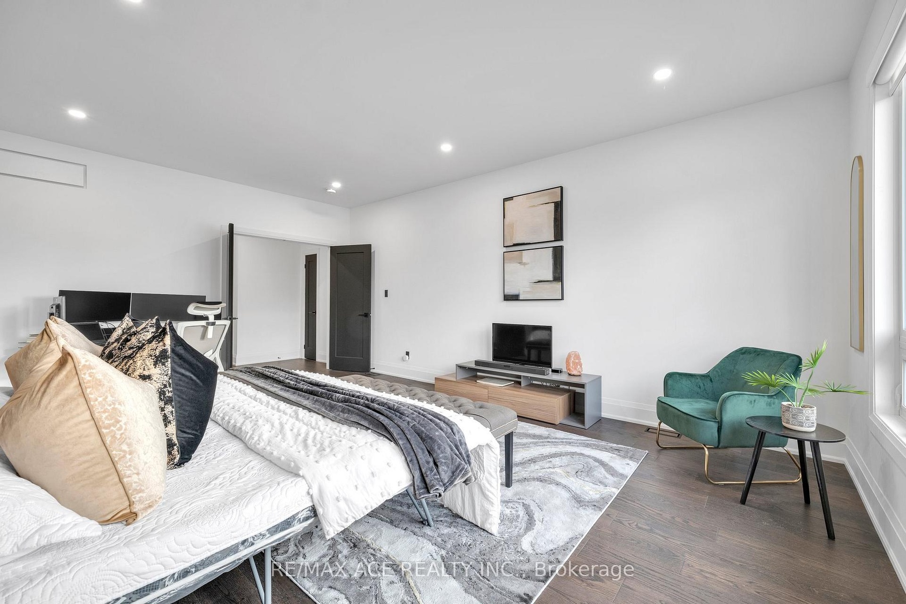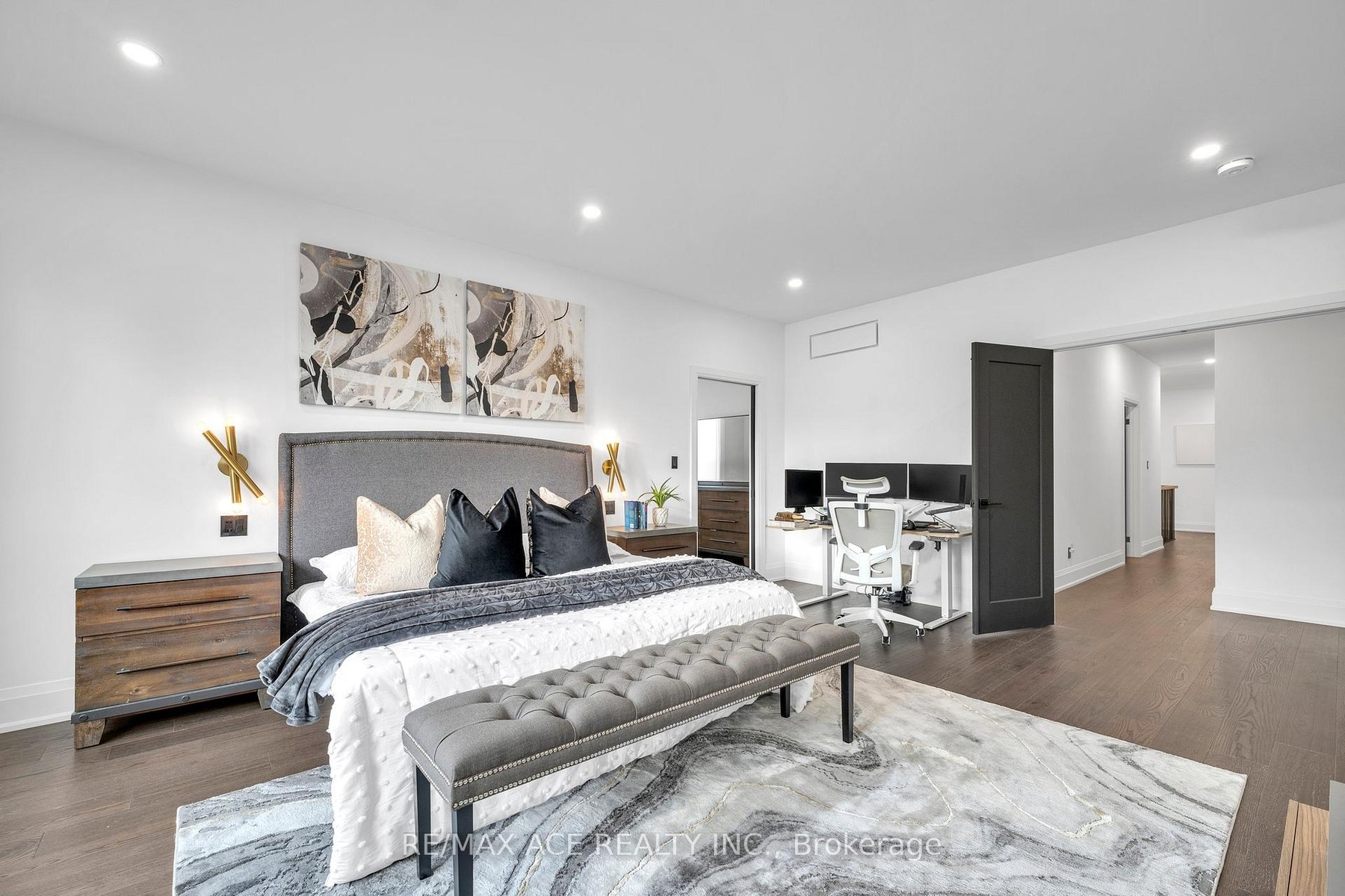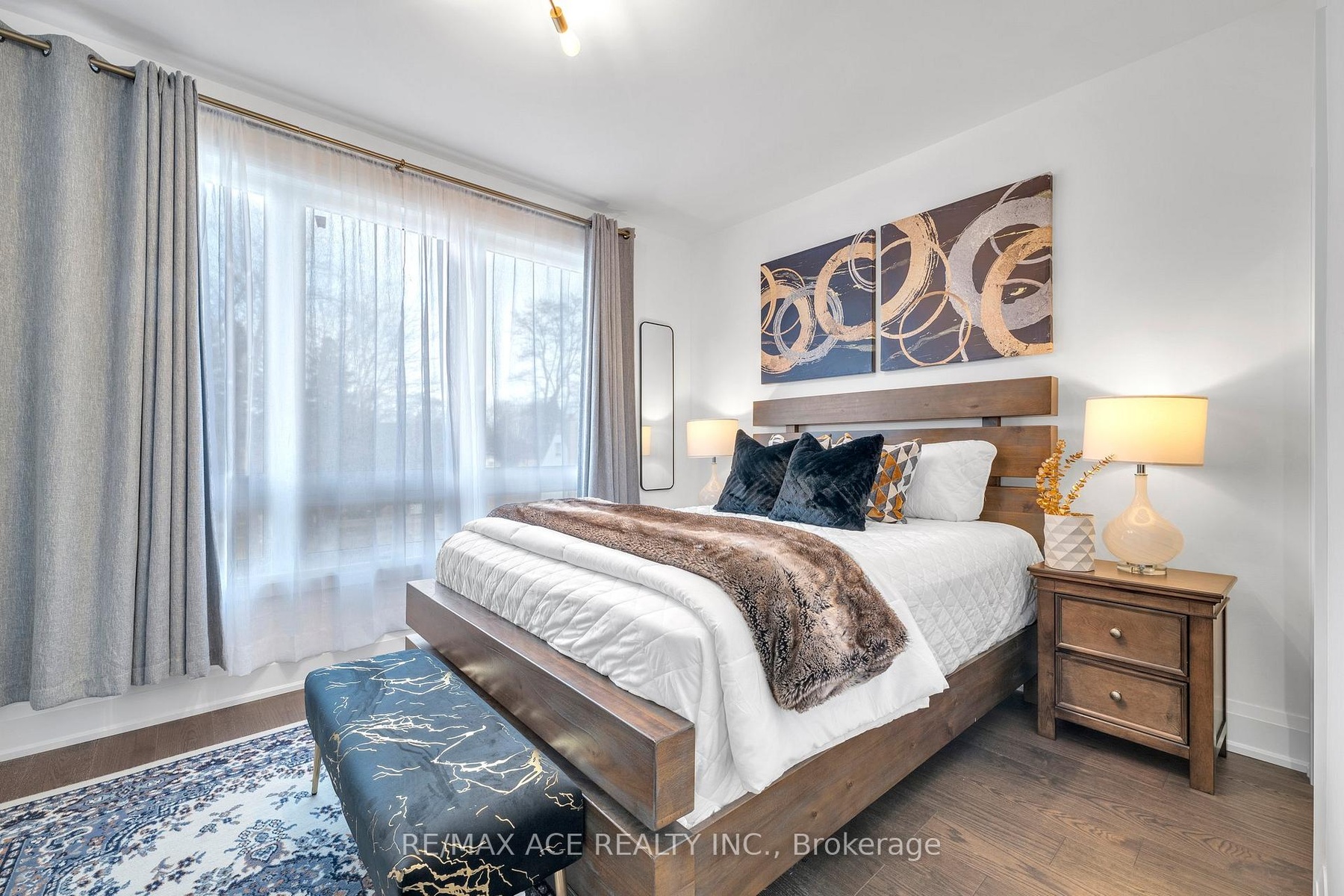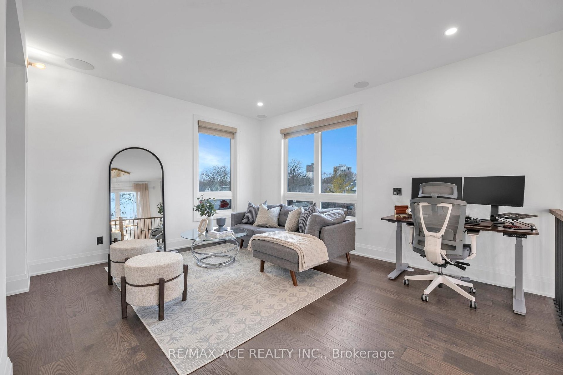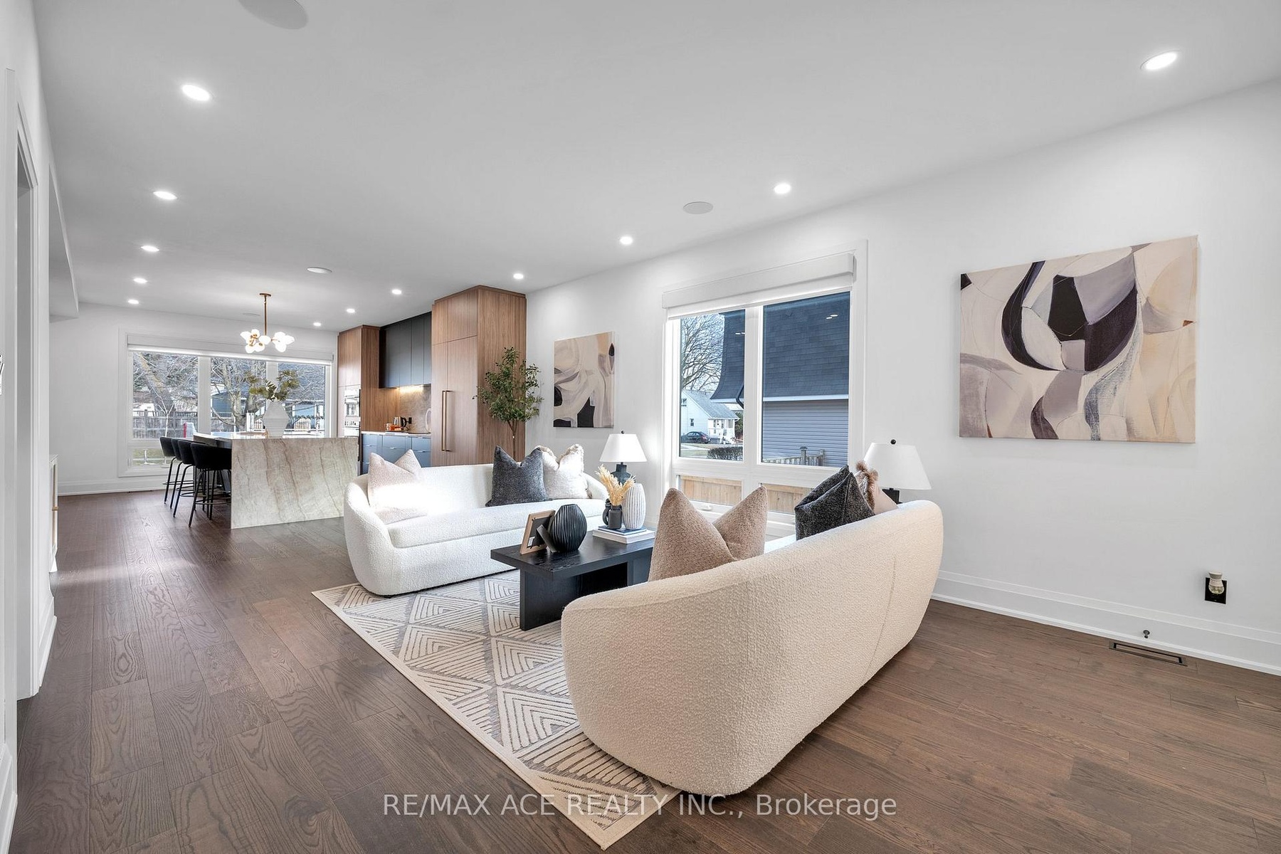 Stunning two-storey custom home in a family-friendly, walkable neighborhood with mature trees. Featuring 4 bedrooms, 3.5 bathrooms, and a Scandinavian-inspired kitchen with a large waterfall quartzite island, induction cooktop, and panel-ready appliances. The open-concept main floor boasts 9-ft ceilings, large windows, hardwood and porcelain flooring, two living areas, dining space, and plenty of custom storage. Upstairs, the primary suite offers a spa-like 6-piece ensuite, plus three additional bedrooms and two more bathrooms. Luxury touches include gold-accented fixtures, motorized curtains, electric fireplace, in-ceiling speakers, a mezzanine, and a garage with Tesla EV charging. Security is advanced with automated entry and multiple cameras. The unfinished basement has a separate entrance, and the large front and backyards are perfect for relaxing. Close to schools, shopping, highways, Ajax GO station, and the waterfront. Modern comfort, style, and convenience-all in one home!