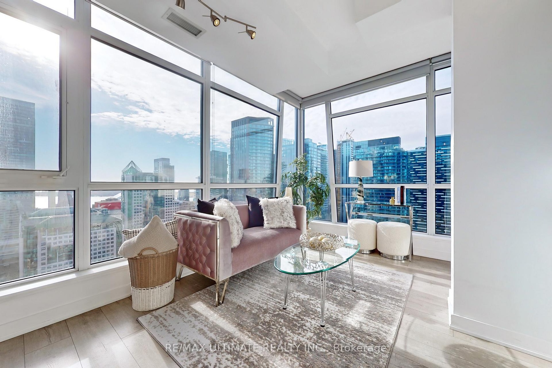 This is **S-T-U-N-N-I-N-G** 2 Bedroom Corner Unit With Breathtaking South and West View. Located in the Trendy King St W Neighbourhood! Next to Shangri La Hotel. Quiet, High Floor & Spacious 750 Sq Ft Unit w/ 52 sq ft Balcony. Floor To Ceiling Windows. Chic Kitchen Finishes and Excellent Appliances, Moveable Centre Island. Master Bedroom With 3Pc Ensuite. Located in the Heart Of The Entertainment District, Steps to Financial District, TTC Subway. . Surrounded By Restaurants, Theatre, Shopping, Sporting Events And Attractions. See Floor Plan Attached. **Best of City Living**