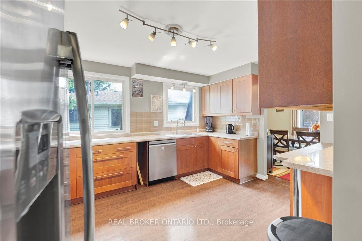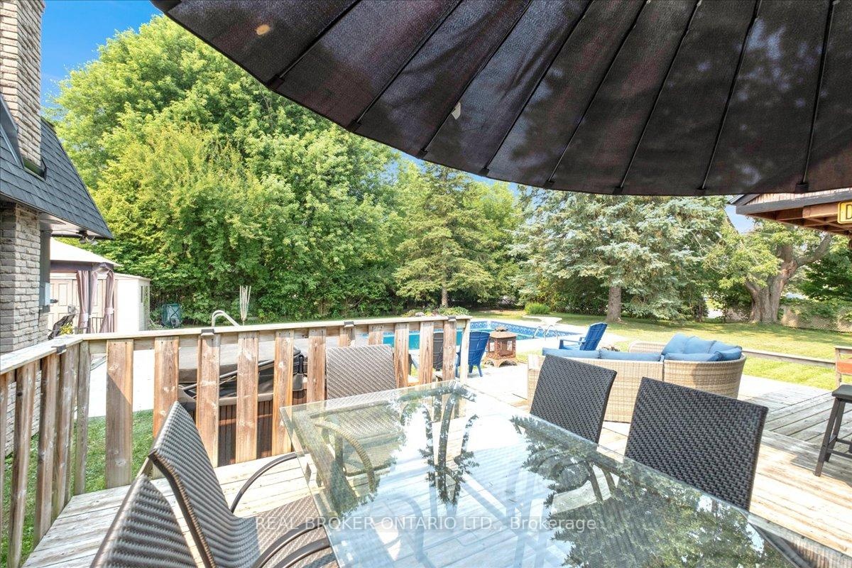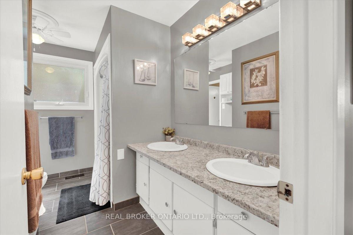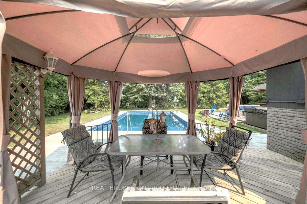 Welcome to one of Brantford's most sought-after family-friendly neighbourhoods. This beautifully maintained raised bungalow offers the perfect blend of convenience, space, and charm. Walk into a spacious foyer with new ceramic flooring, garage access, and a walkout to the backyard. The main floor features a bright and inviting living room with large windows that fill the space with natural light. The adjacent dining room offers a seamless flow, perfect for entertaining or family dinners. The updated kitchen is both functional and stylish, with modern appliances and elegant finishes, making it perfect for home chefs. Down the hall, you'll find three generously sized bedrooms and a 5-piece bathroom. The primary bedroom offers ensuite privilege, providing added comfort and convenience. The fully finished basement is an entertainer's dream, with a large rec room featuring a cozy fireplace and a built-in bar. This space is perfect for movie nights, celebrations, or casual gatherings. Two additional bedrooms and a renovated 3-piece bathroom offer privacy for guests or extended family members. Outside, the home sits on a massive pie-shaped lot that serves as a true backyard oasis. Whether lounging by the pool, soaking in the hot tub, enjoying drinks at the tiki bar, or hosting summer BBQs in the spacious seating areas, this yard is perfect for making memories. Significant updates include: new concrete around the pool, a new pool liner (2025), new chlorinator, resurfaced driveway, roof replaced in 2024, and a new garage door (2022). The home also features an updated kitchen, updated windows, updated flooring in four of the five bedrooms, updated lighting throughout, updated ceramics in the hallway and bathrooms, and updated toilets in both bathrooms. Additional mechanical upgrades include an updated air conditioner, water softener, and hot water tank. Perfectly located on a quiet court, close to parks and all amenities.