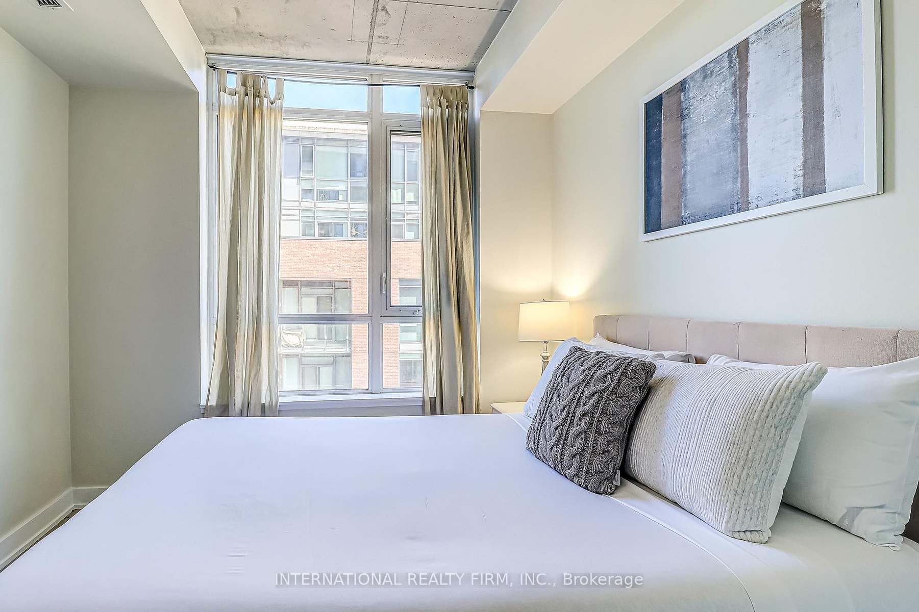 Modern 1-bedroom furnished condo at the Carnaby Lofts in Queen West featuring floor-to-ceiling windows, a sleek kitchen with built-in appliances, in-suite laundry, and a private balcony. Enjoy top amenities including a fitness centre and rooftop terrace,, all while being steps from Metro grocery, LCBO, cafes, restaurants, TTC, and the vibrant shops of Queen Street West.
