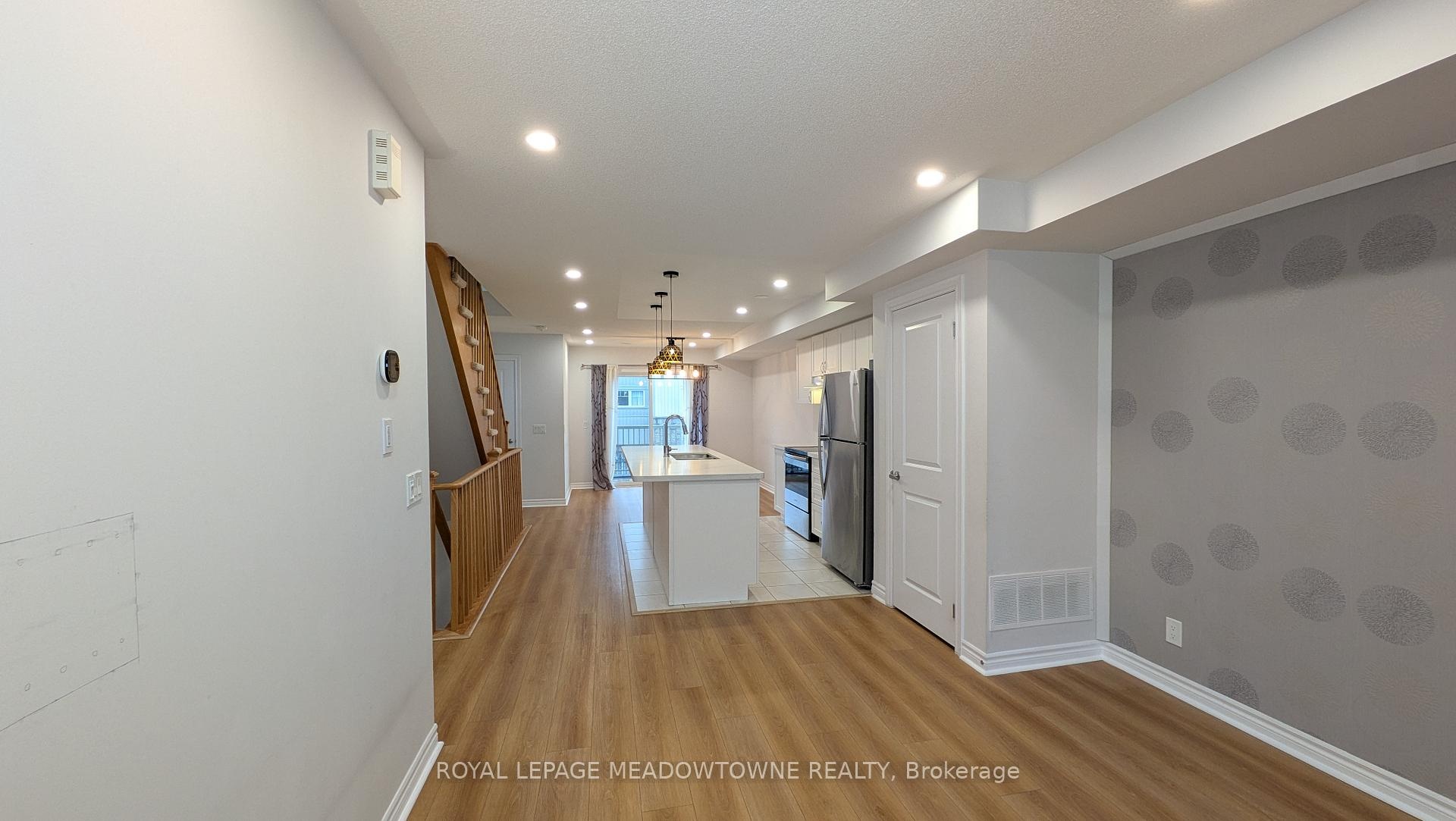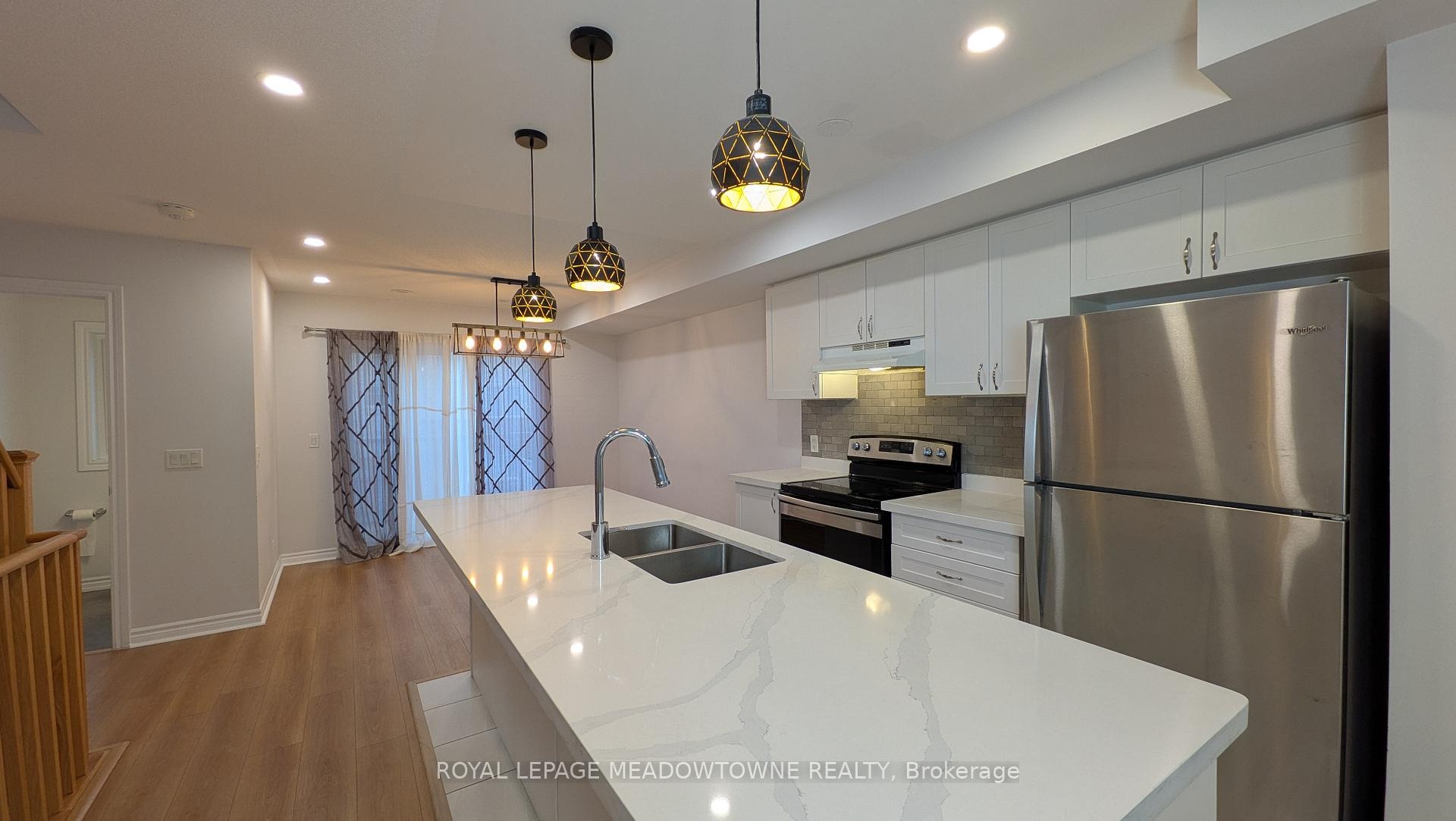 Welcome to this bright and modern end-unit condo townhouse filled with natural light. Perfectly located just minutes from Durham College, Ontario Tech University, and the 407 East Extension, this home offers both comfort and convenience. The main floor features and open-concept layout with a large kitchen island, stainless steel appliances, a two piece bathroom and a walk out to a private patio. Upstairs are two spacious bedrooms, including a primary with a walk-in closet and second bedroom with double closets, plus a separate laundry room with a stacked washer and dryer. With direct access from the built-in garage, this home is move-in ready.