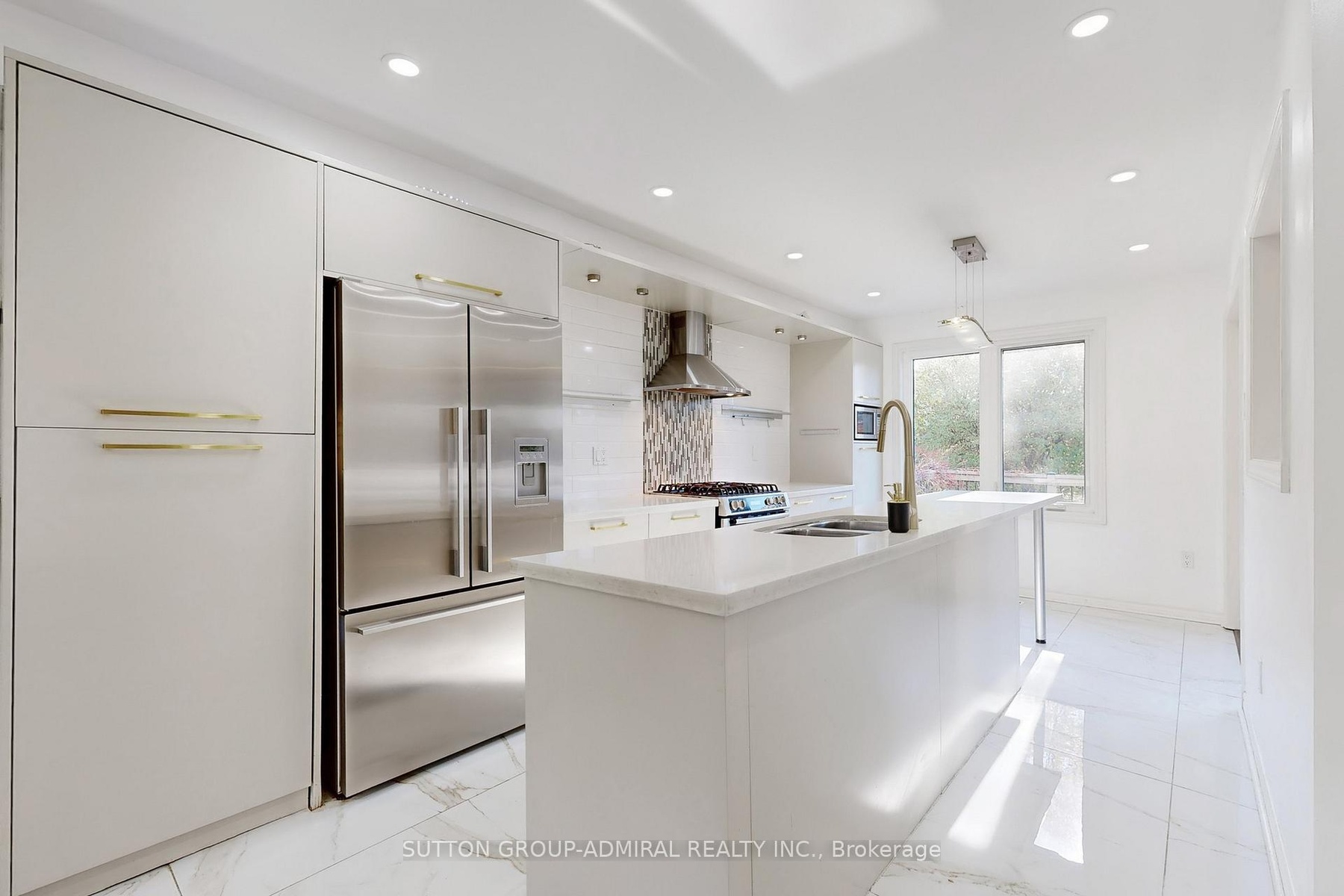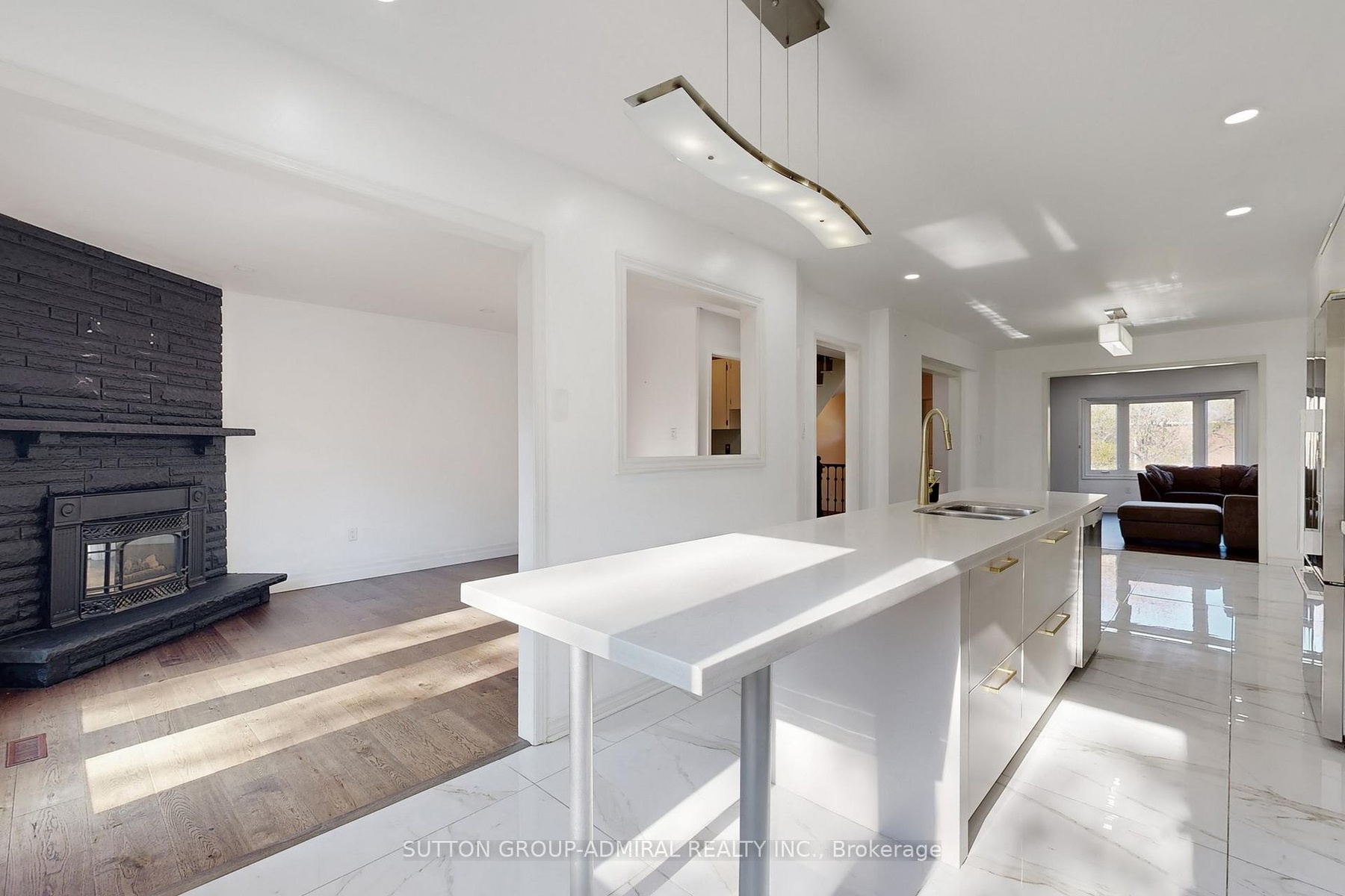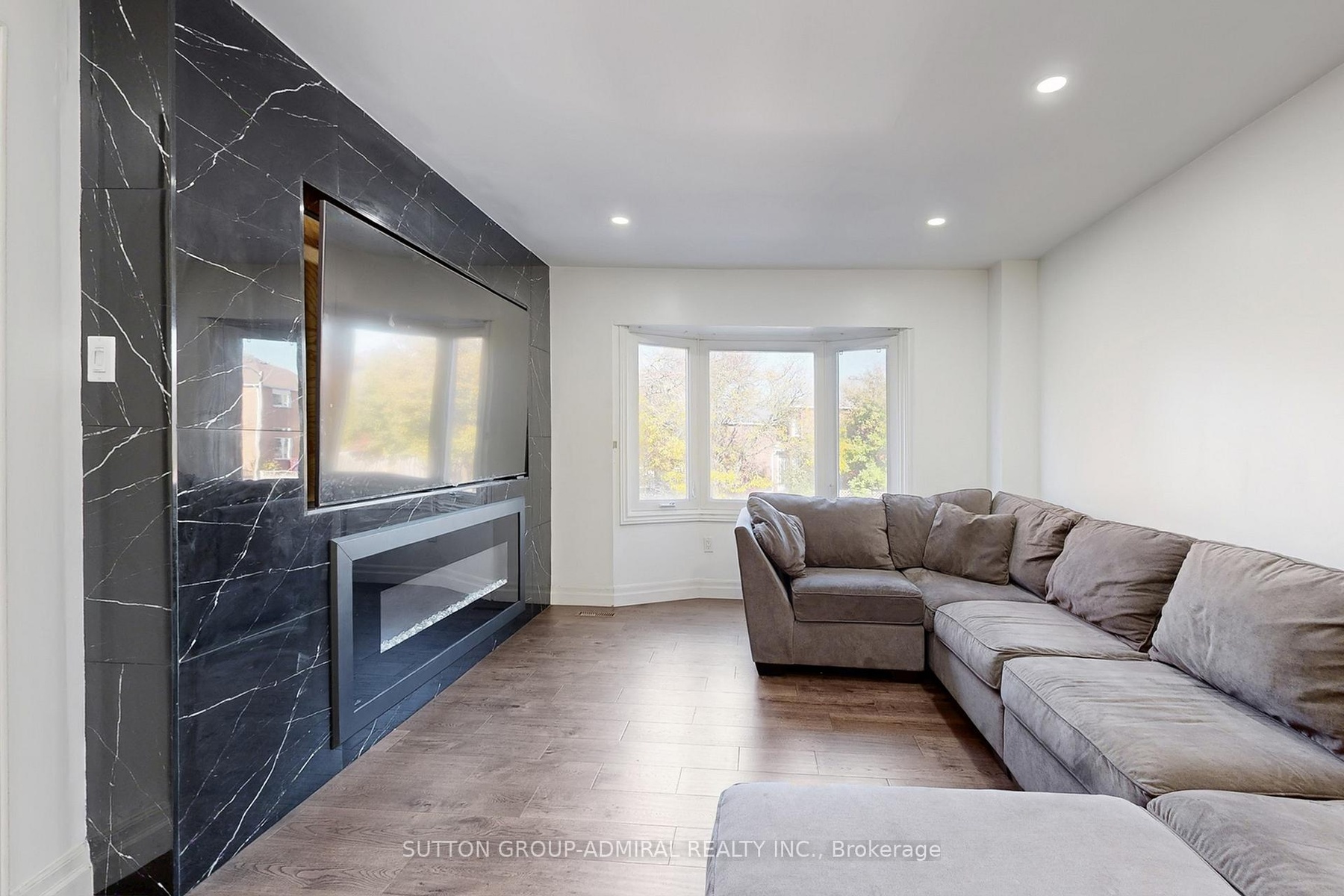 Beautifully renovated home with exceptional attention to detail and modern finishes throughout. Features a large chef's kitchen with quartz countertops, gas stove, stainless steel appliances, and a spacious centre island with breakfast seating. Bright and open main floor layout with pot lights, smooth flow, and a stunning entertainment wall with a gorgeous electric fireplace. Walkout to a large wood deck overlooking a huge, fully fenced backyard - perfect for relaxing or entertaining. Entire exterior has been freshly painted, giving the home outstanding curb appeal. Generous bedrooms and updated bathroom upstairs, plus a spacious basement with plenty of room and a 2pc bathroom. Convenient location just steps to TTC and Steeles, and easy access to major highways. A stylish, move-in-ready home that truly stands out!