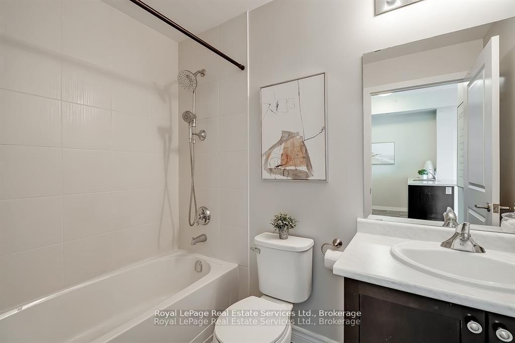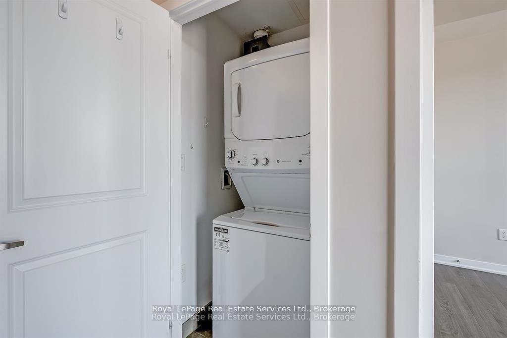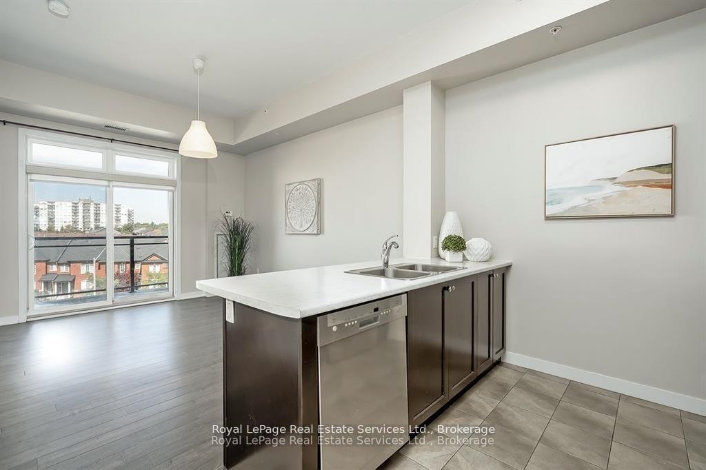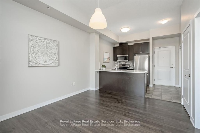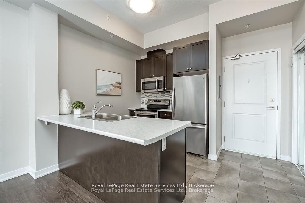 Stunning Penthouse in the Trendy Vibe Condos! Stylish 1-bedroom, 1-bath condo featuring airy 10-ft ceilings and a bright, open-concept layout. The modern kitchen boasts stainless steel appliances, a sleek backsplash, and a breakfast barperfect for casual dining or entertaining. The spacious living room opens to a private balcony, while the primary bedroom offers a generous closet. Enjoy a 4-piece main bath and the convenience of in-suite laundry with newer washer & dryer. Includes 1 underground parking spot and 1 locker. Residents enjoy premium amenities: fitness centre, party/meeting room, theatre room, rooftop patio, and ample visitor parking. Located minutes from major highways, GO Transit, restaurants, shopping, and more- ideal for young professionals, executives, or downsizers!