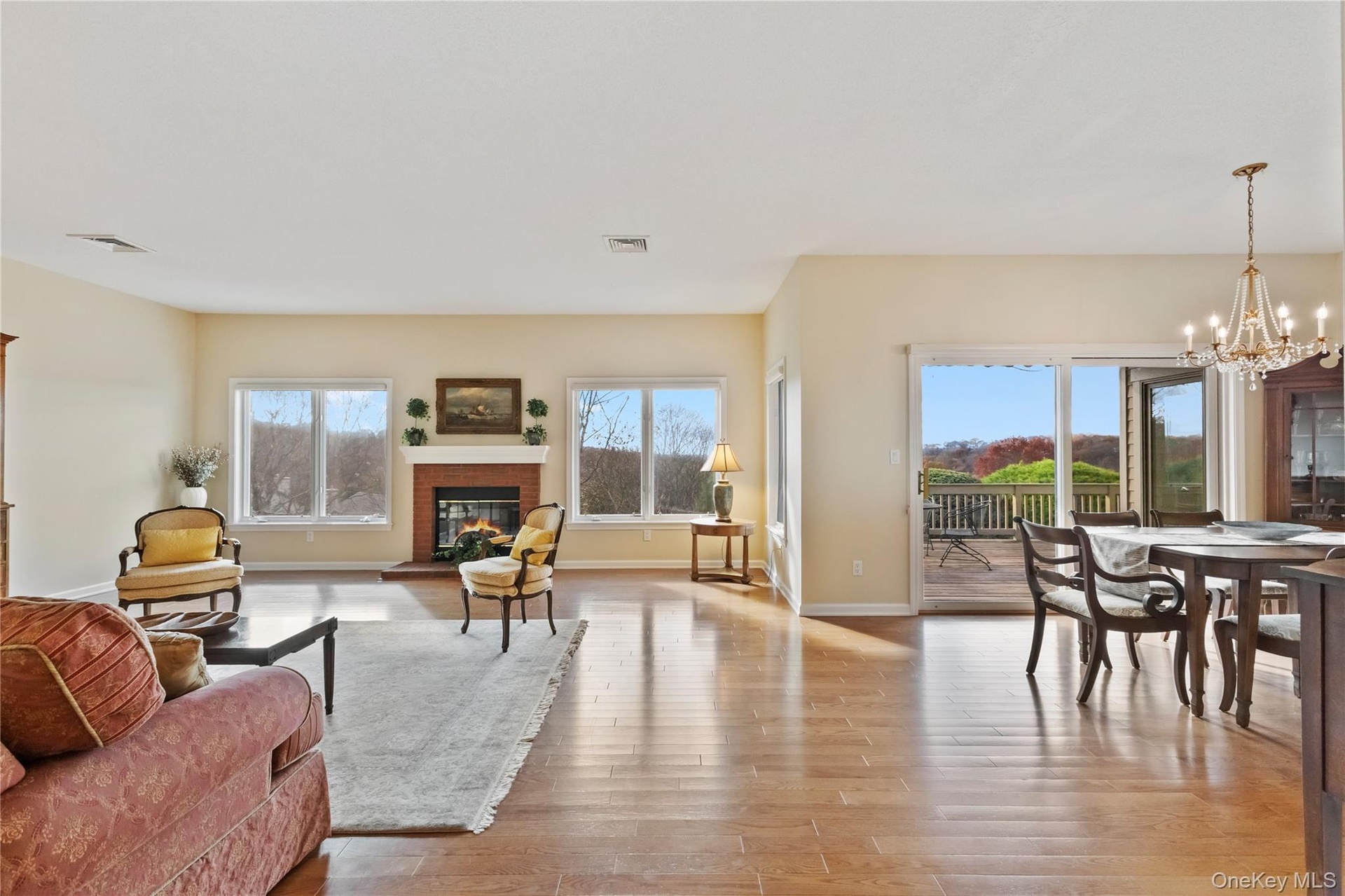 Enjoy panoramic birds-eye views and the most spectacular sunsets from one of the highest points in Heritage Hills! This desirable one level Sherman offers wonderful space for everyday enjoyment and holiday entertaining! Inside the unit you will find a spacious eat-in-kitchen with maple cabinetry and stainless steel appliances, large bedrooms, well appointed bathrooms, full dining room, living room with gas fireplace, oversized deck (with automatic awning) overlooking tree tops and distant mountains, and hardwood floors throughout! This sunfilled home has been lovingly maintained and tastefully updated over the years, and it is meticulous! Some recent updates include: refrigerator 2024; dishwasher 2022; water heater 2021; automatic generator 2019. Please note that this unit has an automatic generator, gas heat, gas stove and gas fireplace! Monthly fees consist of Condo 22 HOA $539.44 + Special Assessment (roofs) $108.02 + Society $225.47 = Total $872.93. Additionally, buyers pay sewer ($48/mo) and water (based on usage, approximately $40/mo). Heritage Hills community offers resort-style, maintenance-free living. It features wide open green spaces with extensive landscaping, beautiful gardens, tranquil ponds and scenic nature trails, and include fabulous amenities such as multiple swimming pools, tennis courts, pickleball courts, bocce courts, fully equipped fitness center, indoor basketball court, clubhouse with year-round activities, 24-hr security (with EMTs), shuttle to train, playground, and walking trails! In addition, Somers National Golf Club (separate membership is required) offers all amenities of the finest courses, including relaxing dining with panoramic views from The Grille at Somers Pointe (restaurant is open to the public). All of it in a convenient location just minutes away from highways, 2 Metro North MTA train stations with direct trains to NYC/Grand Central Terminal, town center, shops, cafes, restaurants, schools, houses of worship and post office! Schedule your appointment today, fall in love tomorrow and enjoy the Heritage Hills lifestyle for years to come!
