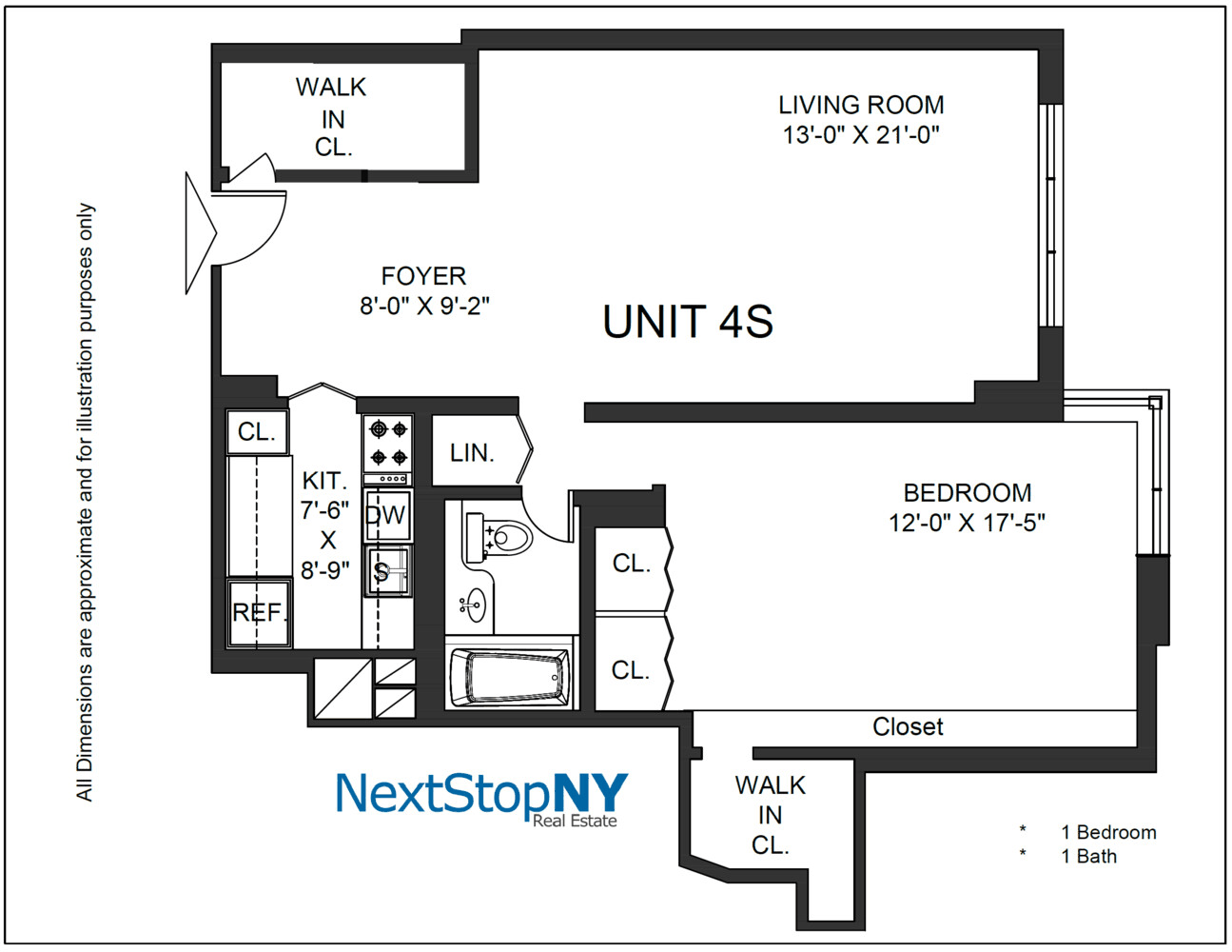 An incredibly large, one bedroom apartment, featuring 5 spacious closets, 3 of which are a walk-ins. The apartment is highlighted by parquet floors and a modern renovated kitchen. The primary bedroom is large enough for a king-size bed with plenty of room for a work space. The galley kitchen has full-size appliances, including gas stove, dishwasher, and microwave. West and Southwest exposures.