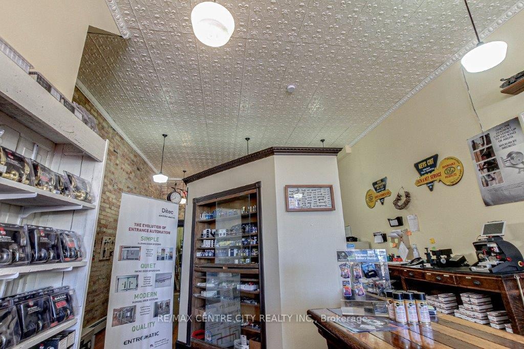 FOR LEASE - a 960 sq. ft. retail space in the heart of downtown! This high-profile storefront offers unbeatable exposure with constant pedestrian and vehicle traffic along busy Talbot Street. Surrounded by established shops, restaurants, and local favourites, this location provides a vibrant setting for your business to thrive. Featuring exceptional curb appeal, this space boasts large front display windows, soaring ceilings, exposed brick walls, and wide-plank wood floors-a perfect blend of modern character and historic charm. Enjoy convenient city parking right out front and a municipal lot directly behind the building, making access easy for customers and staff. The property includes secure front and rear entrances and an unfinished basement, ideal for additional storage or workspace. With the C2 zoning, this unit offers versatile opportunities for retail, office, studio, café, or other commercial uses. If you're looking for a beautiful, character-filled space with maximum downtown visibility, this 960 sq. ft. gem is ready to welcome your business!