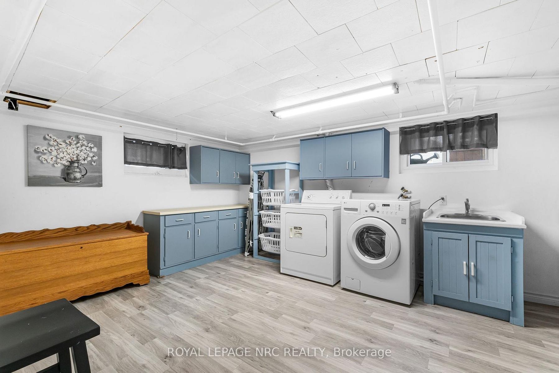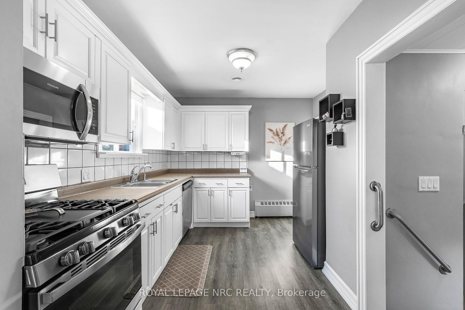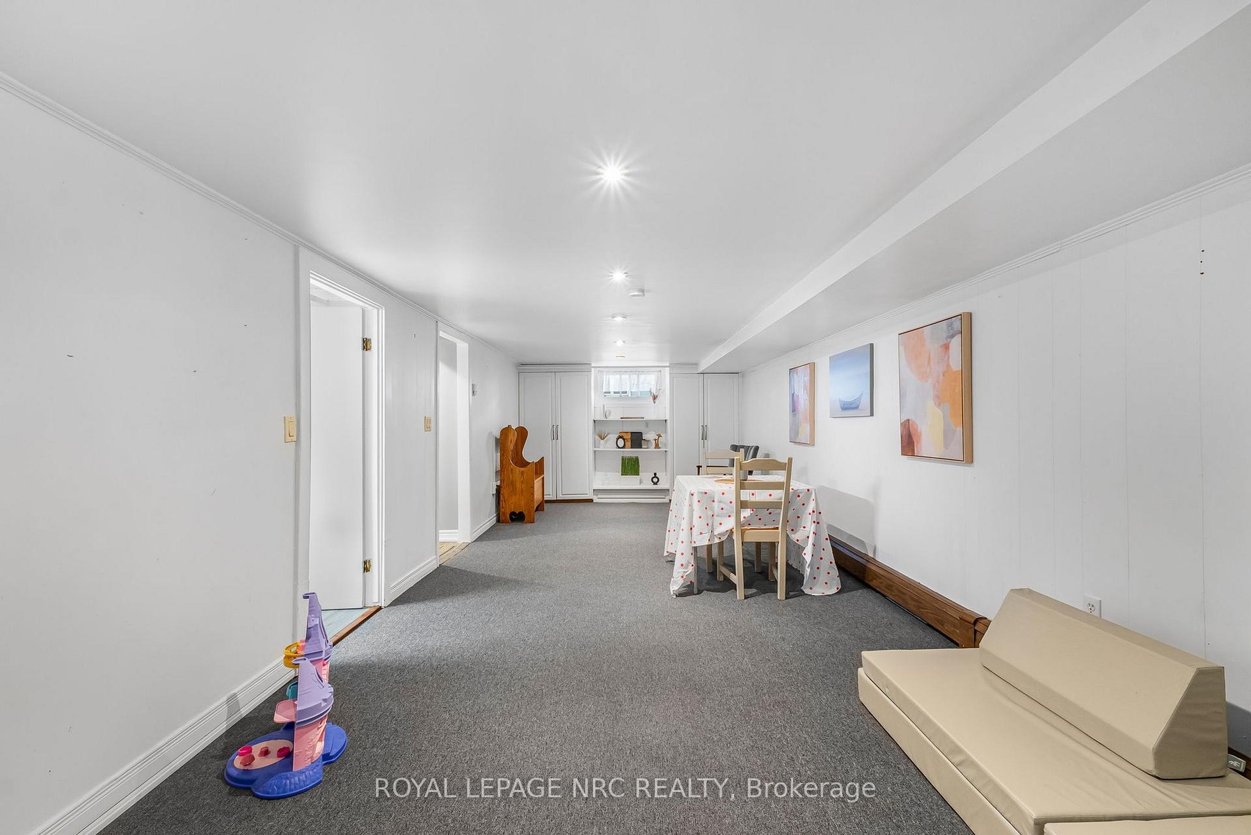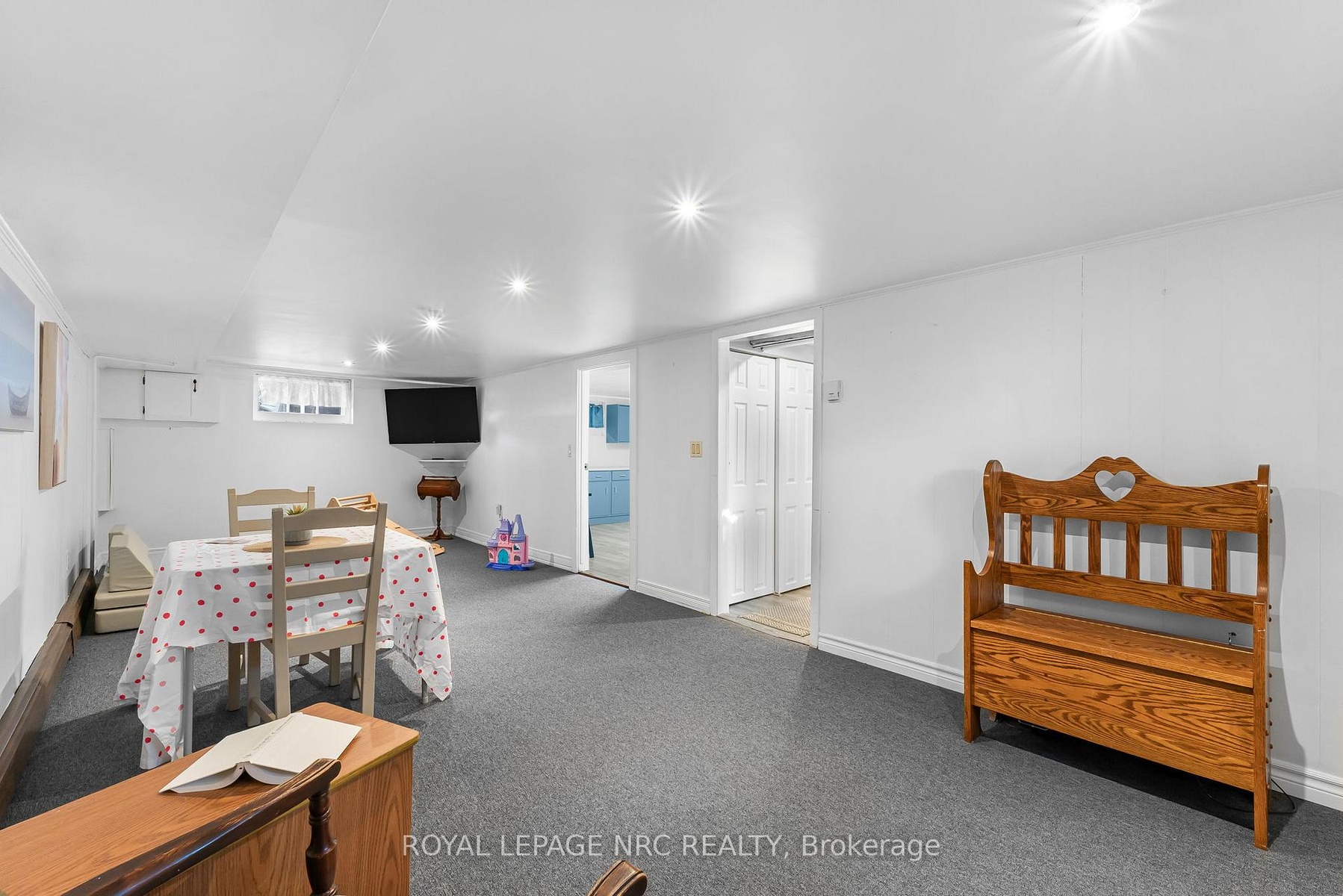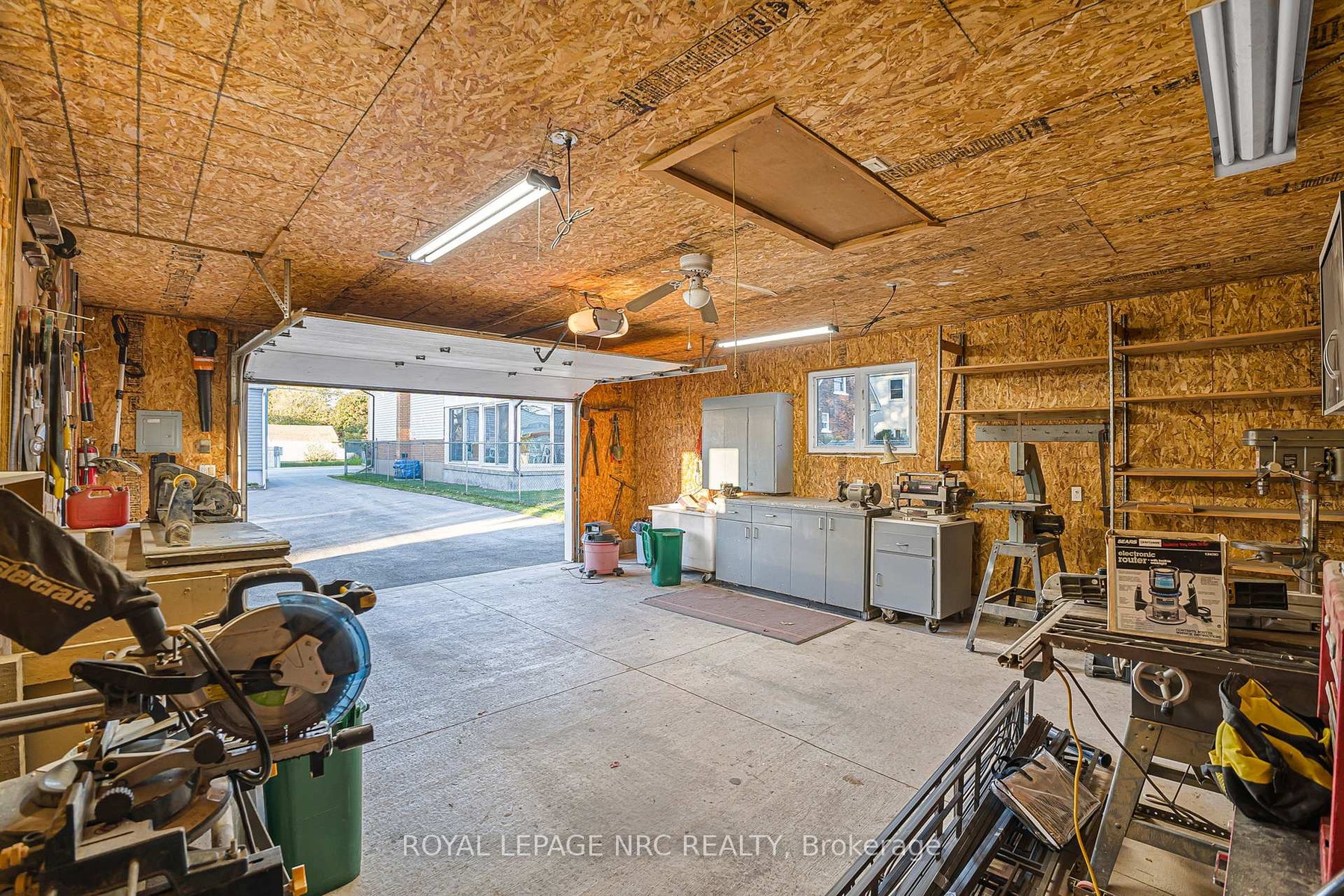 This charming bungalow truly packs a big punch! Lovingly cared for over the years, it radiates pride of ownership from the moment you arrive. Move-in ready, this home features 2 bedrooms and 1 bathroom, with large windows throughout the main floor that fill the space with beautiful natural light. The family room is warm and inviting - perfect for cozy movie nights, while the kitchen offers plenty of cupboard space and flows seamlessly into the dining area. Downstairs, the finished basement includes a spacious family room, a generous size laundry room with ample storage, and an additional storage room. Walk into the backyard from the patio doors off the dining area, that open to your covered deck, and private backyard overlooking the peaceful green space of Friends Over 55. Outside, you'll love the detached oversized garage with hydro, offering over 430 sq. ft., ideal for hobbies and projects, or storing your motorcycle and vehicles. Bursting with character, curb appeal, and lovely gardens, this home is as cute as a button and welcomes you the moment you walk through the door.
