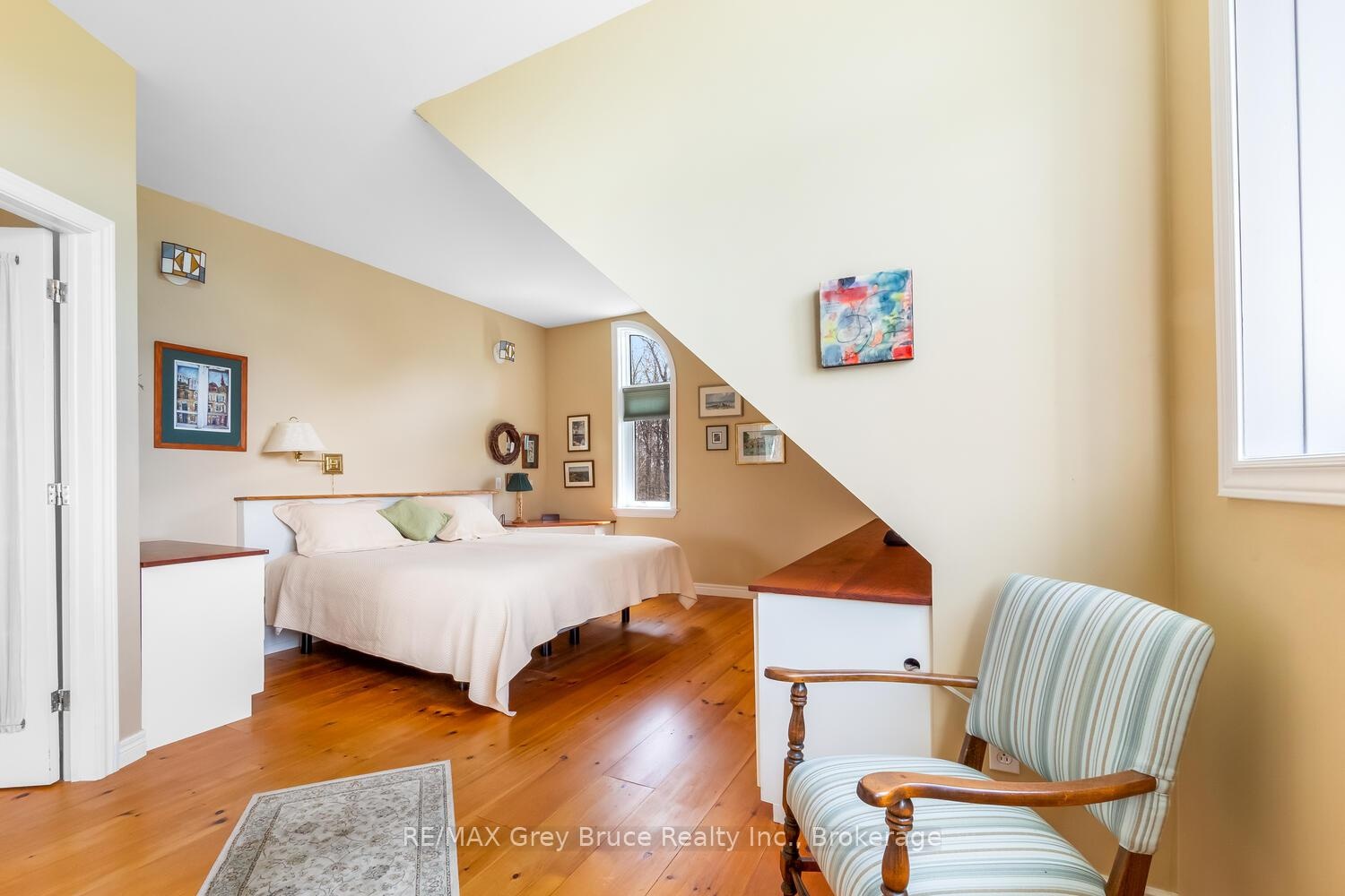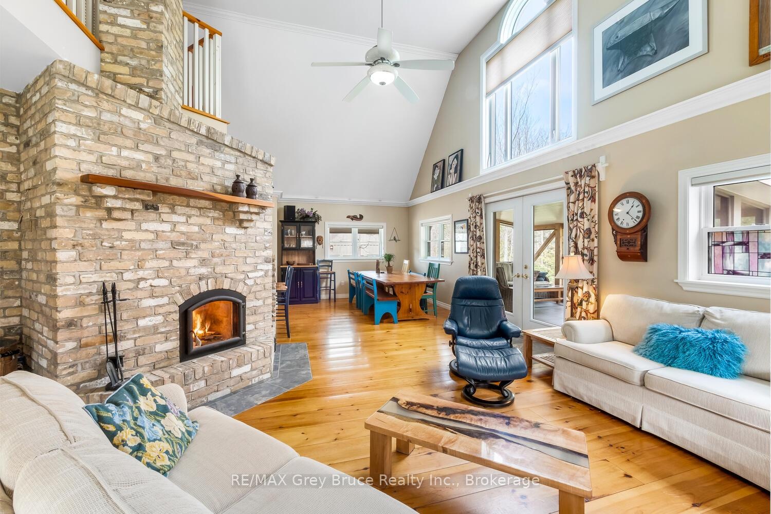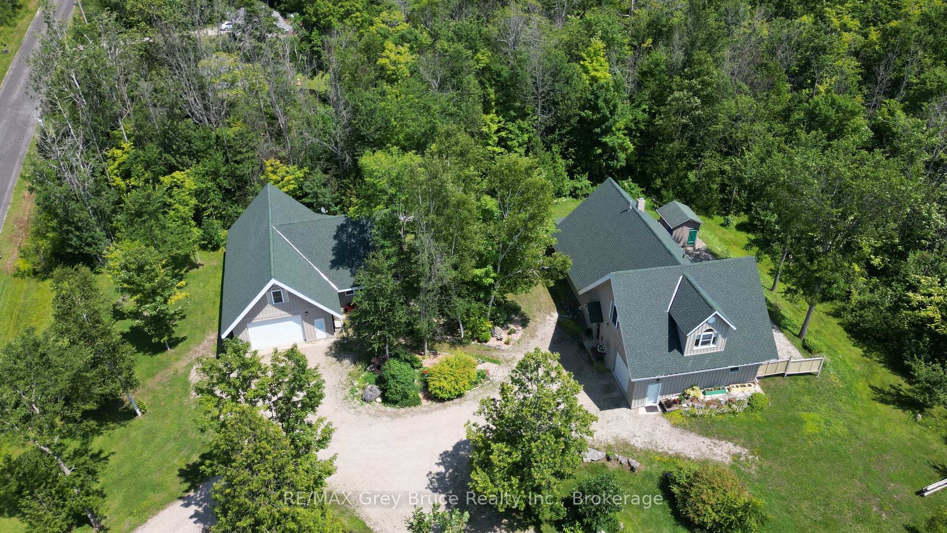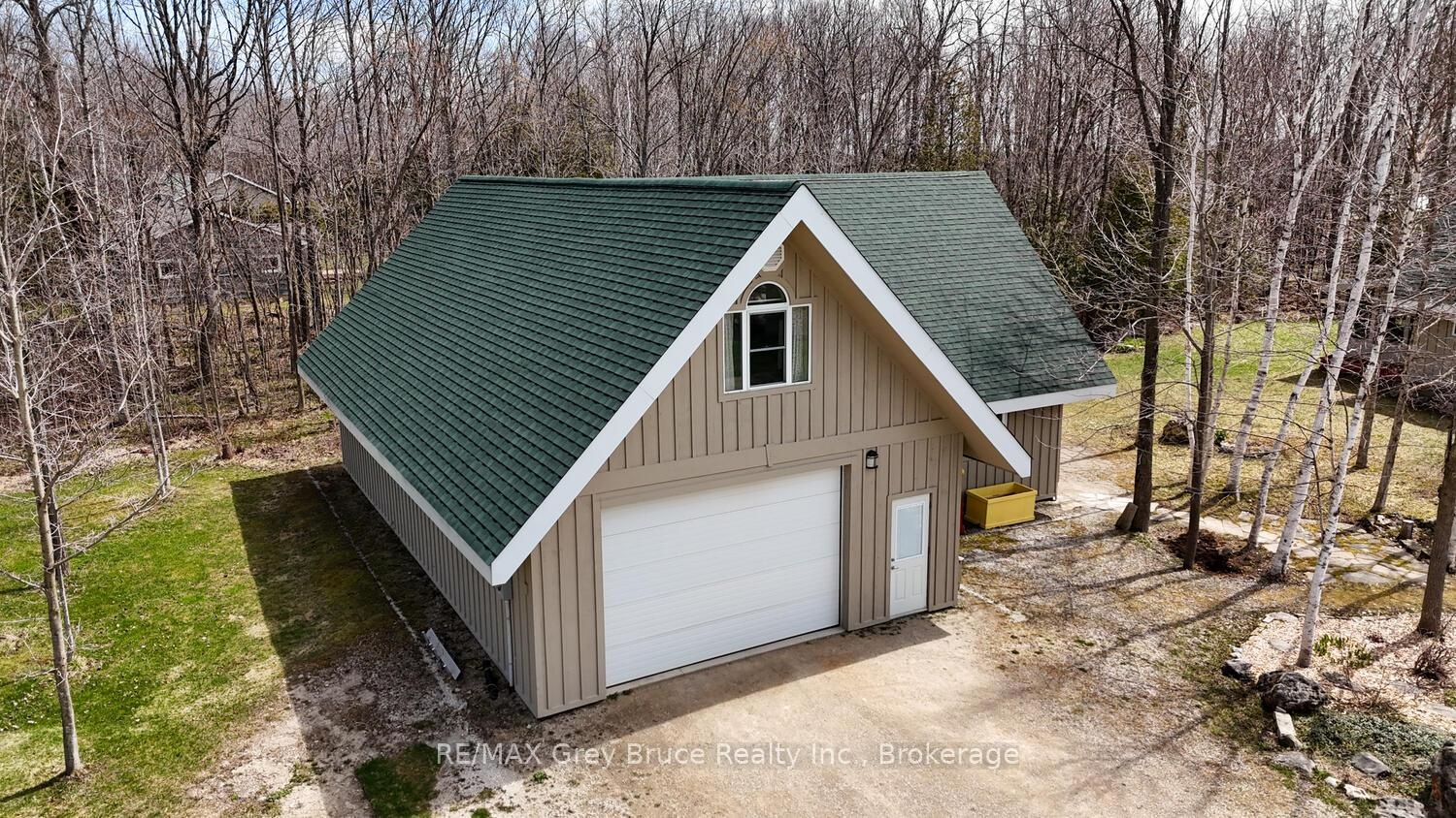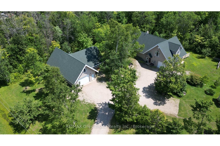 Welcome to 20 Maple Drive in Miller Lake! This lovely and immaculate custom built home is situated on a large lot measuring 166 feet wide x 196 feet deep. Home was built by the original owner & retiring contractor & boasts of character and charm throughout. Inside the home on the main floor, you'll find a uniquely designed open concept with a living area, dining, and kitchen. The kitchen has an island counter with plenty of storage. If you enjoy baking, preparing meals and entertaining guests, you'll appreciate the large gourmet cook stove in the kitchen! The living area has a high efficiency woodstove insert that will keep you warm and toasty on those frosty winter days. There is also a bedroom, a three piece bathroom, laundry closet, & an enclosed sunporch/room. The second level has the primary bedroom, a four piece bathroom, and reading nook/study. There is also an open loft that serves as extra sleepovers, office space and or exercise area. Vaulted ceilings. Beautiful wood floors throughout and with in-floor heat. There is an attached garage with in-floor heating that also serves as additional entertainment space. The owners have used it for family and friends' gatherings. A second building has both an additional 24 X 48 garage with a 2-piece bathroom. There are 3 rooms above the garage that are heated and insulated, and have been used as bedrooms. There is also a 24 x 20 workshop in this second building. It has underfloor heating, and ample power for woodworking machinery. At the end of the day, enjoy a relaxing soak in the hot tub! Property is nicely landscaped. Home shows very well and has been meticulously cared for. Property is located on a year round paved municipal road. Rural services are available such as garbage and recycling pickup. Roads are plowed during winter time. Centrally located between Lion's Head and Tobermory for grocery shopping & other amenities. There is a good public access to Miller Lake just a short distance away. Taxes: $3897.00.