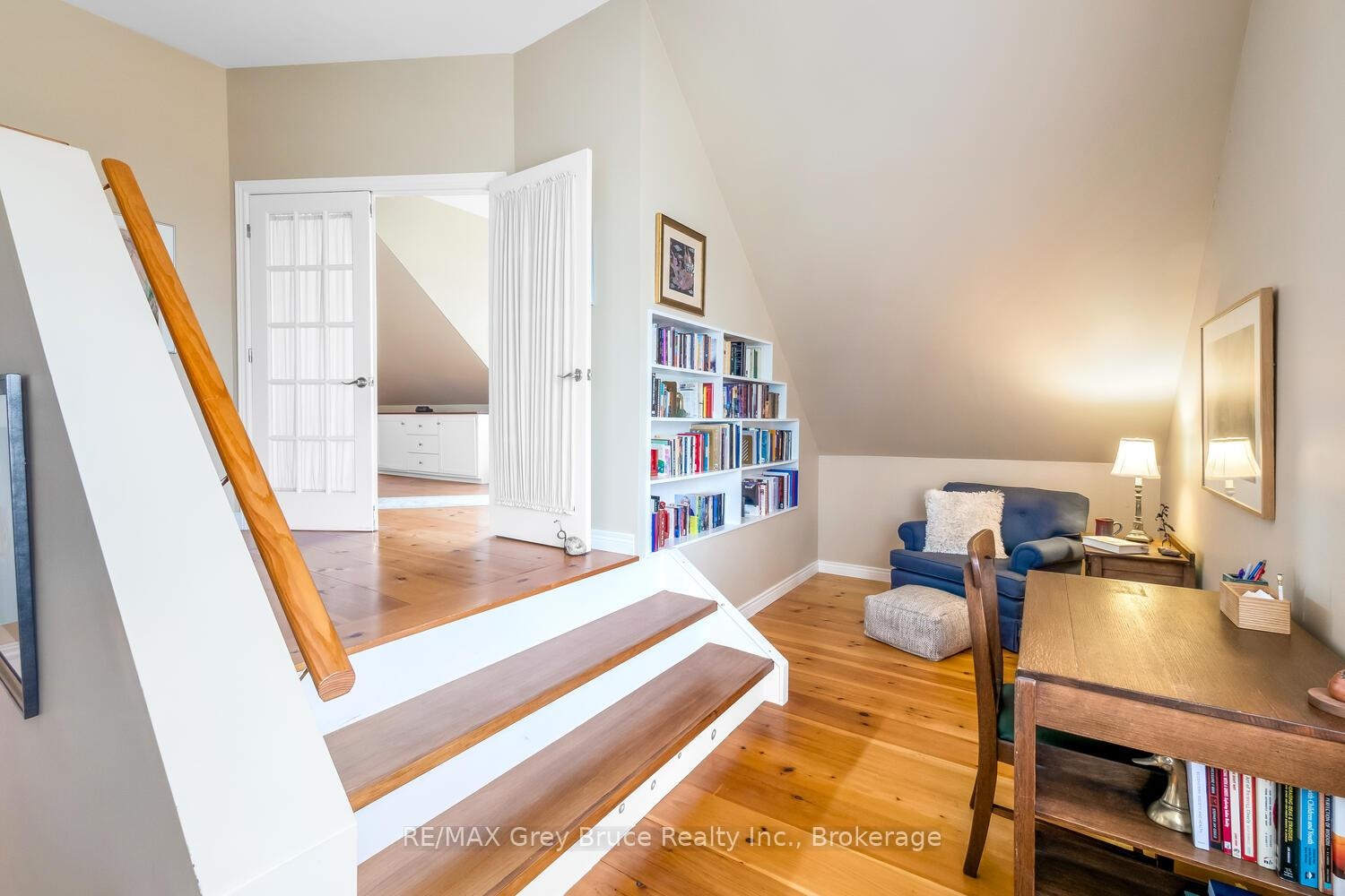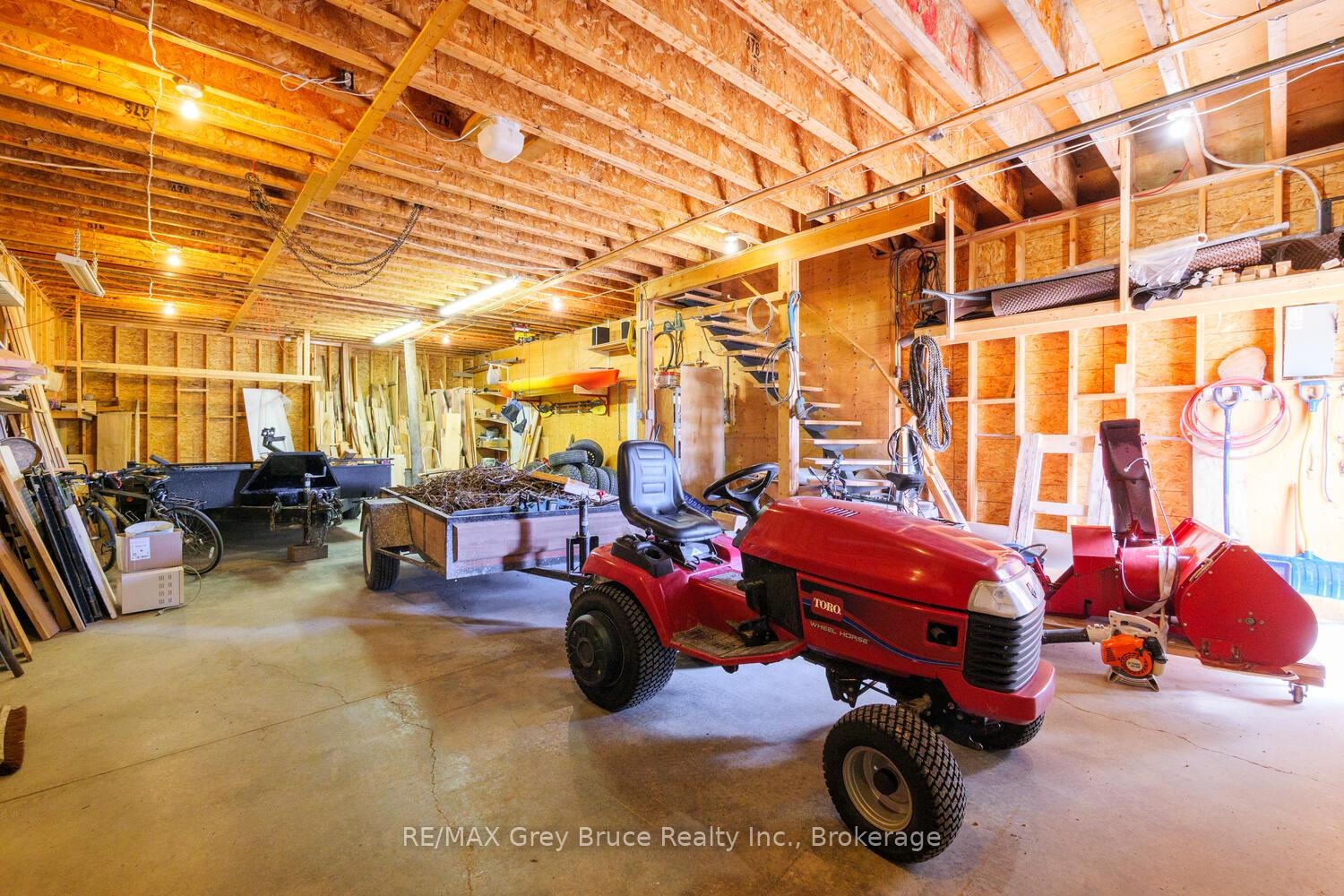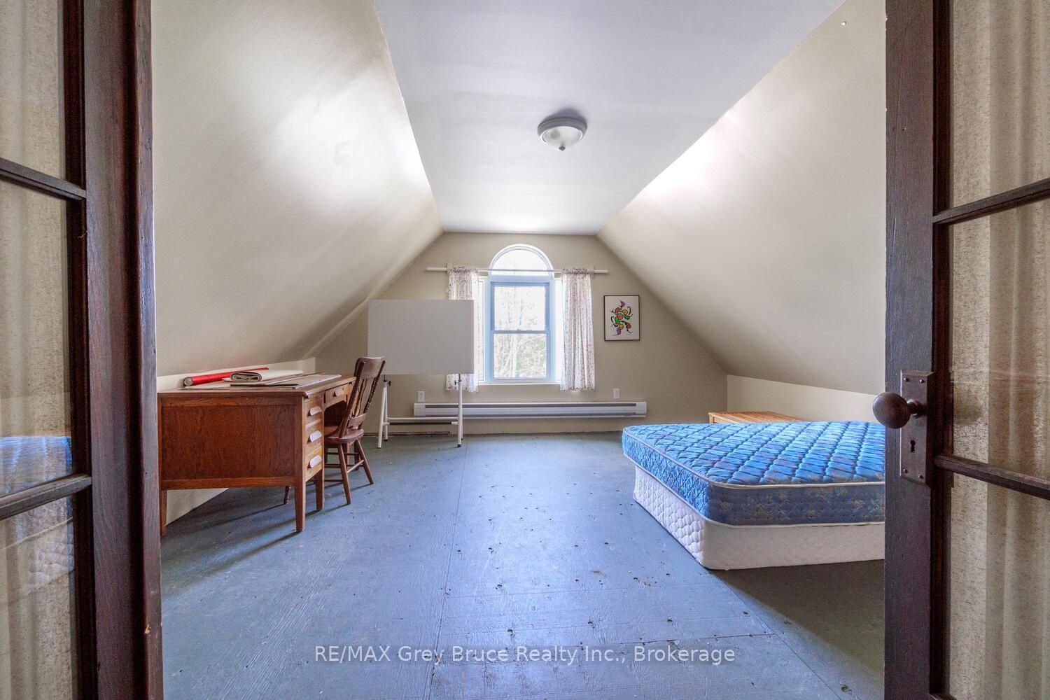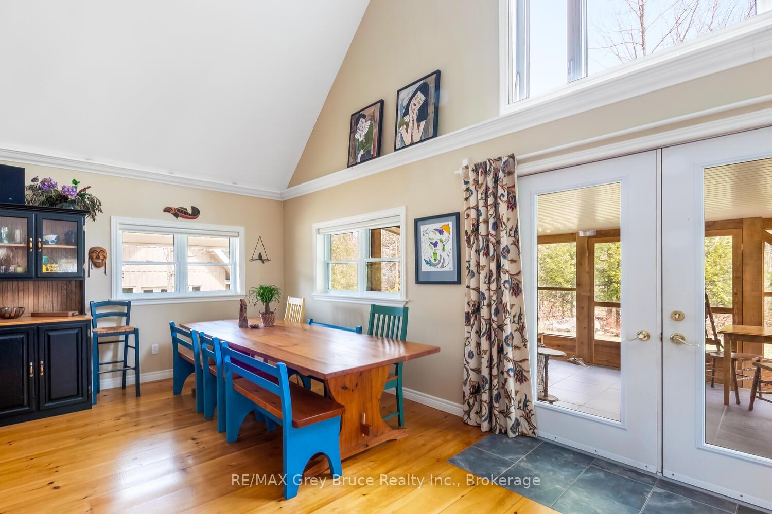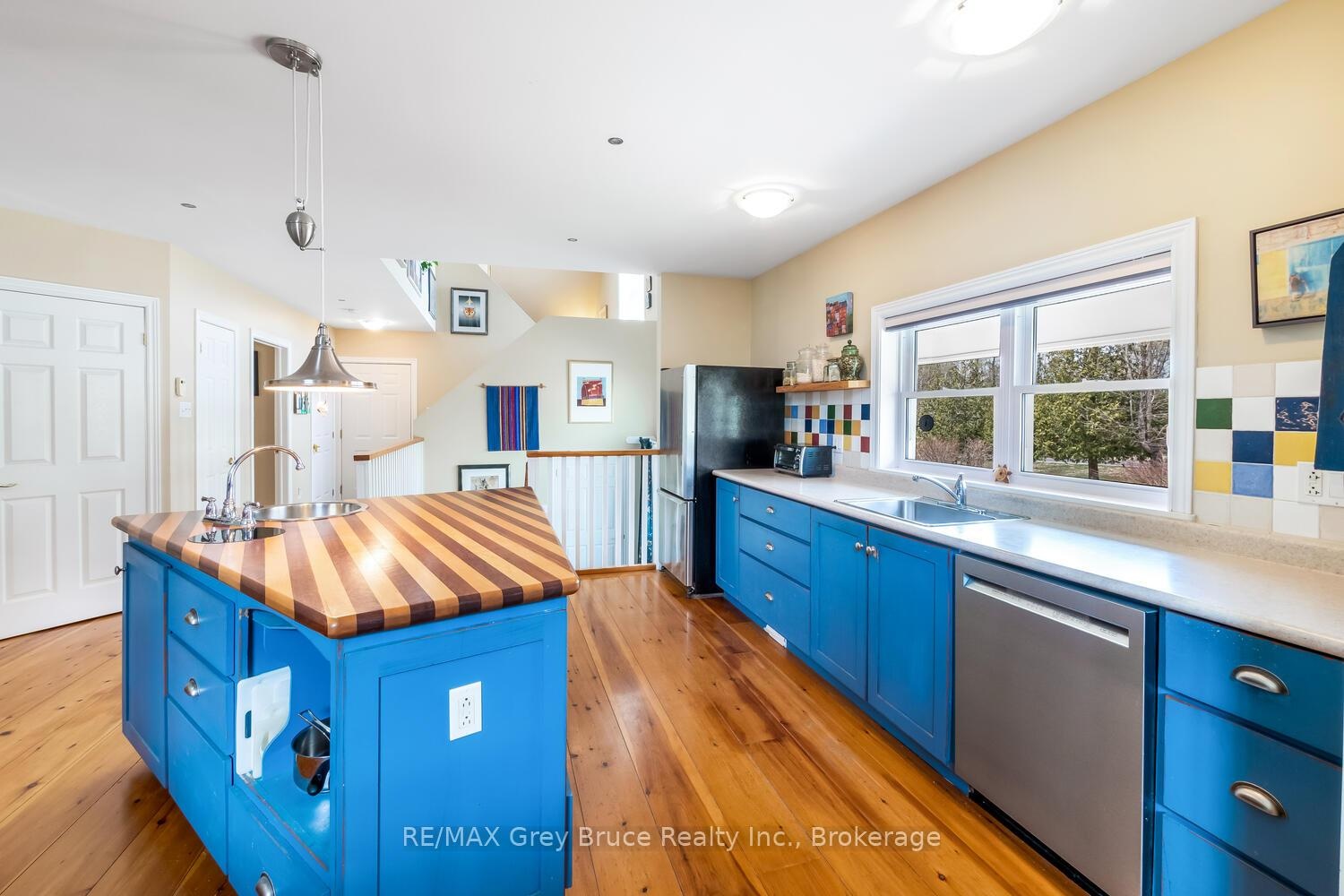 Welcome to 20 Maple Drive in Miller Lake! This lovely and immaculate custom built home is situated on a large lot measuring 166 feet wide x 196 feet deep. Home was built by the original owner & retiring contractor & boasts of character and charm throughout. Inside the home on the main floor, you'll find a uniquely designed open concept with a living area, dining, and kitchen. The kitchen has an island counter with plenty of storage. If you enjoy baking, preparing meals and entertaining guests, you'll appreciate the large gourmet cook stove in the kitchen! The living area has a high efficiency woodstove insert that will keep you warm and toasty on those frosty winter days. There is also a bedroom, a three piece bathroom, laundry closet, & an enclosed sunporch/room. The second level has the primary bedroom, a four piece bathroom, and reading nook/study. There is also an open loft that serves as extra sleepovers, office space and or exercise area. Vaulted ceilings. Beautiful wood floors throughout and with in-floor heat. There is an attached garage with in-floor heating that also serves as additional entertainment space. The owners have used it for family and friends' gatherings. A second building has both an additional 24 X 48 garage with a 2-piece bathroom. There are 3 rooms above the garage that are heated and insulated, and have been used as bedrooms. There is also a 24 x 20 workshop in this second building. It has underfloor heating, and ample power for woodworking machinery. At the end of the day, enjoy a relaxing soak in the hot tub! Property is nicely landscaped. Home shows very well and has been meticulously cared for. Property is located on a year round paved municipal road. Rural services are available such as garbage and recycling pickup. Roads are plowed during winter time. Centrally located between Lion's Head and Tobermory for grocery shopping & other amenities. There is a good public access to Miller Lake just a short distance away. Taxes: $3897.00.