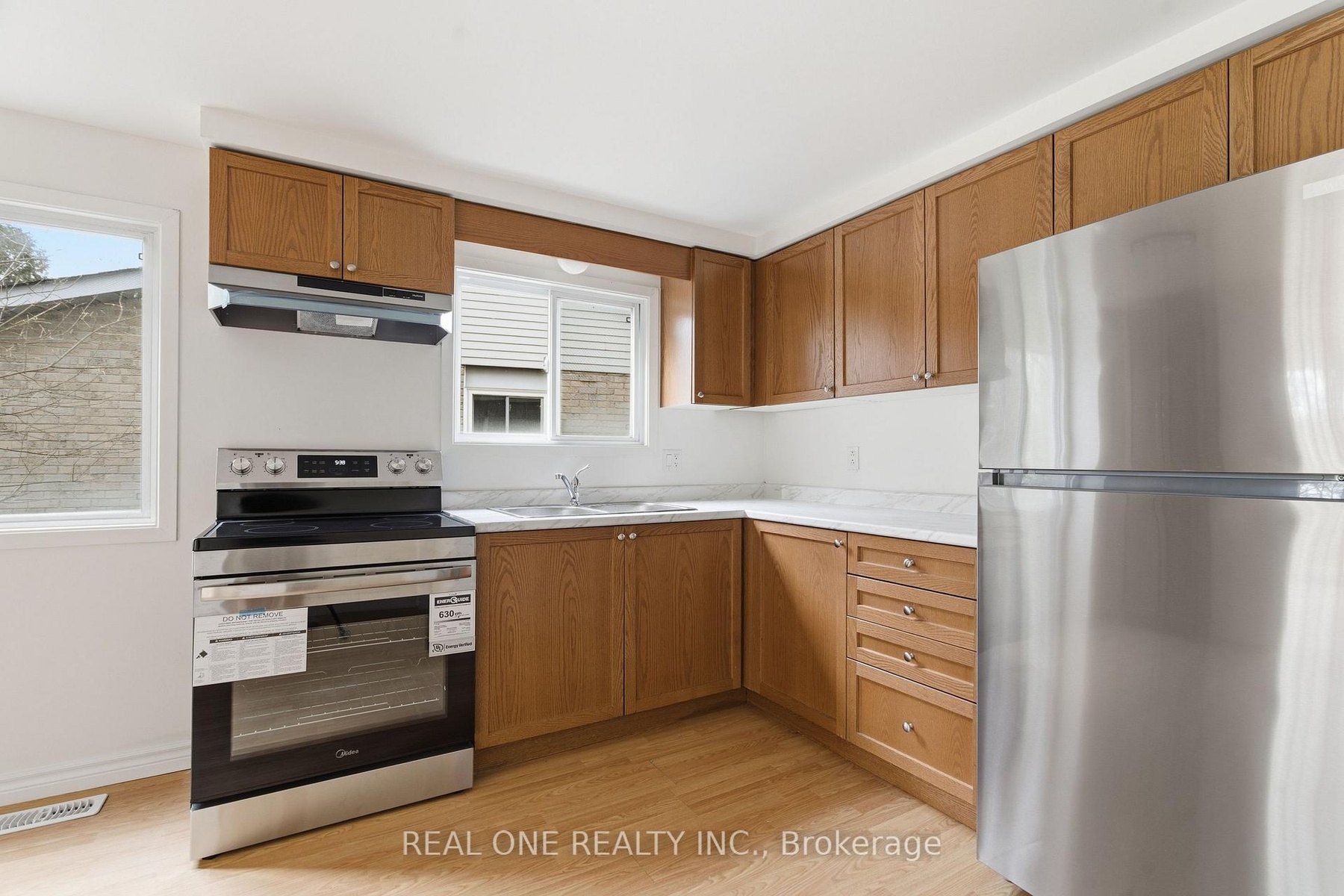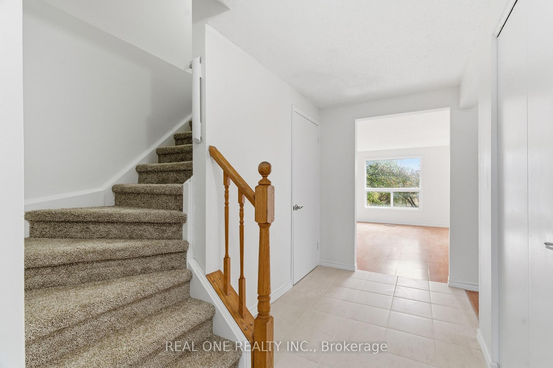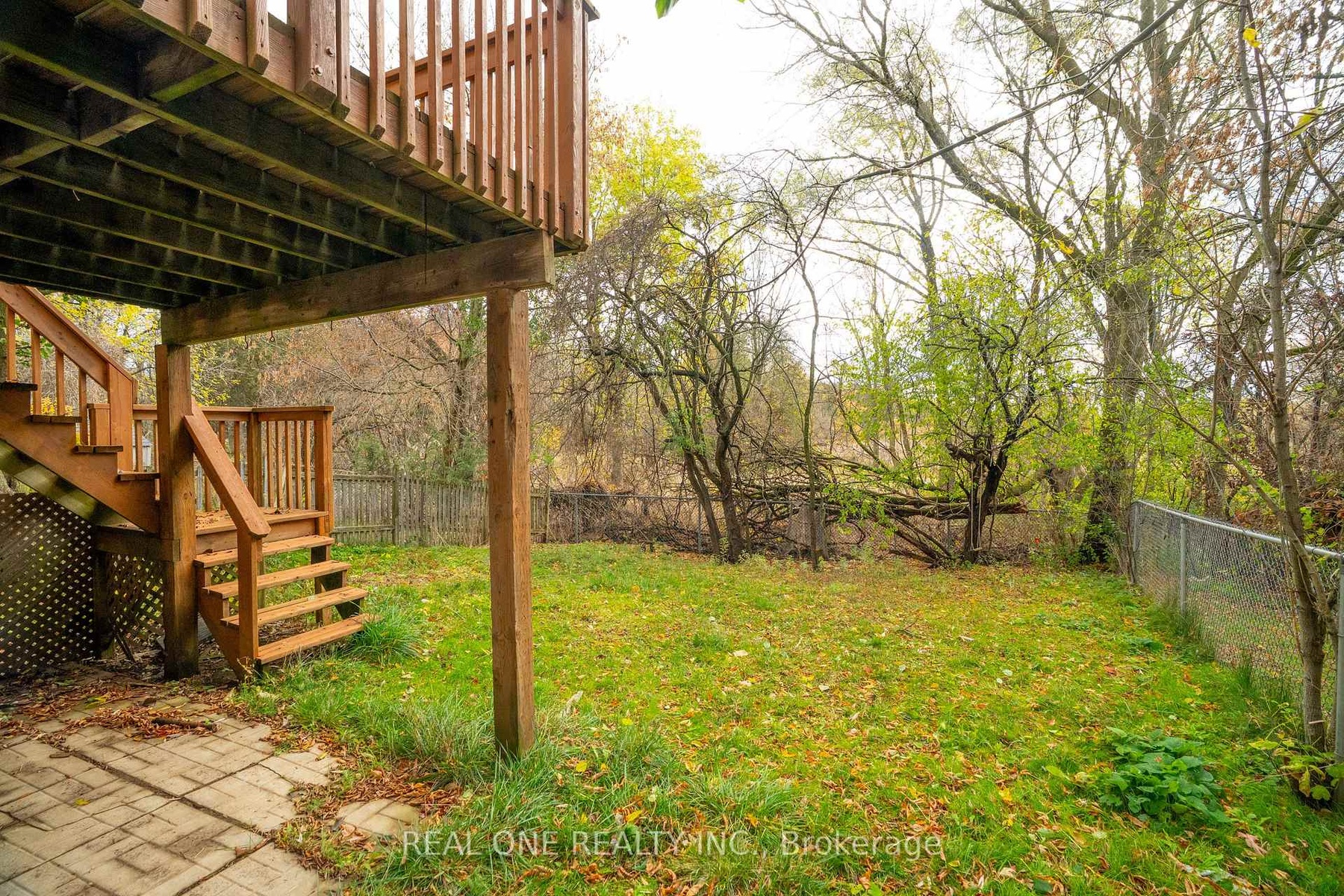 Bright and spacious 3-bedroom townhome backing onto a beautiful ravine! This well-maintained home features an open-concept kitchen and dining area with walkout to a private deck overlooking nature. Freshly painted throughout and move-in ready. New laminate flooring on the second floor, new carpet on stairs, and new ceramic tiles in the foyer. Original hardwood floors in the living room and kitchen. Walkout basement offers ample storage or potential workout space. Fully fenced backyard with gate access. Single-car garage plus driveway parking for a second vehicle. Enjoy peaceful mornings or relaxing evenings on your private deck surrounded by greenery. Available immediately. Tenant to pay utilities.