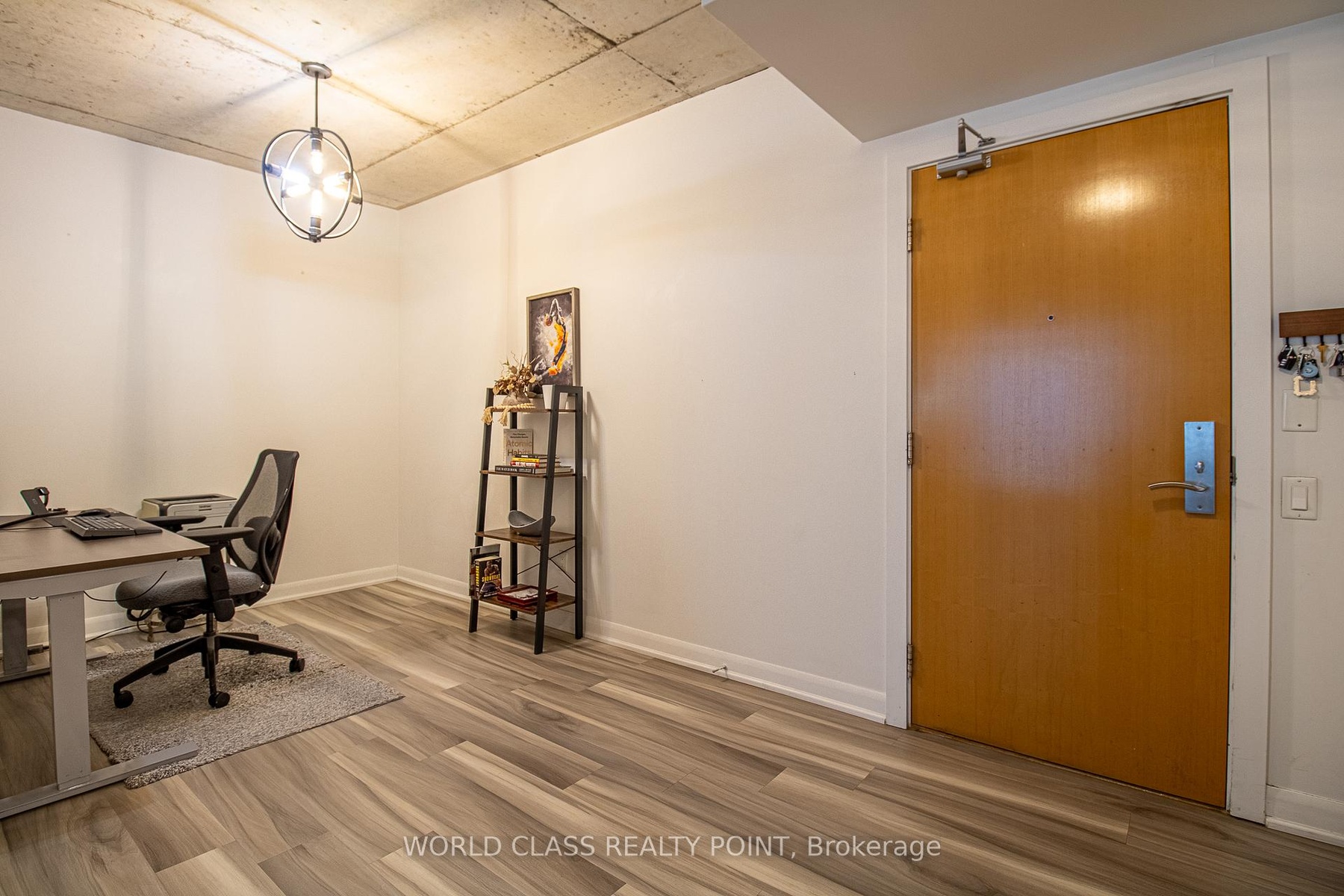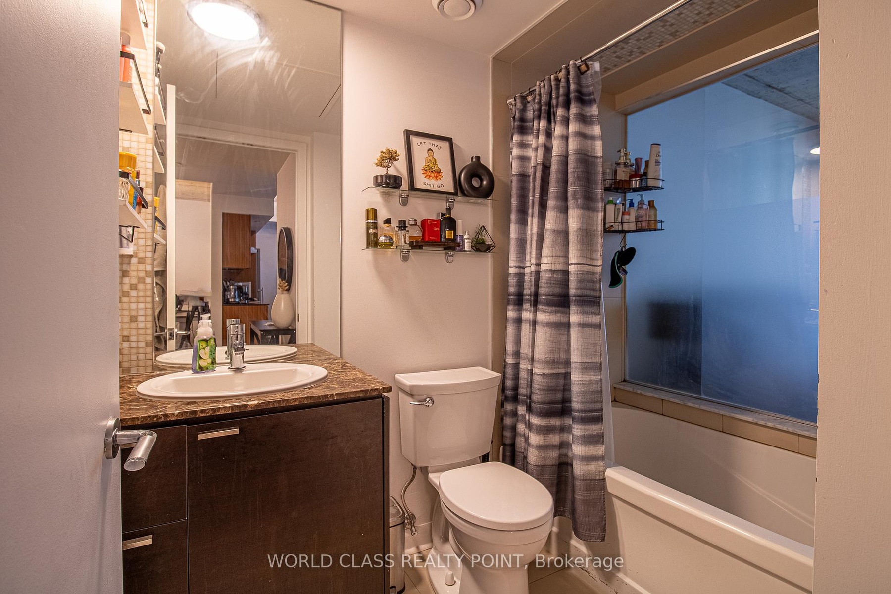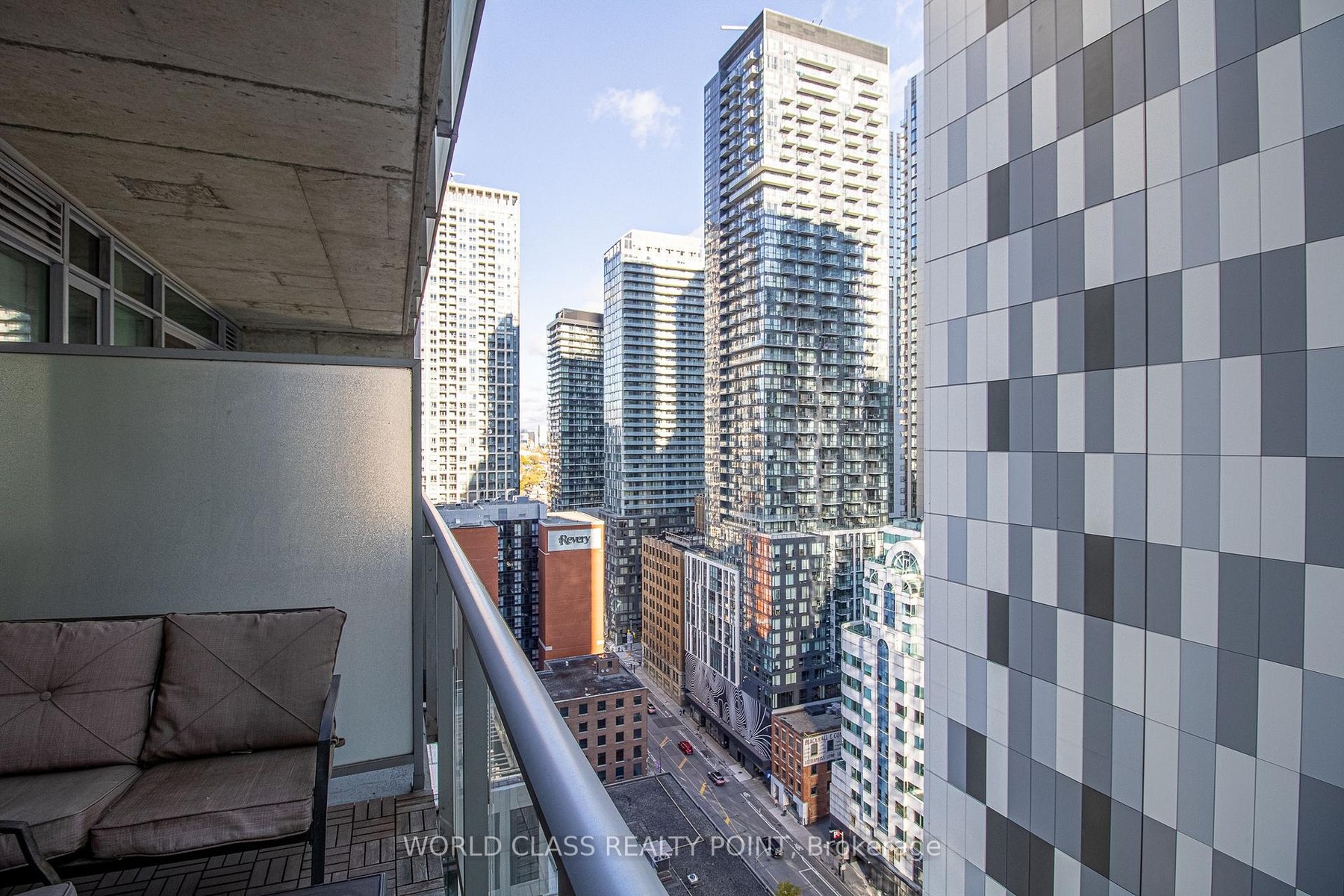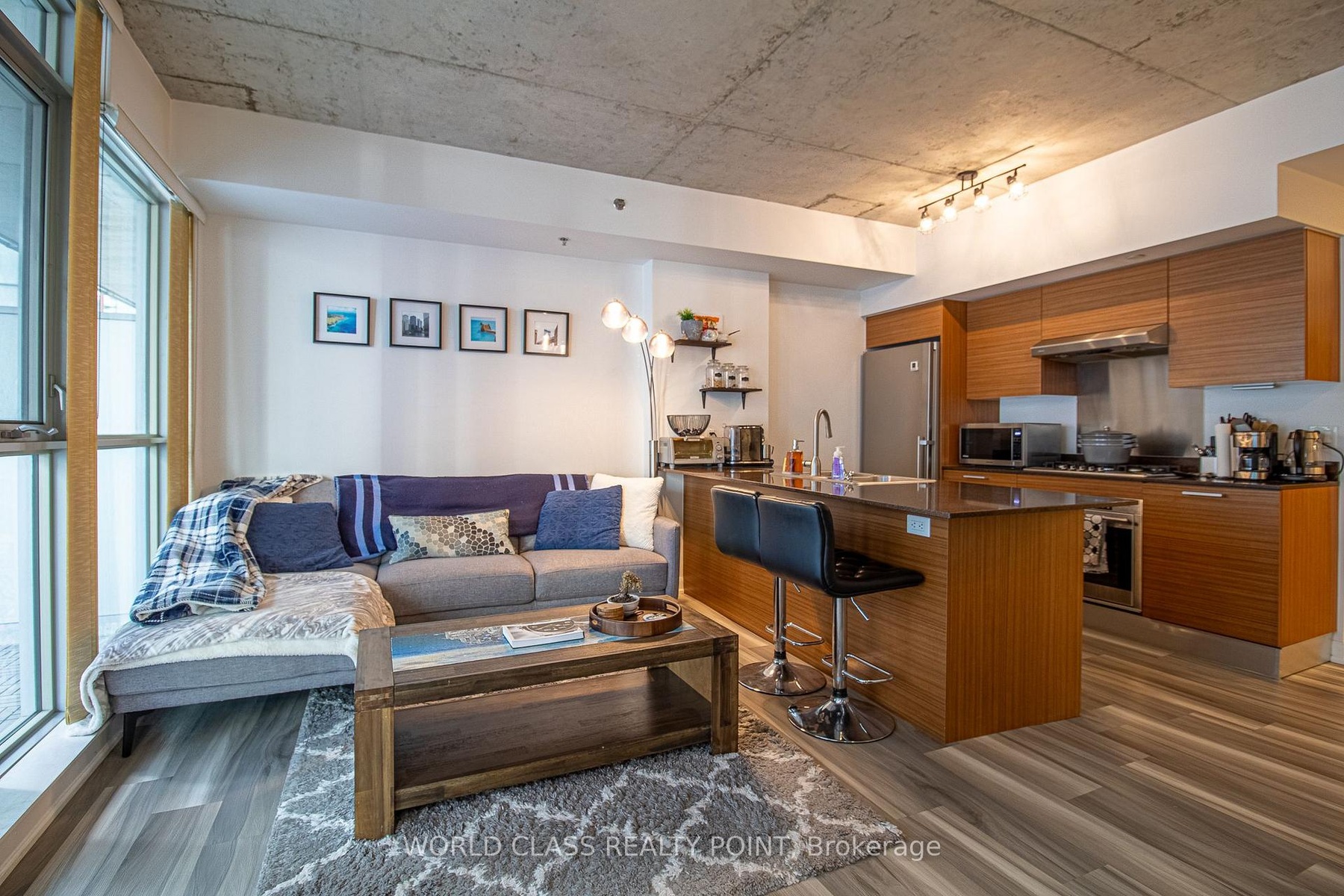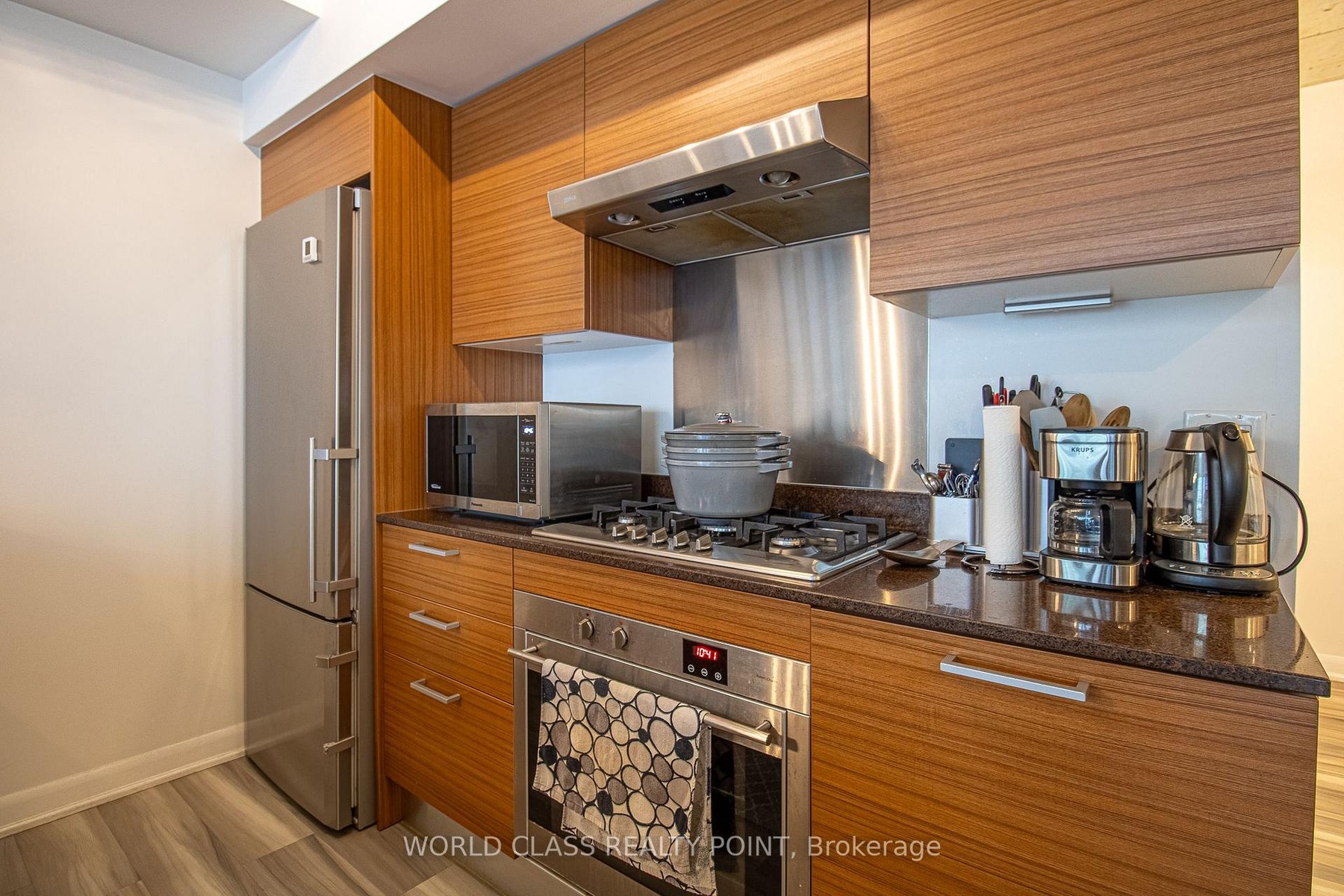 Experience elevated urban living in the heart of the Entertainment District at the iconic M5V Condos, where refined design meets modern vibrancy. Perfectly situated at the intersection of King & Peter with a 100 Walk Score and 100 Transit Score, this expansive 1+1 suite redefines downtown luxury. The thoughtfully designed den offers versatility - easily functioning as a second bedroom or home office. Featuring an open-concept floor plan with floor-to-ceiling east-facing windows that floods the space with natural light. The gourmet kitchen is a statement featuring full-sized stainless steel appliances, a sleek breakfast bar, and modern cabinetry. The primary bedroom boasts a spacious custom closet, while the ensuite laundry and dedicated storage room provide exceptional convenience and organization. Outside, the oversized balcony is an entertainer's dream, complete with upgraded patio tiles, making outdoor dining and lounging effortless. Residents of M5V enjoy five-star amenities, including a state-of-the-art fitness centre with brand-new equipment, Peloton room, yoga studio, steam rooms, a stylish entertainment lounge with a foosball and ping pong table, and an elevated BBQ terrace. Location, Location, Location! Located just steps from trendy cafés, restaurants, TTC, fitness studios, grocery stores, shopping, and The Well. This residence offers the best of urban convenience and contemporary elegance. Don't miss this rare opportunity - a true must-see in Toronto's most dynamic neighbourhood.