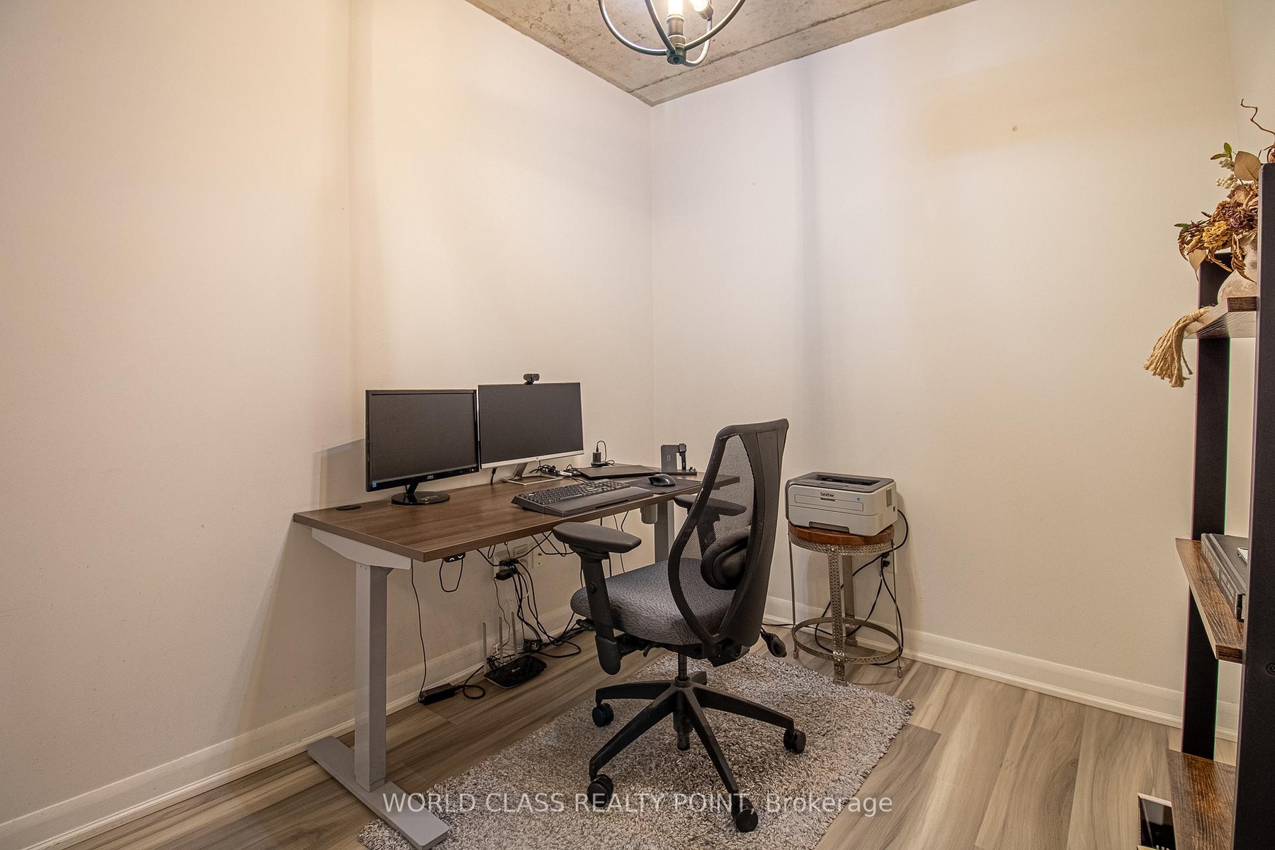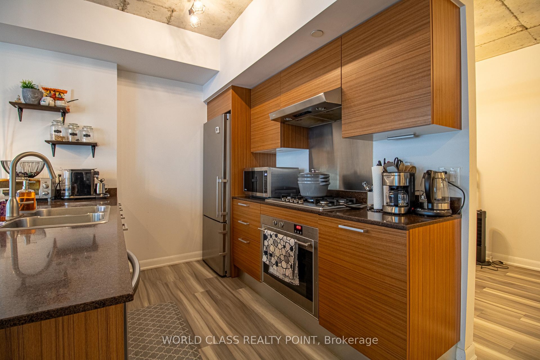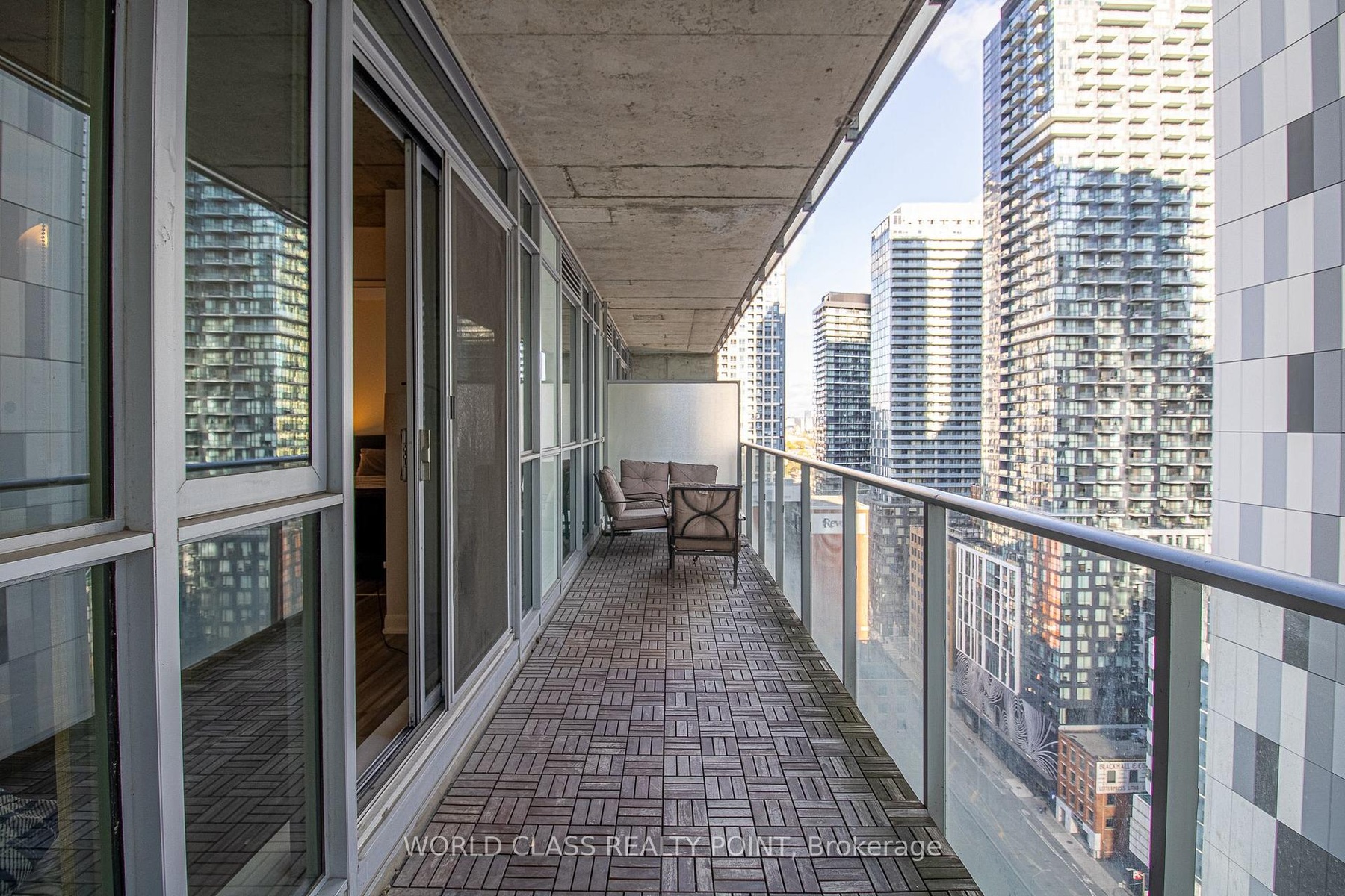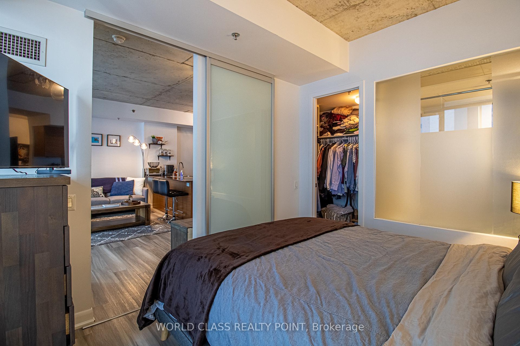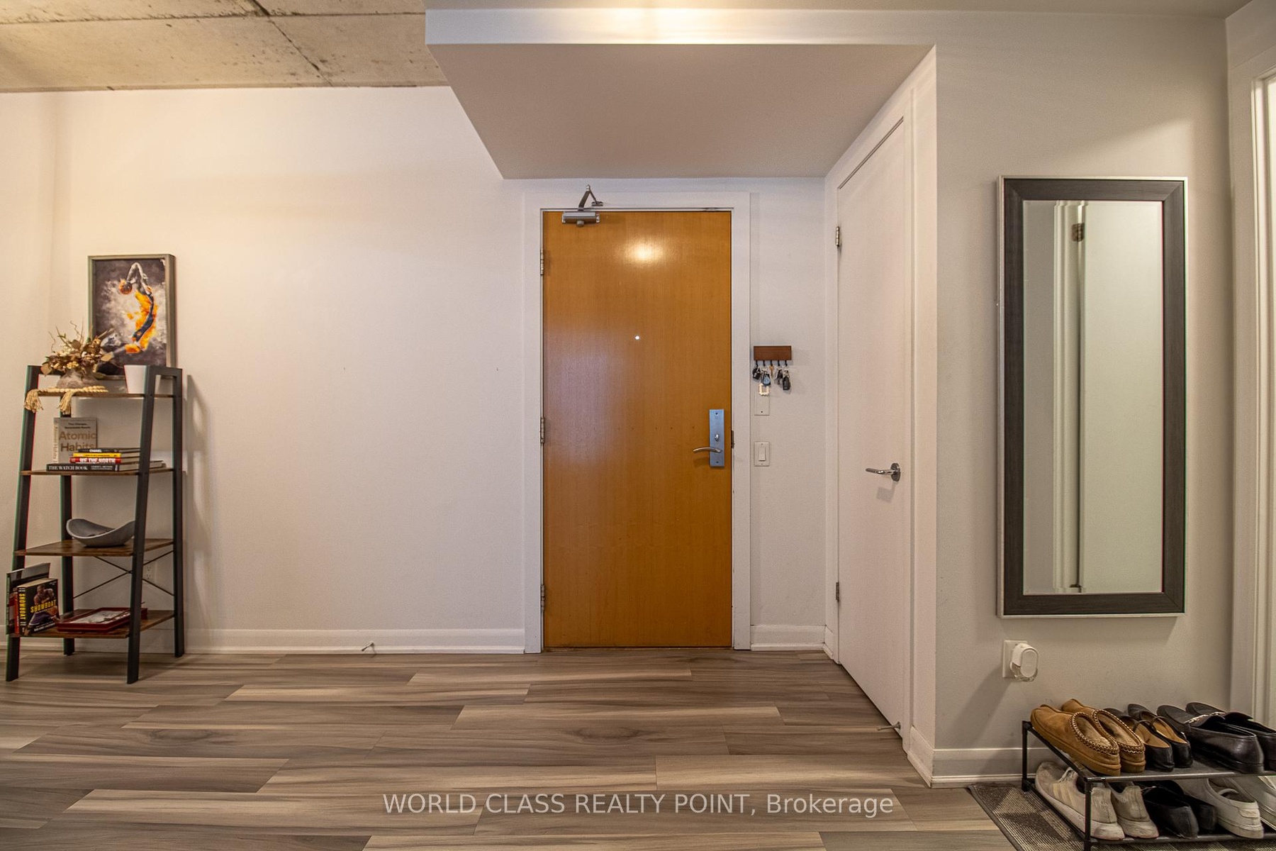 Experience elevated urban living in the heart of the Entertainment District at the iconic M5V Condos, where refined design meets modern vibrancy. Perfectly situated at the intersection of King & Peter with a 100 Walk Score and 100 Transit Score, this expansive 1+1 suite redefines downtown luxury. The thoughtfully designed den offers versatility - easily functioning as a second bedroom or home office. Featuring an open-concept floor plan with floor-to-ceiling east-facing windows that floods the space with natural light. The gourmet kitchen is a statement featuring full-sized stainless steel appliances, a sleek breakfast bar, and modern cabinetry. The primary bedroom boasts a spacious custom closet, while the ensuite laundry and dedicated storage room provide exceptional convenience and organization. Outside, the oversized balcony is an entertainer's dream, complete with upgraded patio tiles, making outdoor dining and lounging effortless. Residents of M5V enjoy five-star amenities, including a state-of-the-art fitness centre with brand-new equipment, Peloton room, yoga studio, steam rooms, a stylish entertainment lounge with a foosball and ping pong table, and an elevated BBQ terrace. Location, Location, Location! Located just steps from trendy cafés, restaurants, TTC, fitness studios, grocery stores, shopping, and The Well. This residence offers the best of urban convenience and contemporary elegance. Don't miss this rare opportunity - a true must-see in Toronto's most dynamic neighbourhood.