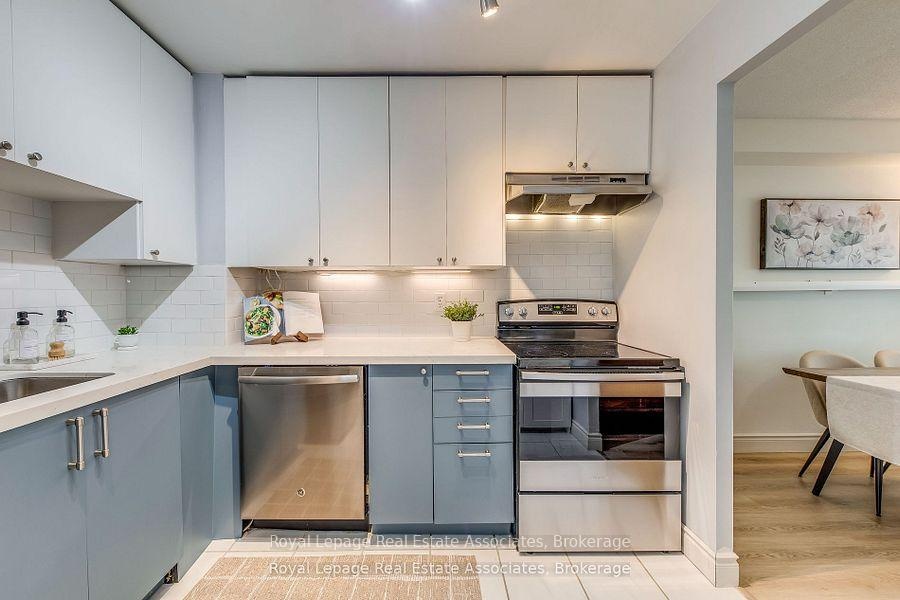 Experience Urban Elegance in the Heart of Mississauga Welcome to this impeccably maintained, turn-key residence offering 940 sq. ft. of versatile living space. This sun-drenched 1-Bedroom + Den (currently utilized as a 2nd bedroom) plus Solarium is the ultimate work-from-home sanctuary, wrapped in expansive windows and natural light. The interior features a contemporary kitchen complete with premium quartz countertops and a timeless subway tile backsplash, complemented by a fully updated modern bathroom. Functionality meets style with a dedicated walk-in laundry room and ample storage. Located steps from Cooksville GO and minutes from Square One and major highways (QEW/403), this home offers unparalleled connectivity. Includes one parking spot and one locker. This is a must-see property you won't want to miss!