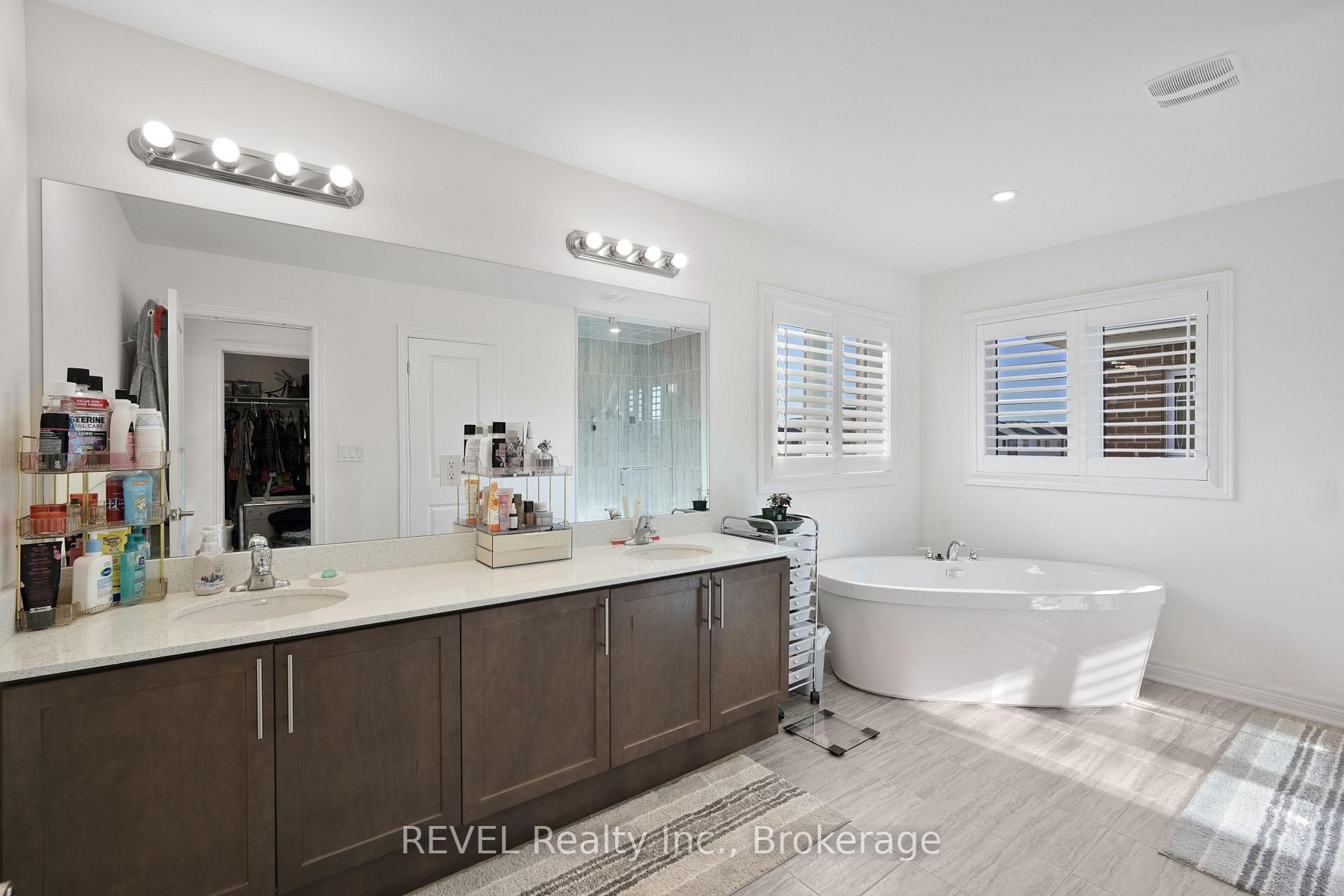 Welcome to 44 Spring Crest Way, Stunning family home in the highly sought-after Rolling Meadows community of Thorold. Designed for comfort and style, this 4-bedroom, 3.5-bath home features an open-concept main floor perfect for entertaining, complete with a modern eat-in kitchen showcasing sleek quartz countertops, a spacious living room with gas fireplace, a separate dining area, bonus main-floor den, and convenient 2-piece bath. Upstairs, enjoy a luxurious primary suite with his-and-hers walk-in closets and a spa-inspired 5-piece ensuite featuring dual sinks, a soaker tub, and glass shower. A second bedroom also includes its own ensuite and walk-in closet, while two additional bedrooms, a 4-piece main bath, and laundry on the bedroom level add everyday convenience. The double-car garage, fully fenced yard, and prime location just minutes from the QEW, Brock University, and Niagara Falls make this home an exceptional find. Huge Unfinished basement Waiting for your personal Touches can easily be converted into 2 or 3 bedroom secondary dwelling unit, Massive Man Cave or Perfect IN-LAW suite.