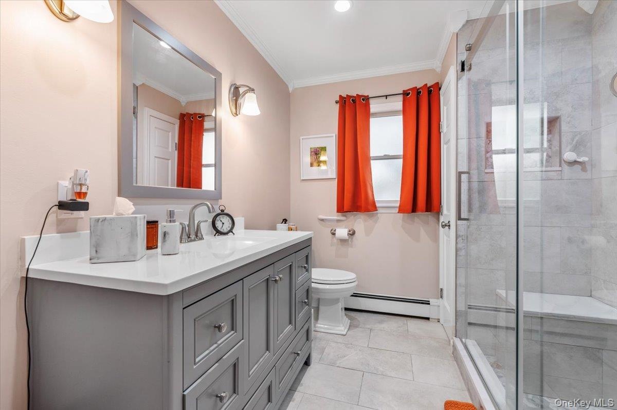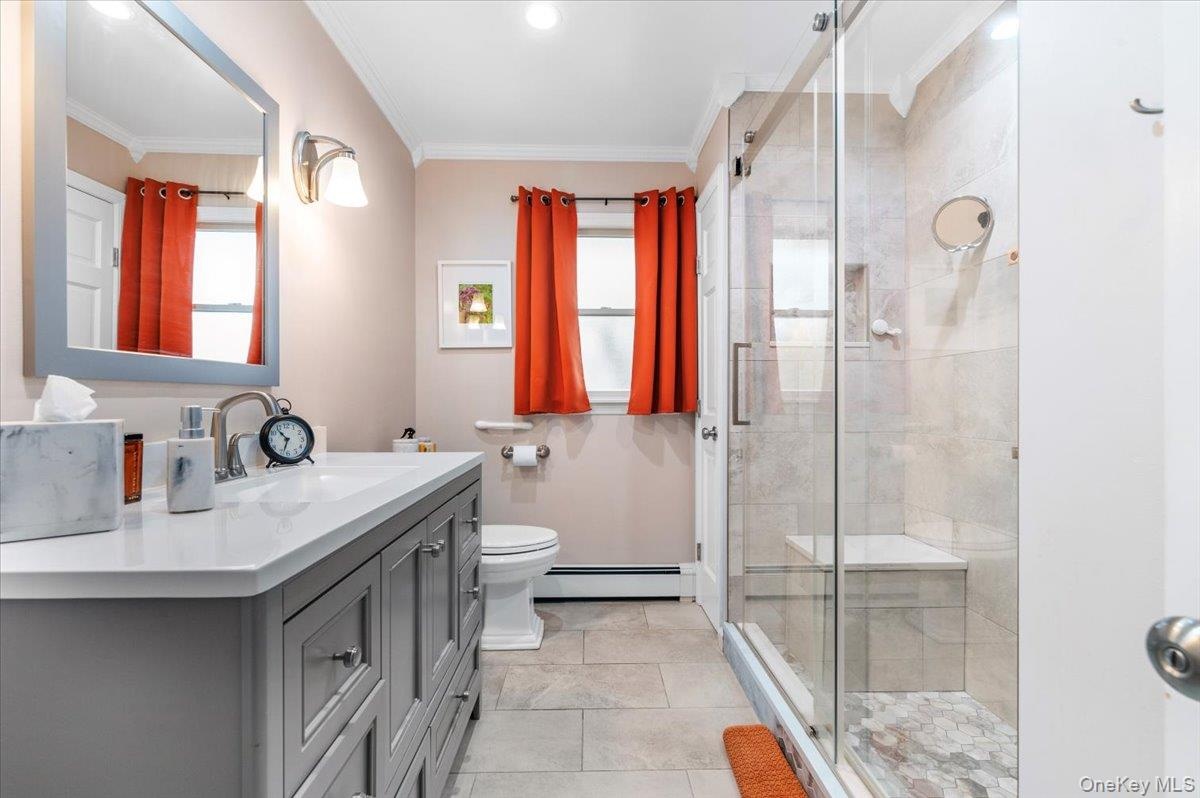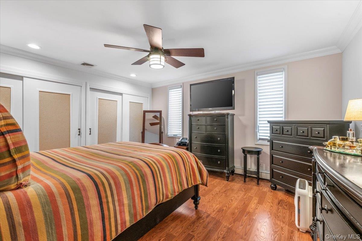 This home also includes a 200-amp upgraded electric service, two-zone heating, central air conditioning with a new air handler, natural gas for heat, cooking, and fireplace, new front siding installed in 2025, power shades, a smart thermostat, in-ground sprinklers, brand-new attic insulation, a ten-year-old roof, and low taxes of $11,472 before STAR.