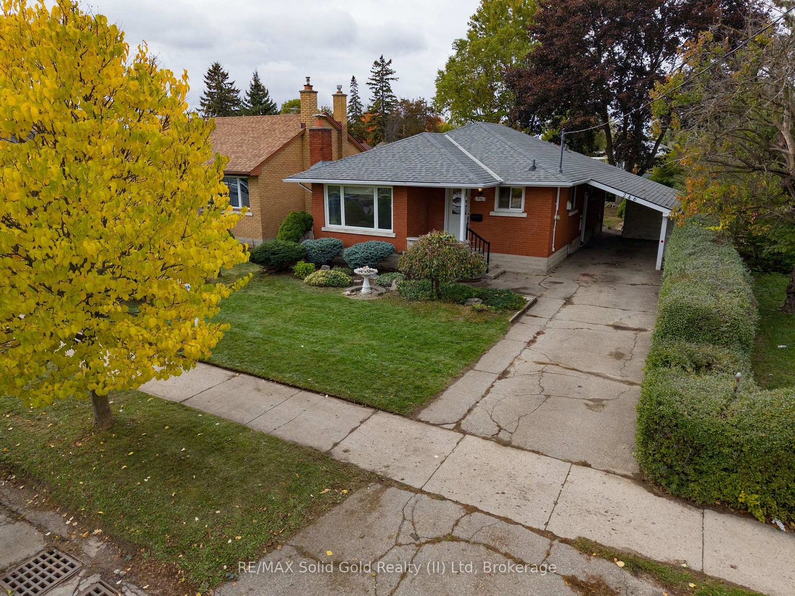 All brick detached bungalow in a quiet mature neighbourhood. Eat-in kitchen with plenty of cupboards. Living room with original hardwood. 2 bedrooms plus den on main floor and a 4pc bath. 3rd bedroom in basement. Spacious finished rec room provides a great area for entertaining. 2-piece bathroom. Plenty of storage space. Cold room. Deck. Large yard. Shed. Carport. Convenient side entrance. Parking for 3 vehicles. Front porch. Gutter leaf guards. Near schools, shopping, Hwy 7/8, and all amenities. Don't miss your chance to own this home that offers lots of potential.
