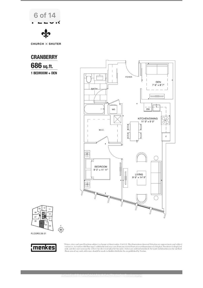 Welcome to1 Bdrm Den Unit At Fleur Condo By Menkes.