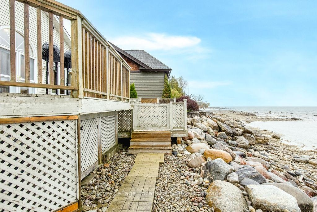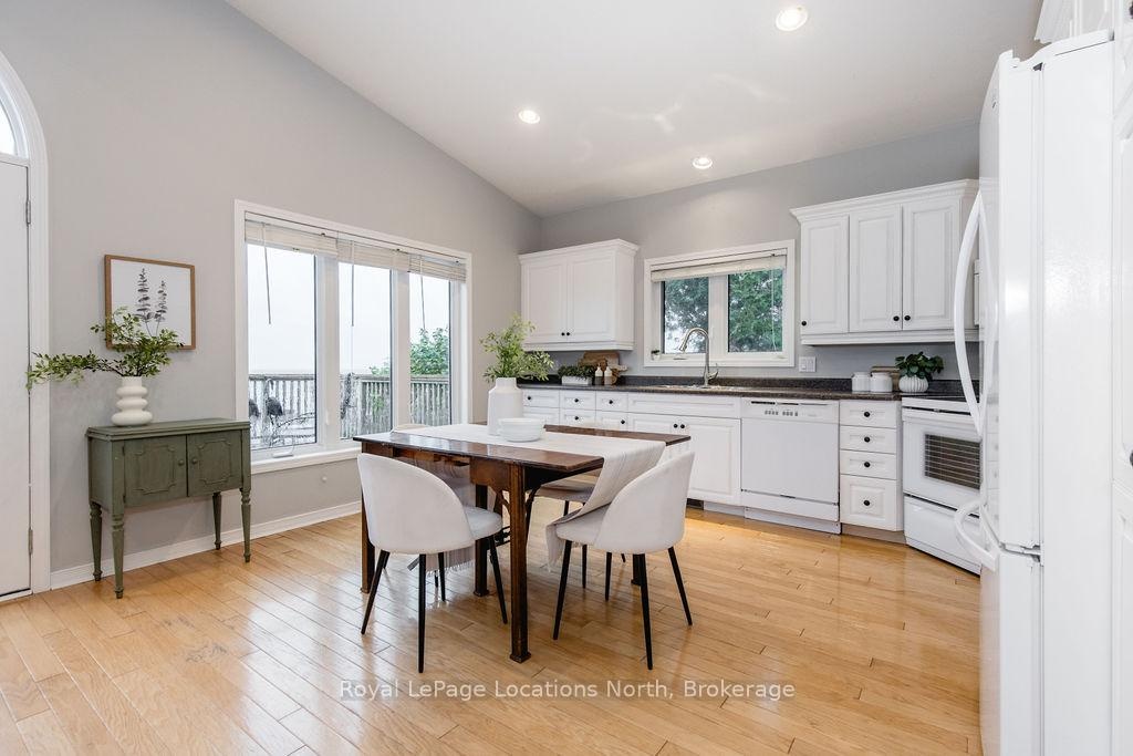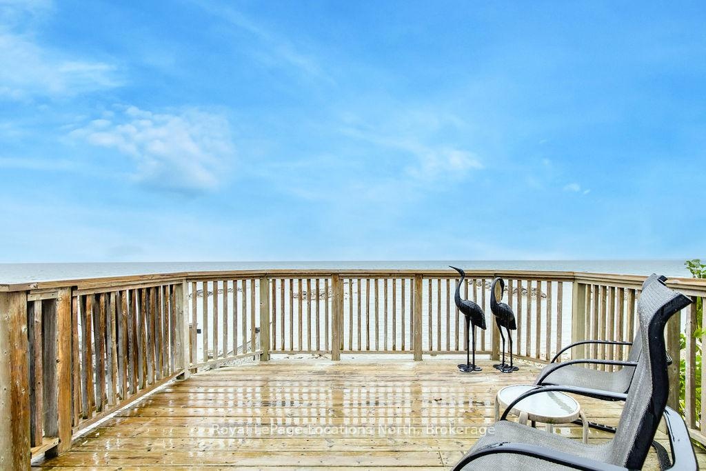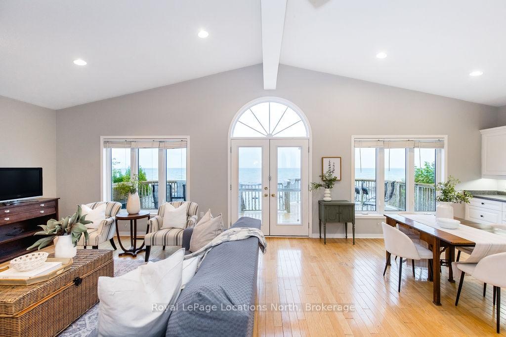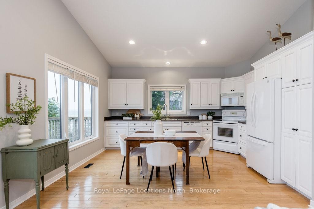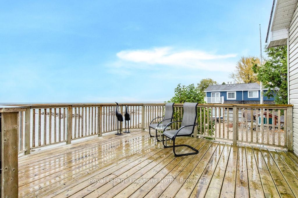 Welcome to your dream waterfront retreat on the shores of Georgian Bay, where every sunrise and sunset feels like a private show. Built in 2012, this 4-bedroom, 3-bathroom property was designed to capture the beauty of the bay from every angle. Ideally located halfway between Collingwood and Wasaga Beach, you'll enjoy the best of both worlds: peaceful waterfront living and quick access to skiing, dining, and shopping. The covered front porch is the perfect place to have a coffee or watch the rain fall on a stormy night Step inside to a spacious bungalow, with an open-concept layout filled with natural light and panoramic views of Blue mountain and the most amazing sunsets. The kitchen and living area offer vaulted ceilings focused around a gas fireplace, together making it the perfect cozy space, while the large kitchen has lots of storage and counter space for gatherings with family and friends. The main floor primary suite offers a private space with a 4-piece ensuite featuring a soaking tub, glass shower, and walk-in closet. Two additional bedrooms on the lower level plus a rec room make it a great family home or cottage Outside, unwind on the tiered deck, lush landscaping, and spend your days on your private waterfront, swimming, kayaking, and making lasting family memories.This property truly captures the Georgian Bay lifestyle- relaxing, active, and connected to nature - whether you're paddleboarding in summer or skiing in winter.