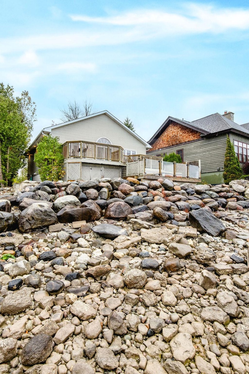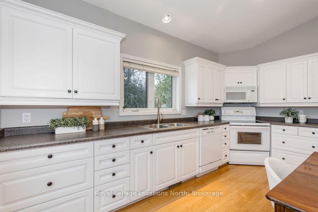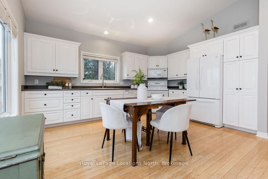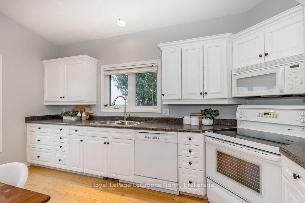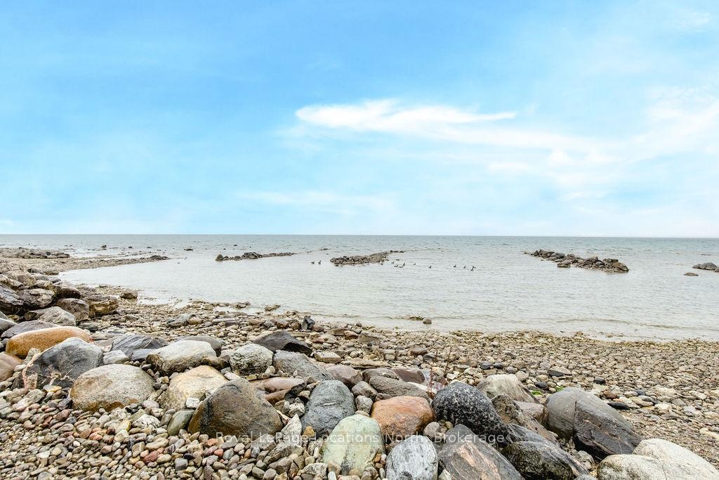 Welcome to your dream waterfront retreat on the shores of Georgian Bay, where every sunrise and sunset feels like a private show. Built in 2012, this 4-bedroom, 3-bathroom property was designed to capture the beauty of the bay from every angle. Ideally located halfway between Collingwood and Wasaga Beach, you'll enjoy the best of both worlds: peaceful waterfront living and quick access to skiing, dining, and shopping. The covered front porch is the perfect place to have a coffee or watch the rain fall on a stormy night Step inside to a spacious bungalow, with an open-concept layout filled with natural light and panoramic views of Blue mountain and the most amazing sunsets. The kitchen and living area offer vaulted ceilings focused around a gas fireplace, together making it the perfect cozy space, while the large kitchen has lots of storage and counter space for gatherings with family and friends. The main floor primary suite offers a private space with a 4-piece ensuite featuring a soaking tub, glass shower, and walk-in closet. Two additional bedrooms on the lower level plus a rec room make it a great family home or cottage Outside, unwind on the tiered deck, lush landscaping, and spend your days on your private waterfront, swimming, kayaking, and making lasting family memories.This property truly captures the Georgian Bay lifestyle- relaxing, active, and connected to nature - whether you're paddleboarding in summer or skiing in winter.