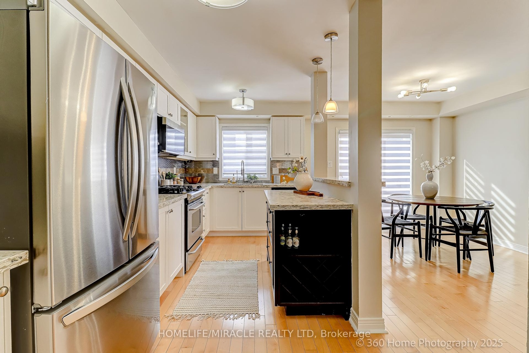 Welcome to this stunning town-home, offering the privacy and feel of a home with over 1926 sq. ft. (2400 Approximate with Basement)of beautifully designed living space. This bright and spacious home features an open-concept layout with 3+1 bedrooms and 4 Full bathrooms, perfect for families or those who love to entertain. Large windows fill every level with natural light, while gleaming hardwood floors create a warm and elegant atmosphere. The Main floor design with Family room or use as a great room also Home Office with 4 Pc Ensuite Washroom. The Second floor boasts a modern kitchen with quartz counter tops, a pantry, and ample cabinet space, Living, Dining and Breakfast area ideal for both everyday living and hosting gatherings. Step out from the kitchen onto a large private deck, perfect for morning coffee or summer BBQs. A unique staircase design enhances flow and convenience throughout the home. Direct garage access is an added bonus, especially in winter, and the upper-level laundry room adds everyday practicality. The finished basement provides a versatile space with an additional bedroom or home office, plus a full bathroom perfect for guests or extended family. Or Income potential. Upstairs, the primary suite offers a private 5pc Ensuite and generous closet space, creating a relaxing retreat. Step outside to a beautifully landscaped backyard, a true highlight of this property. Whether your are a garden lover or looking for a safe play area for kids, this outdoor space blends beauty and function seamlessly. Move-in ready and meticulously maintained, this rare home combines comfort, style, and practicality in one exceptional package. Don't miss your chance to call it home!